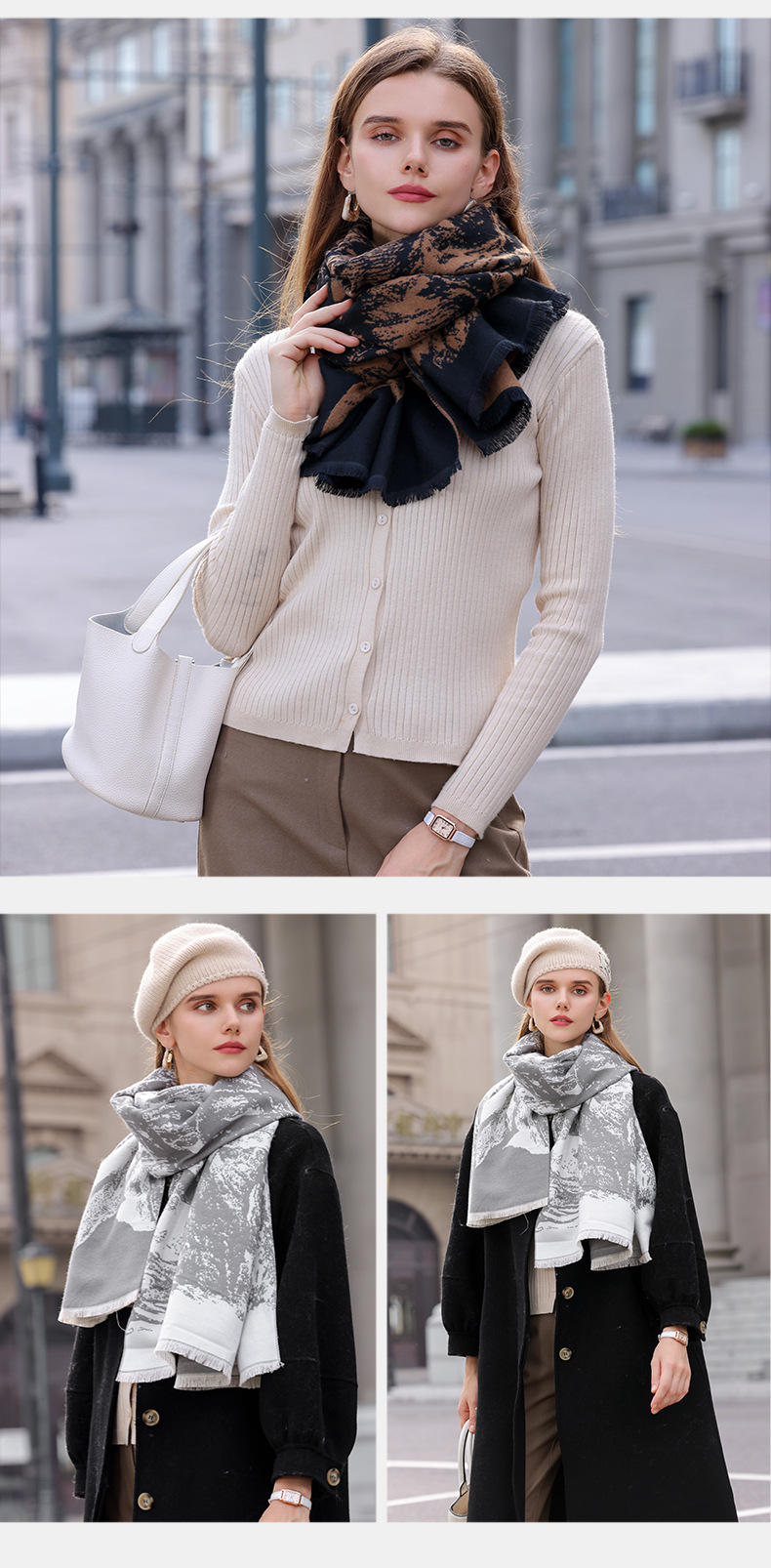 스카프 여성 2025 겨울 인기 새로운 모조 캐시미어 학생 따뜻한 스카프 패션 다목적 목도리 도매