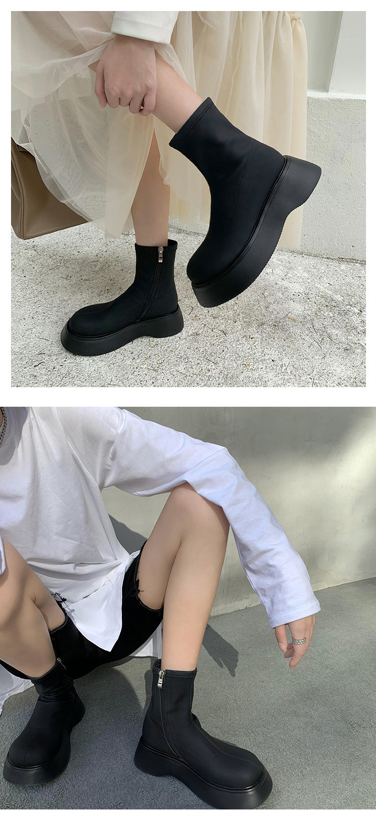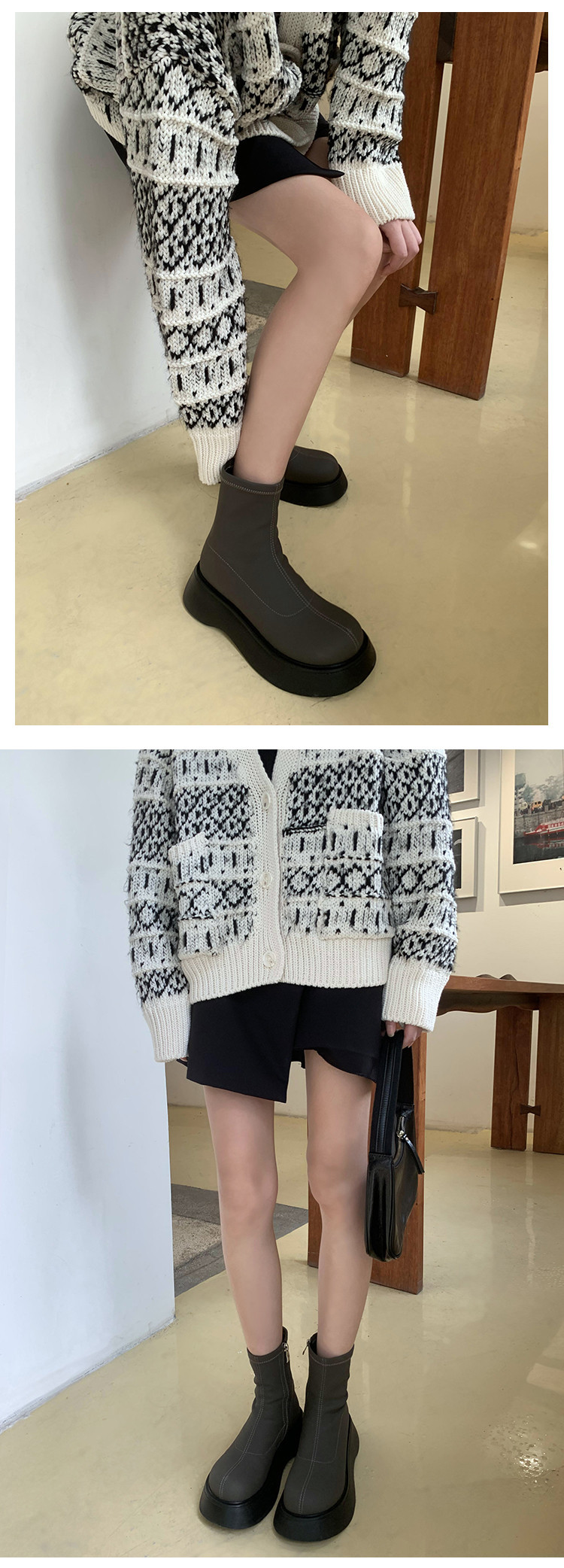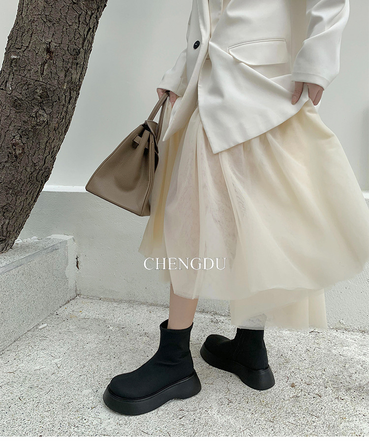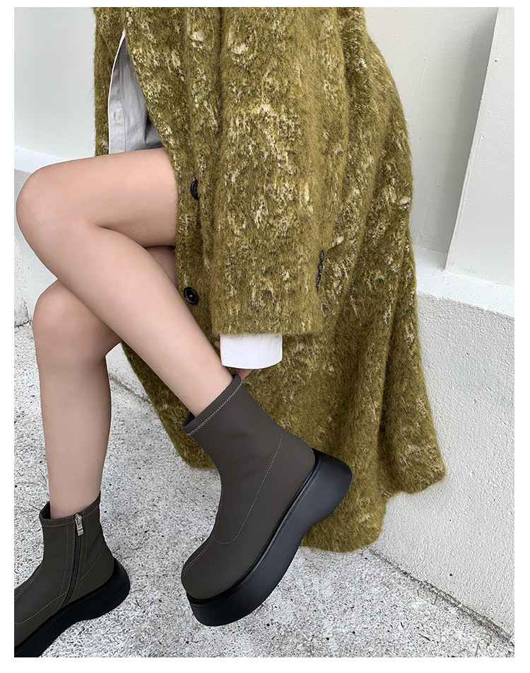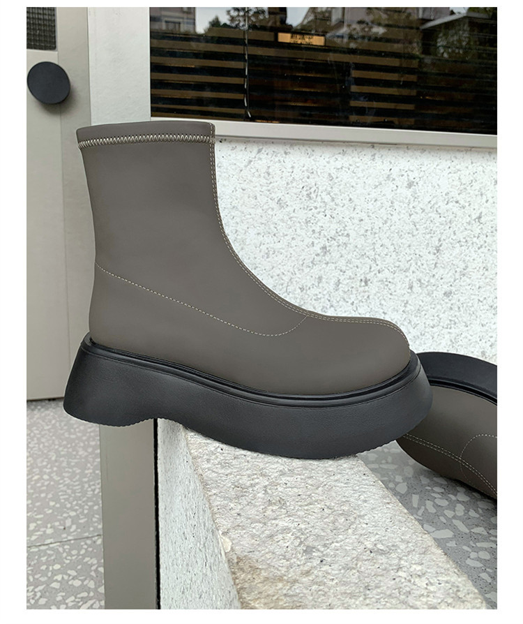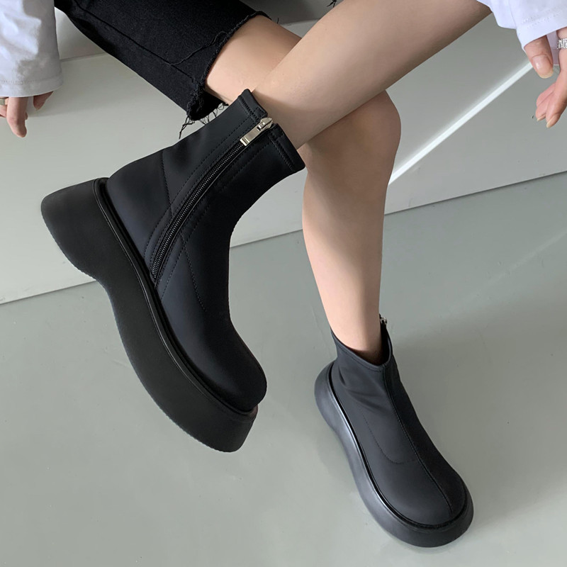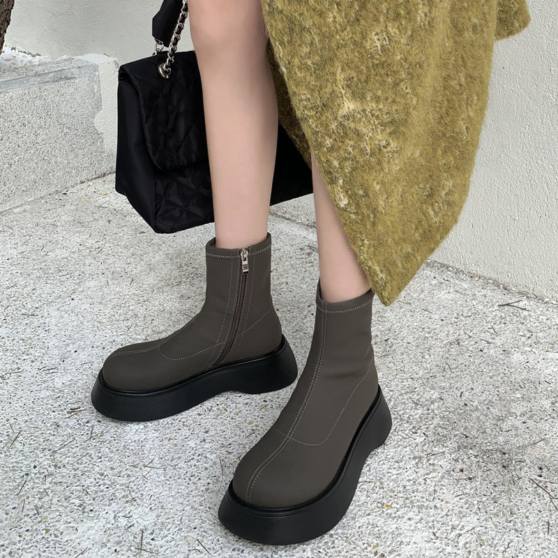 [미스 모닝] 레트로 빅 헤드 두꺼운 스키니 부츠 여성 키 증가 여성 신발 슈퍼 파이어 스몰 쇼트 부츠 모든 매치 여성 싱글 부츠