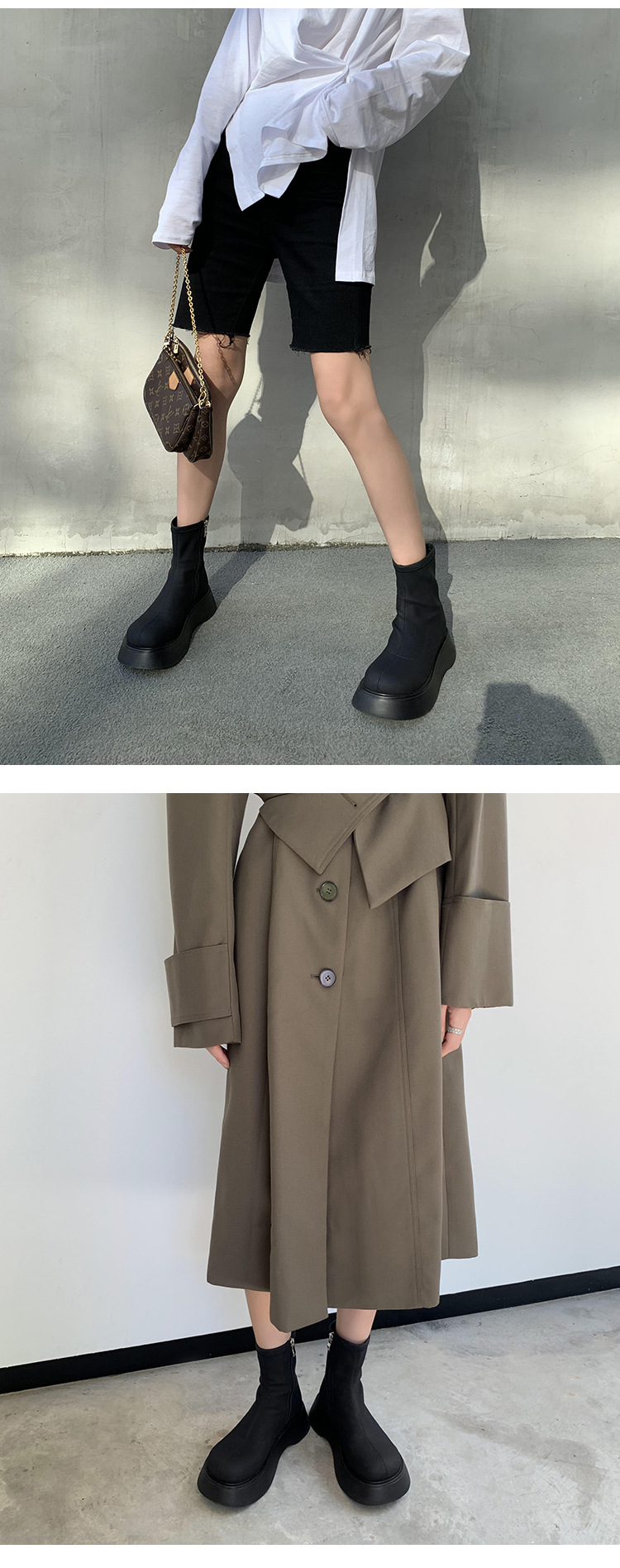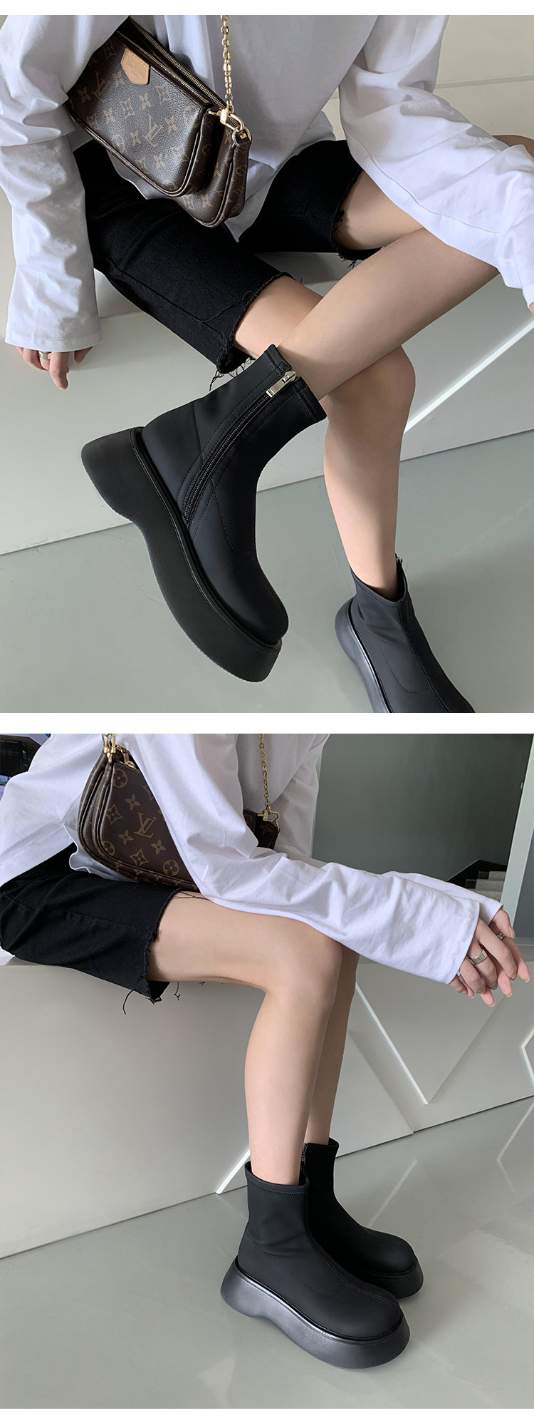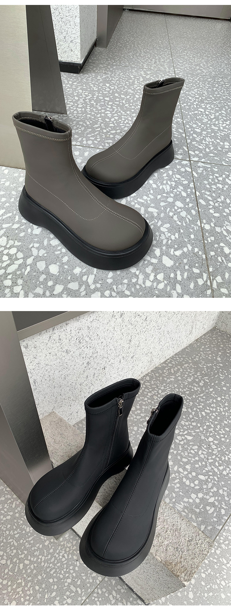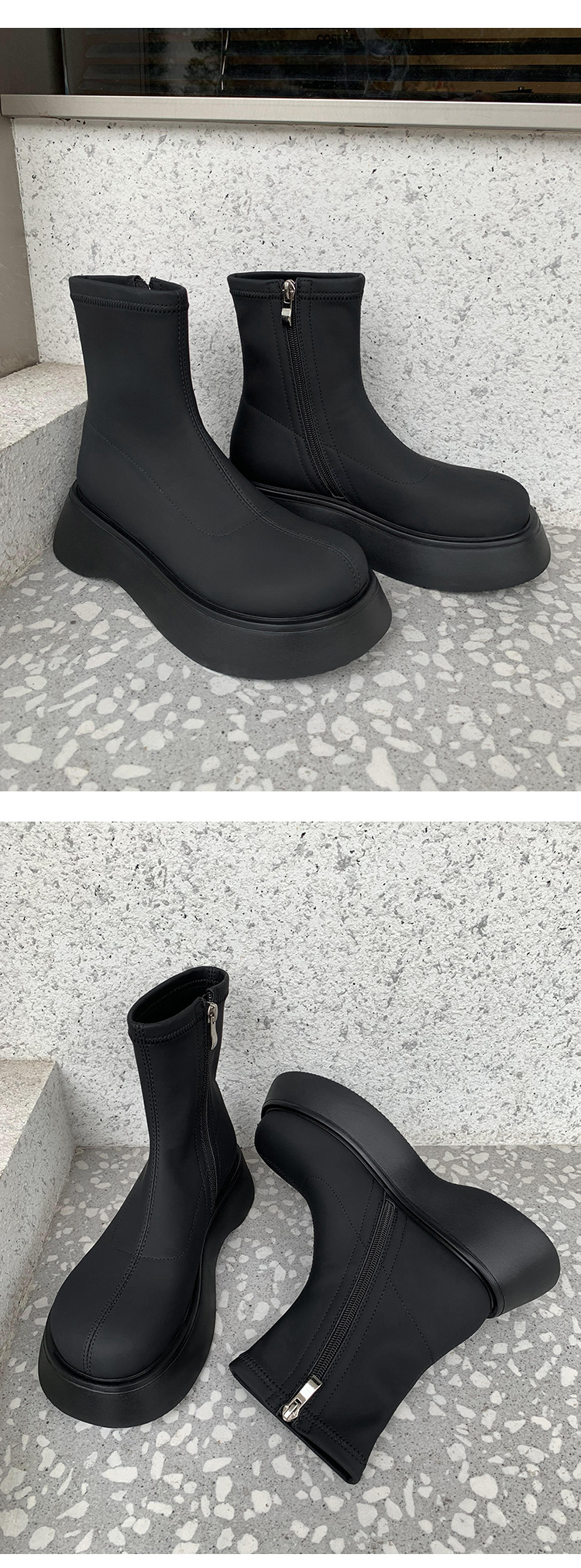 [미스 모닝] 레트로 빅 헤드 두꺼운 스키니 부츠 여성 키 증가 여성 신발 슈퍼 파이어 스몰 쇼트 부츠 모든 매치 여성 싱글 부츠