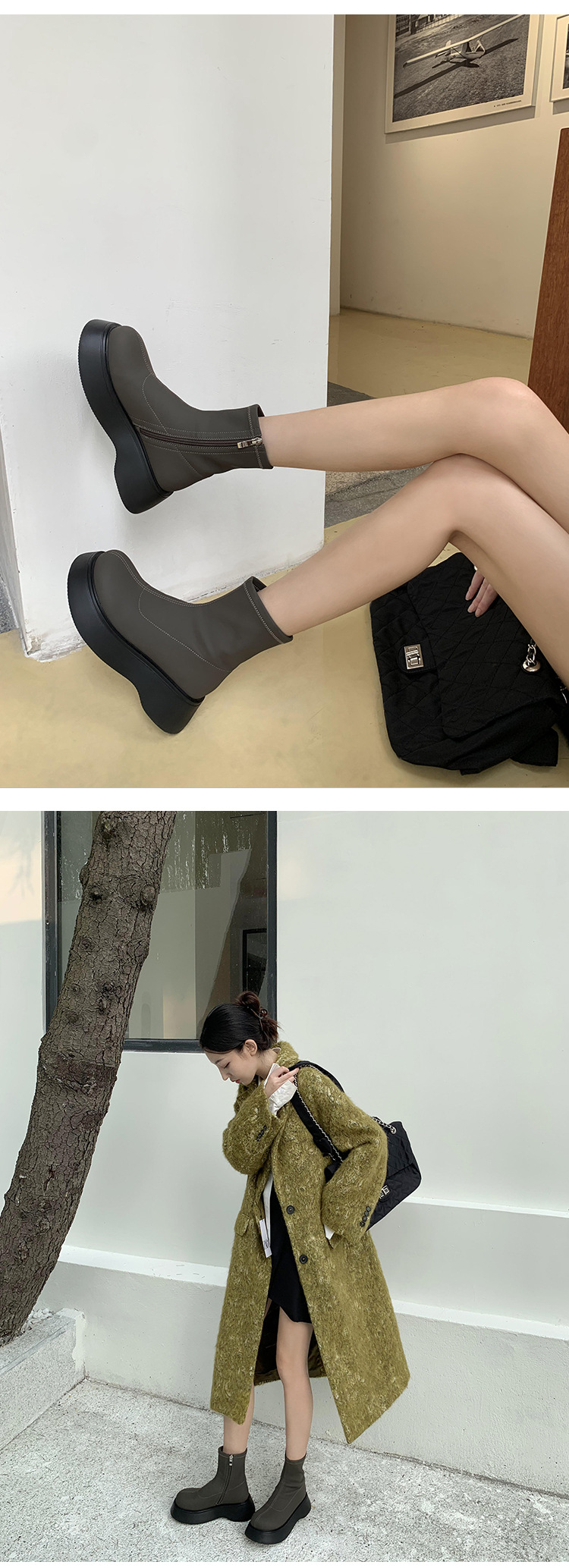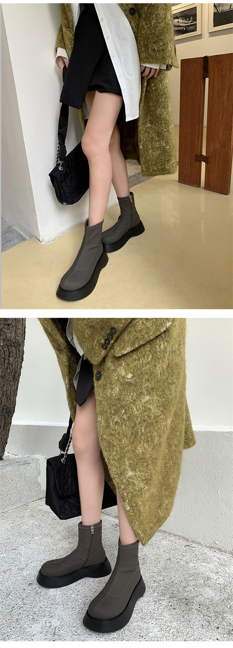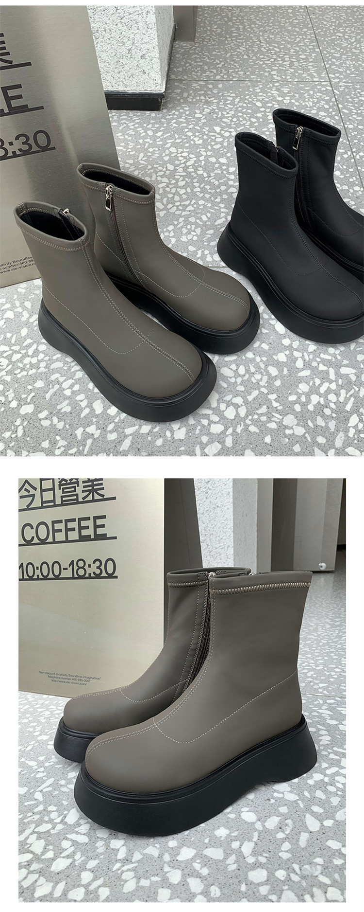 [미스 모닝] 레트로 빅 헤드 두꺼운 스키니 부츠 여성 키 증가 여성 신발 슈퍼 파이어 스몰 쇼트 부츠 모든 매치 여성 싱글 부츠스토어 가기