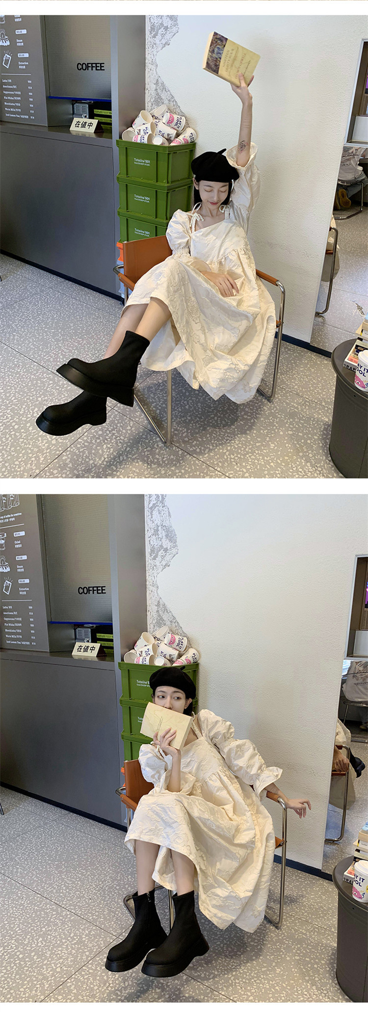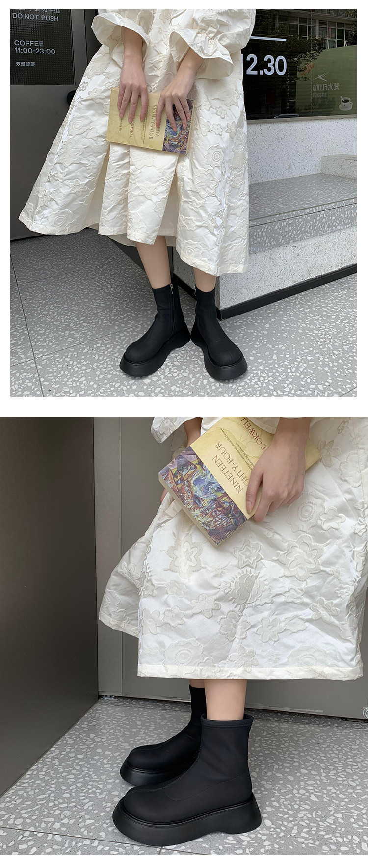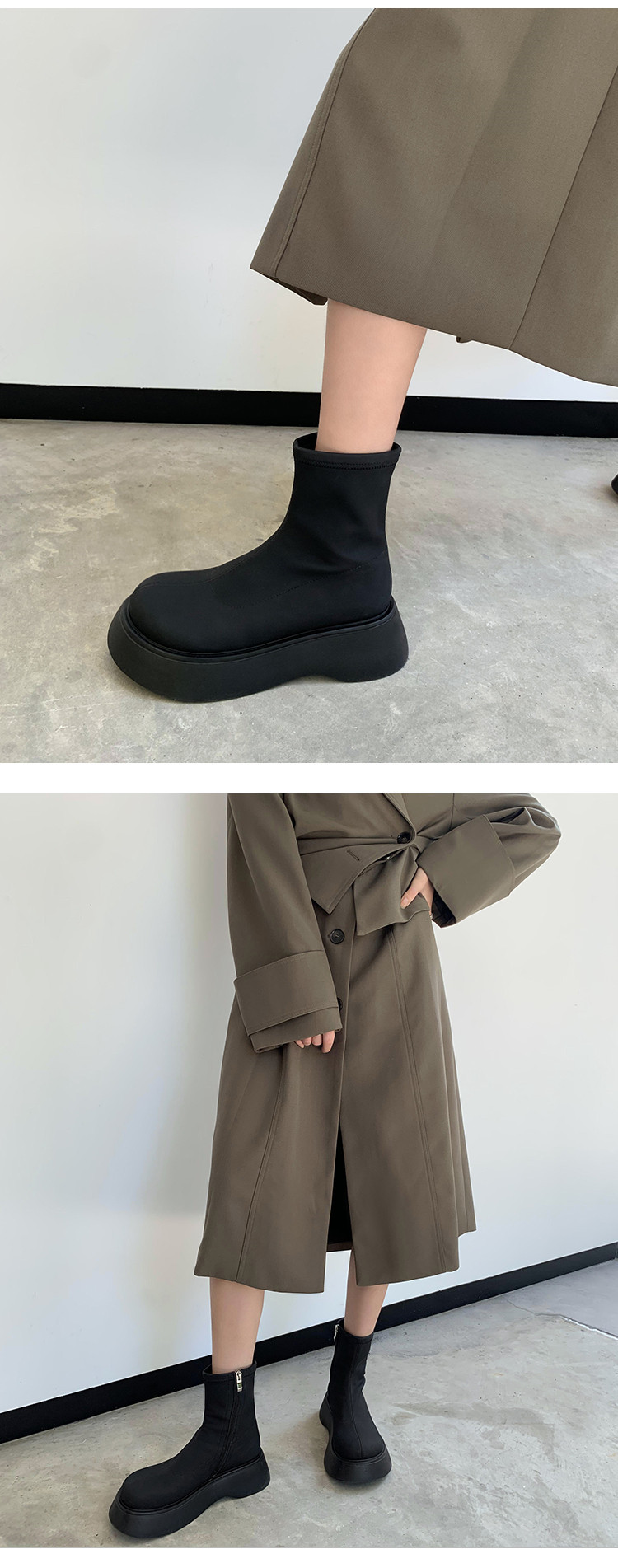 [미스 모닝] 레트로 빅 헤드 두꺼운 스키니 부츠 여성 키 증가 여성 신발 슈퍼 파이어 스몰 쇼트 부츠 모든 매치 여성 싱글 부츠스토어 가기
