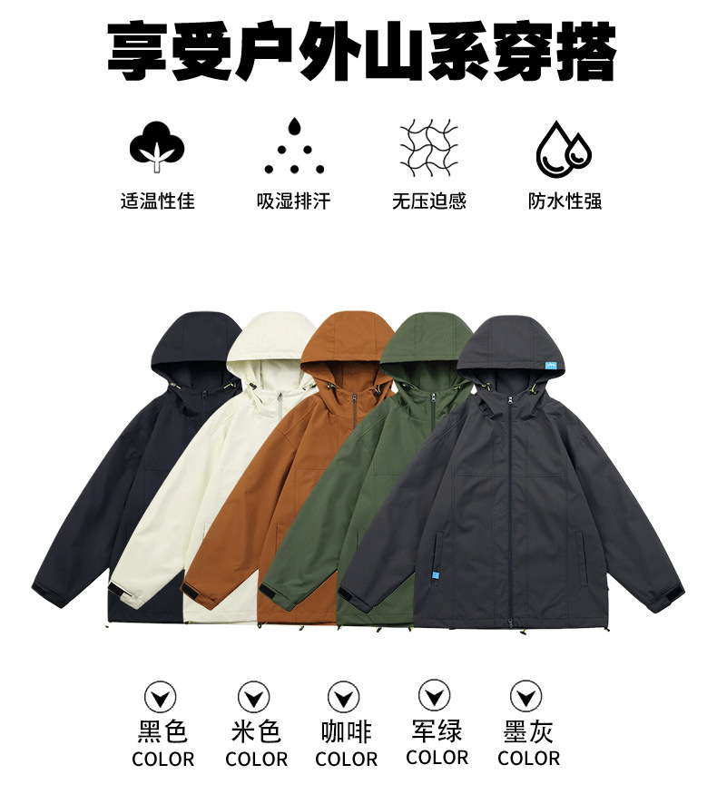2023 봄과 가을 야외 스포츠 레저 후드 재킷 남성용 방수 통기성 일본 커플 등산 재킷