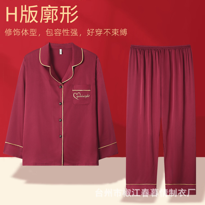 순수한 빨간 사랑 자수 세트 신부 신혼 결혼 웨딩 커플 얼음 실크 잠옷 인생의 해 동안 고급 느낌 가정 옷