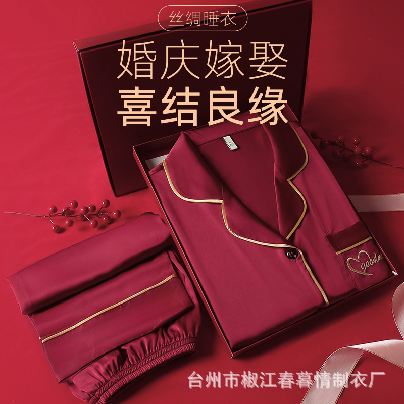 순수한 빨간 사랑 자수 세트 신부 신혼 결혼 웨딩 커플 얼음 실크 잠옷 인생의 해 동안 고급 느낌 가정 옷스토어 가기