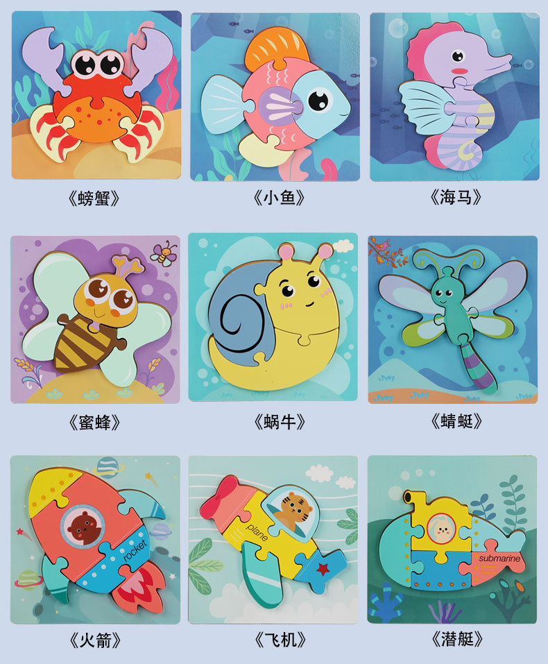 나무 어린이 3D 입체 퍼즐 4-6세 교육용 만화 동물 교통 인식 맞추기 장난감스토어 가기