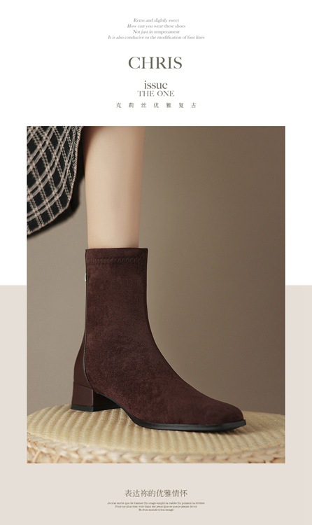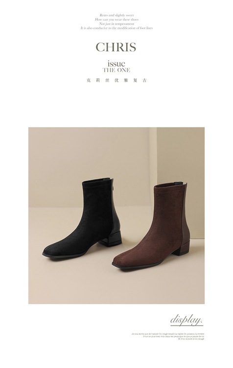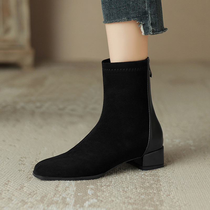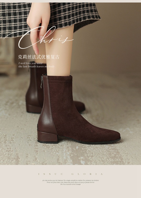 32-43 사이즈 부츠 스웨이드 미드힐 부츠 스플라이스드 청키힐 숏부츠 여성 가을 겨울 신상 여성 부츠 해외 직구 신발스토어 가기
