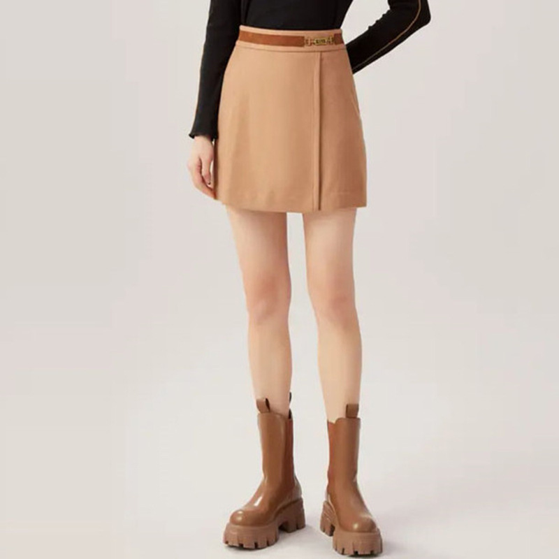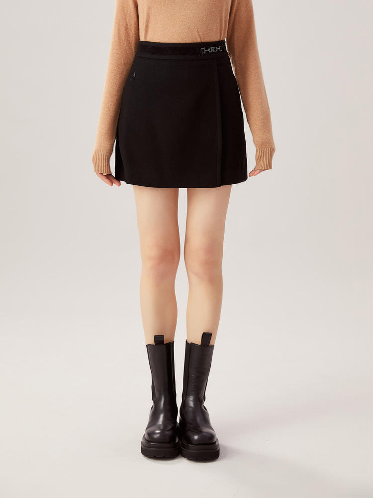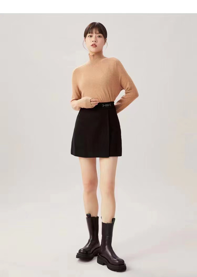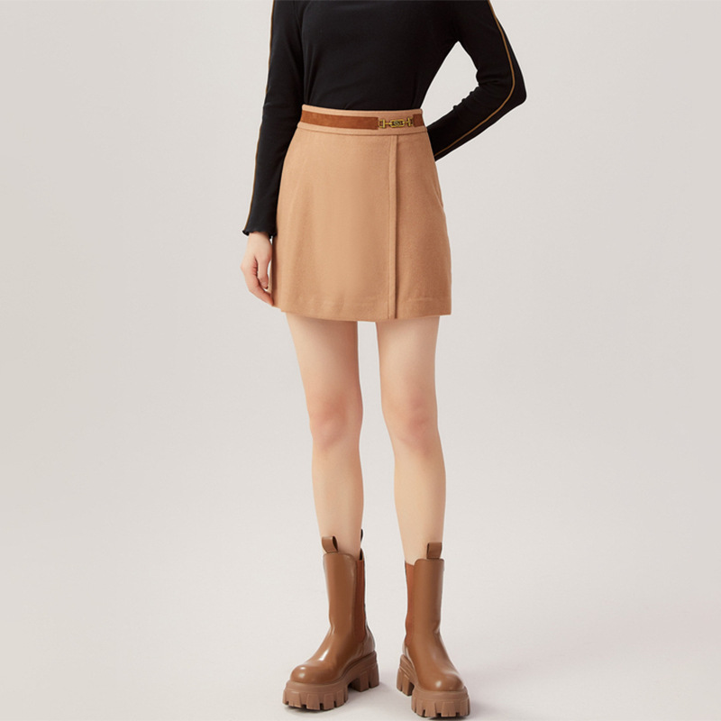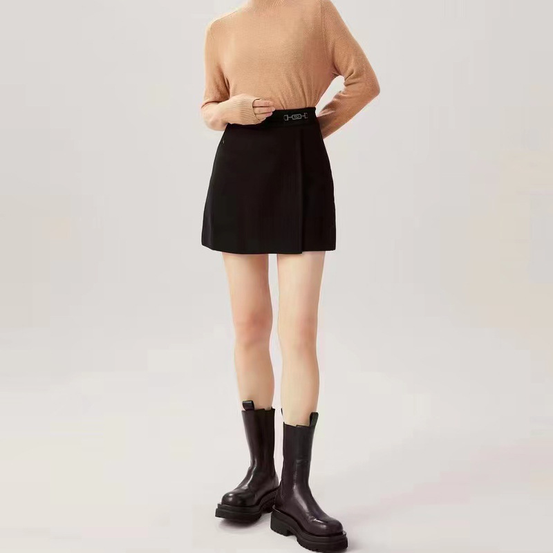 브라더의 새로운 2023 겨울 새로운 모든 경기 슬림 블랙 디자인 하이 웨이스트 울 A 라인 스커트 여성