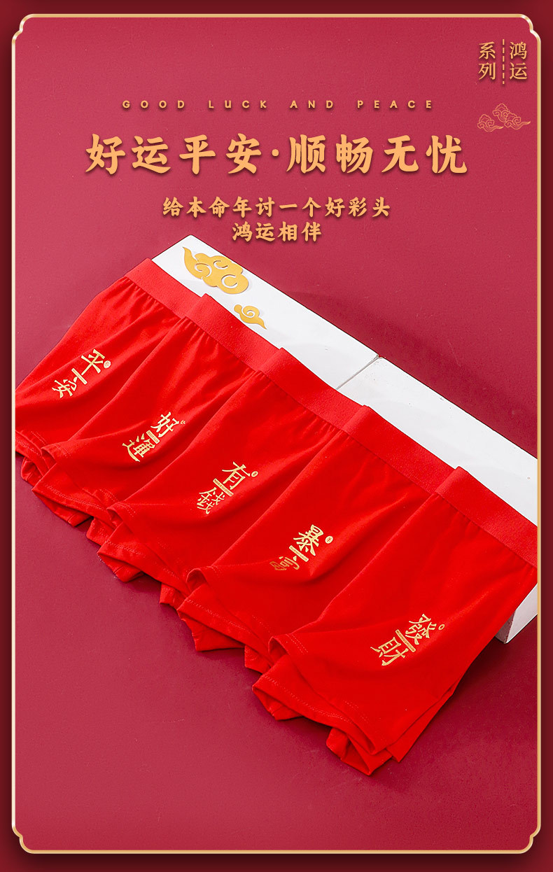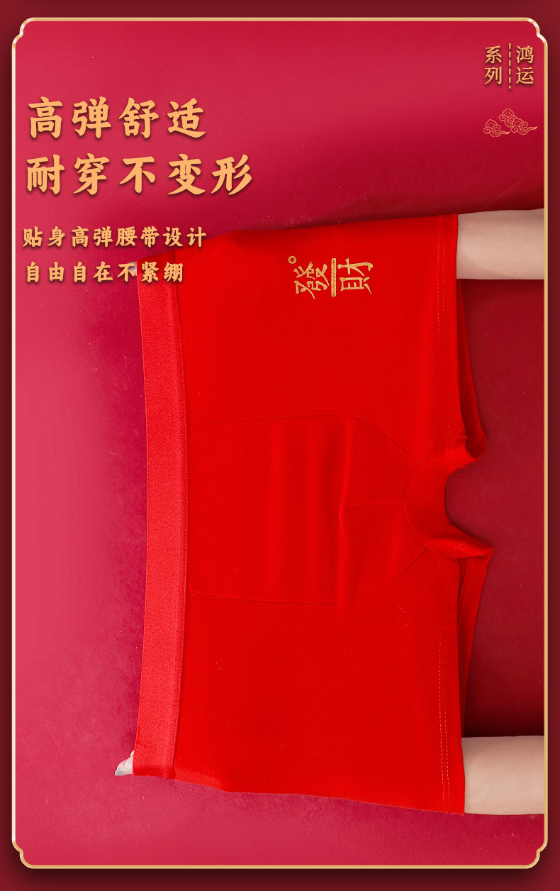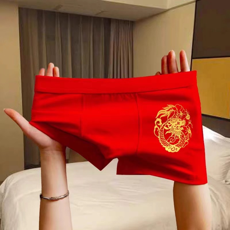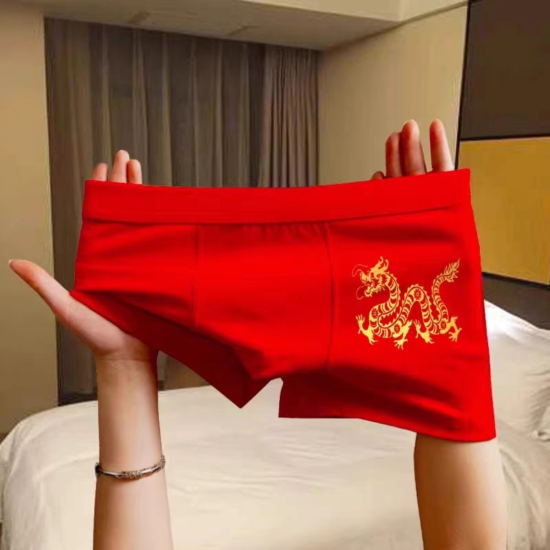 새로운 출생년도 남성용 빨간색 사각팬티 통기성 중간 허리 결혼식 니트 순면 남성 속옷 빨간색스토어 가기