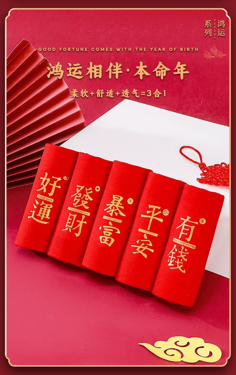 새로운 출생년도 남성용 빨간색 사각팬티 통기성 중간 허리 결혼식 니트 순면 남성 속옷 빨간색
