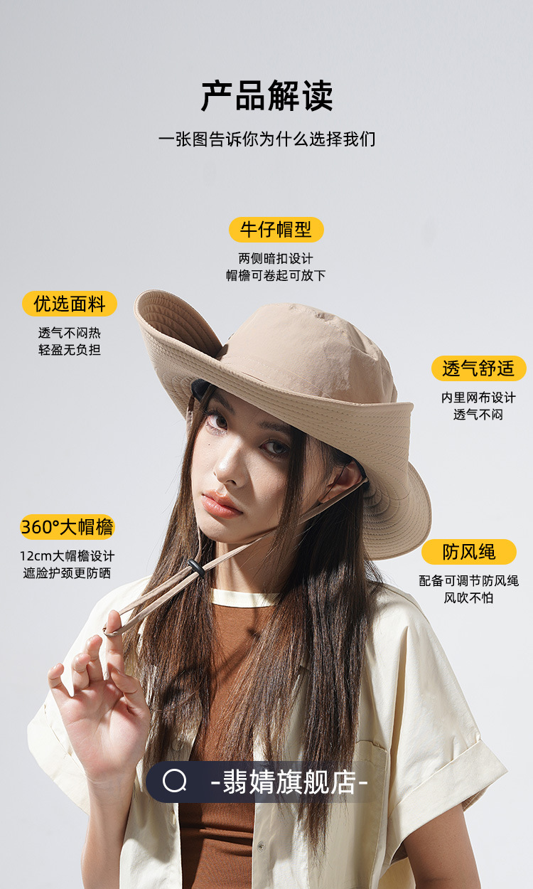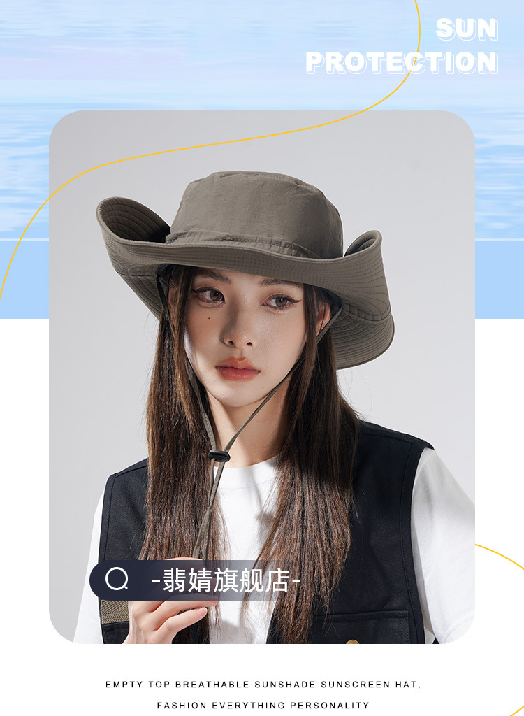 하이킹 모자 마운틴 캠핑 졸라매는 끈 어부 모자 차양 하이킹 태양 보호 야외 낚시 모자 웨스턴 카우보이 모자