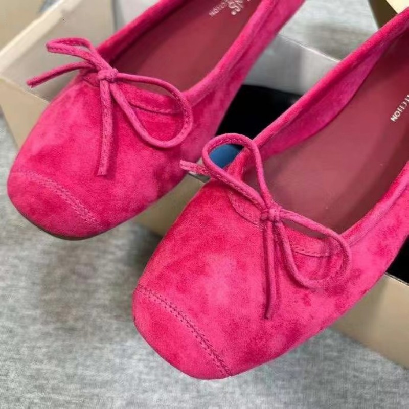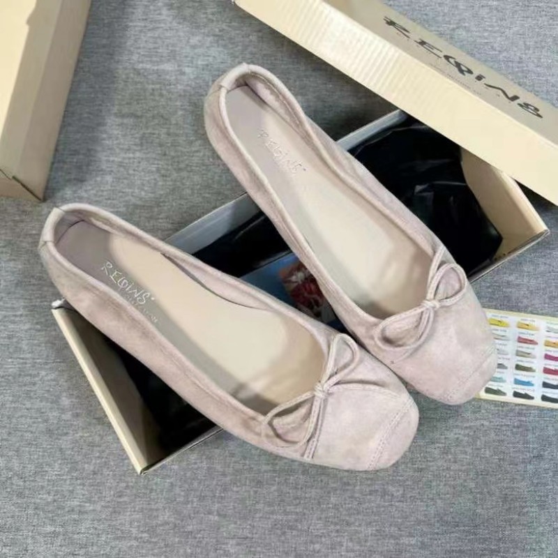 퓨어 위안 ~ 레킨스 발레 슈즈 정품 가죽 프렌치 레트로 플랫 바닥 스퀘어 보우 플랫 바닥 댄스 슈즈 여성스토어 가기