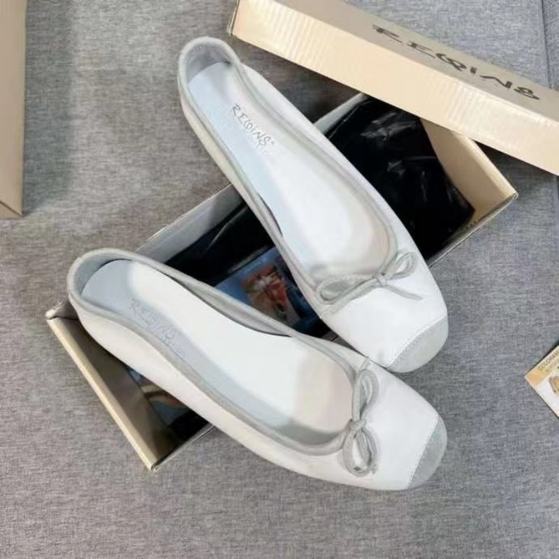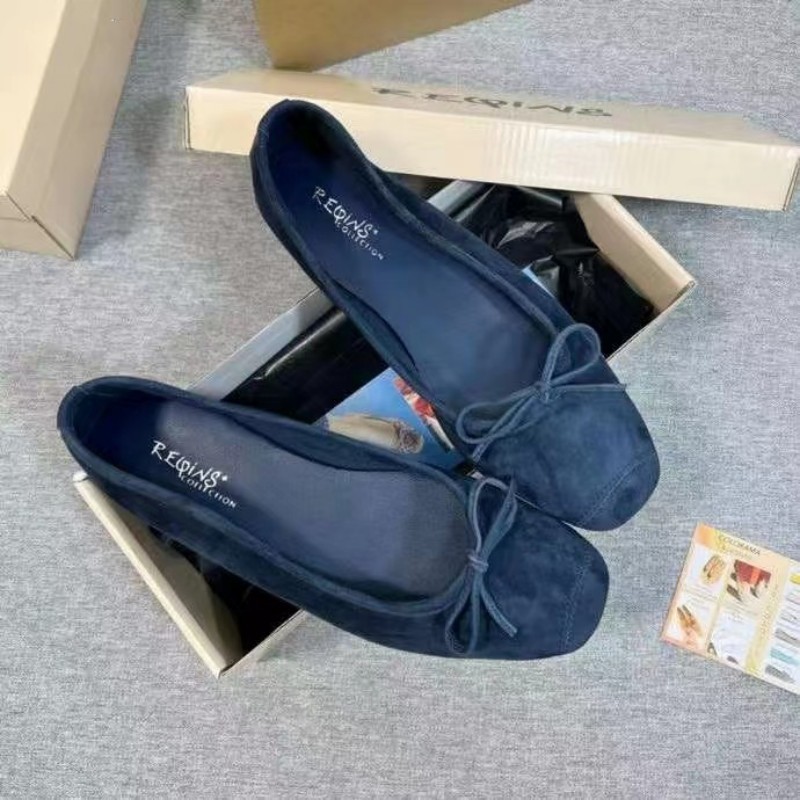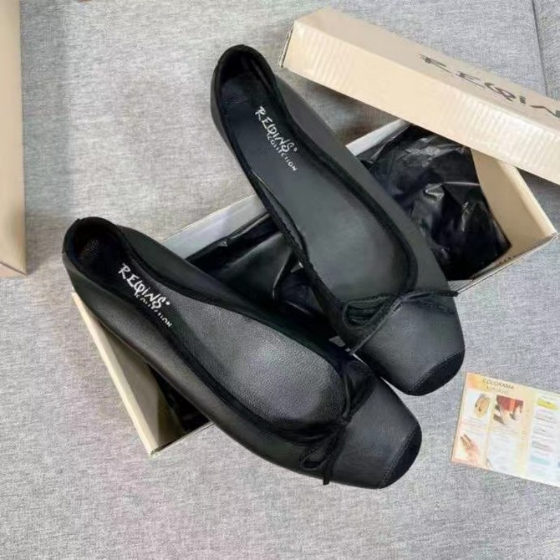 퓨어 위안 ~ 레킨스 발레 슈즈 정품 가죽 프렌치 레트로 플랫 바닥 스퀘어 보우 플랫 바닥 댄스 슈즈 여성