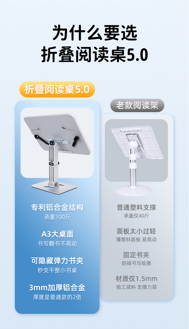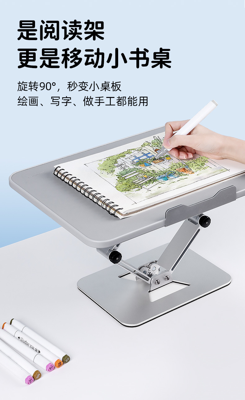 천문 금속 접이식 작은 테이블 보드 독서 랙 텔레스코픽 북 랙 연구 및 작업을위한 데스크탑 독서 책상