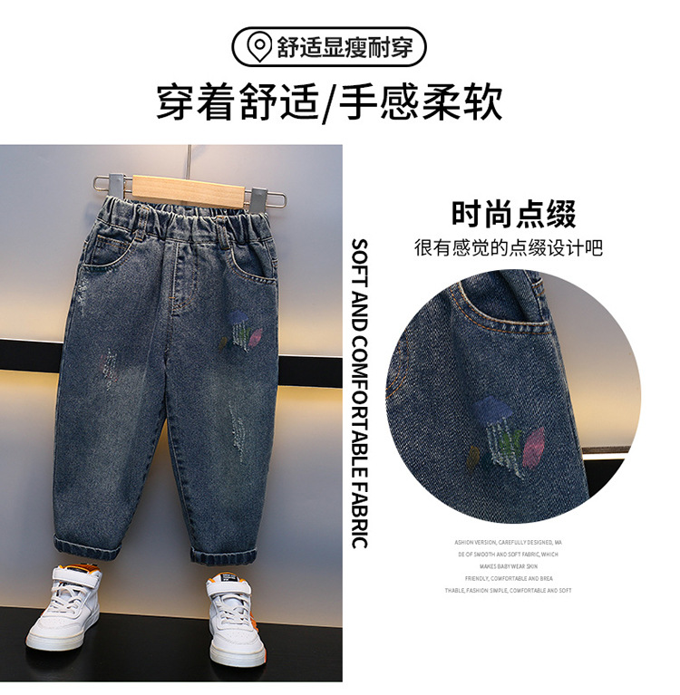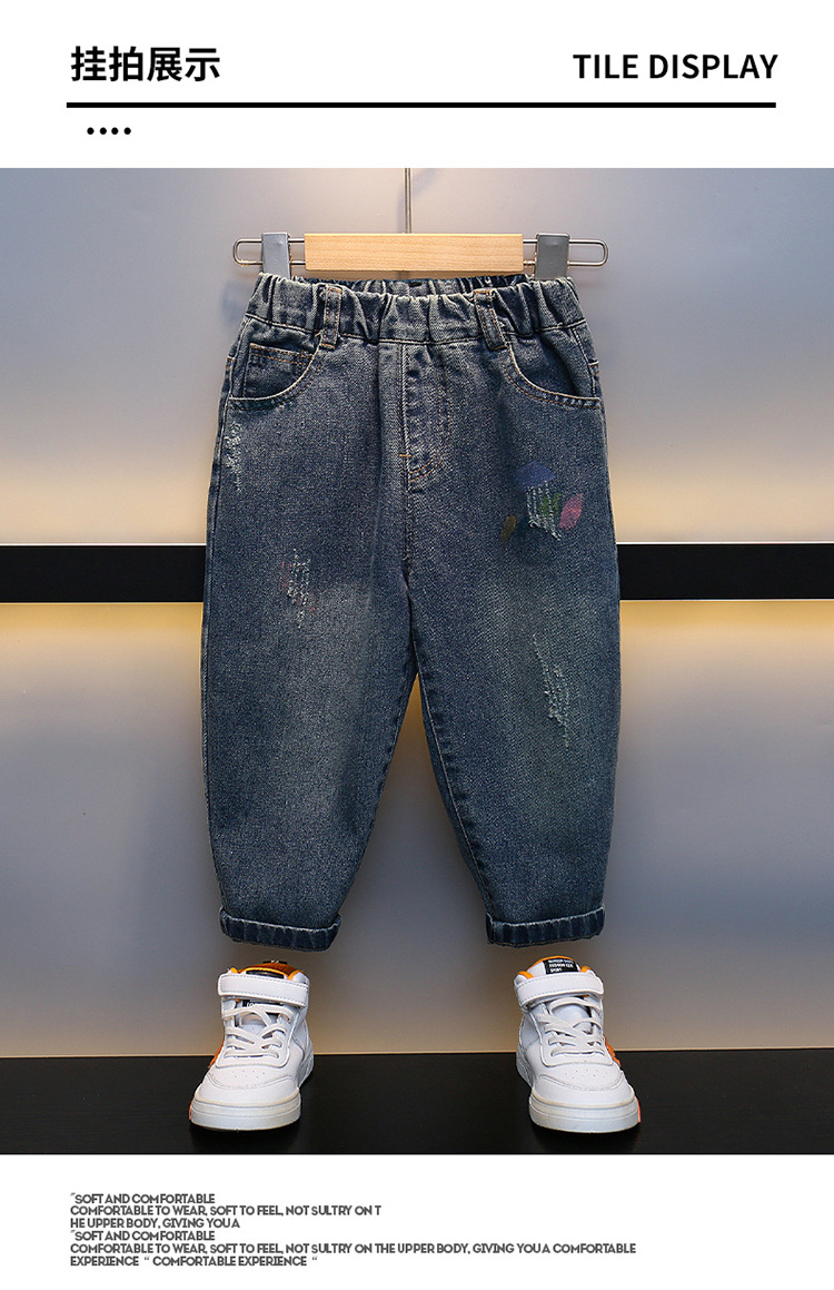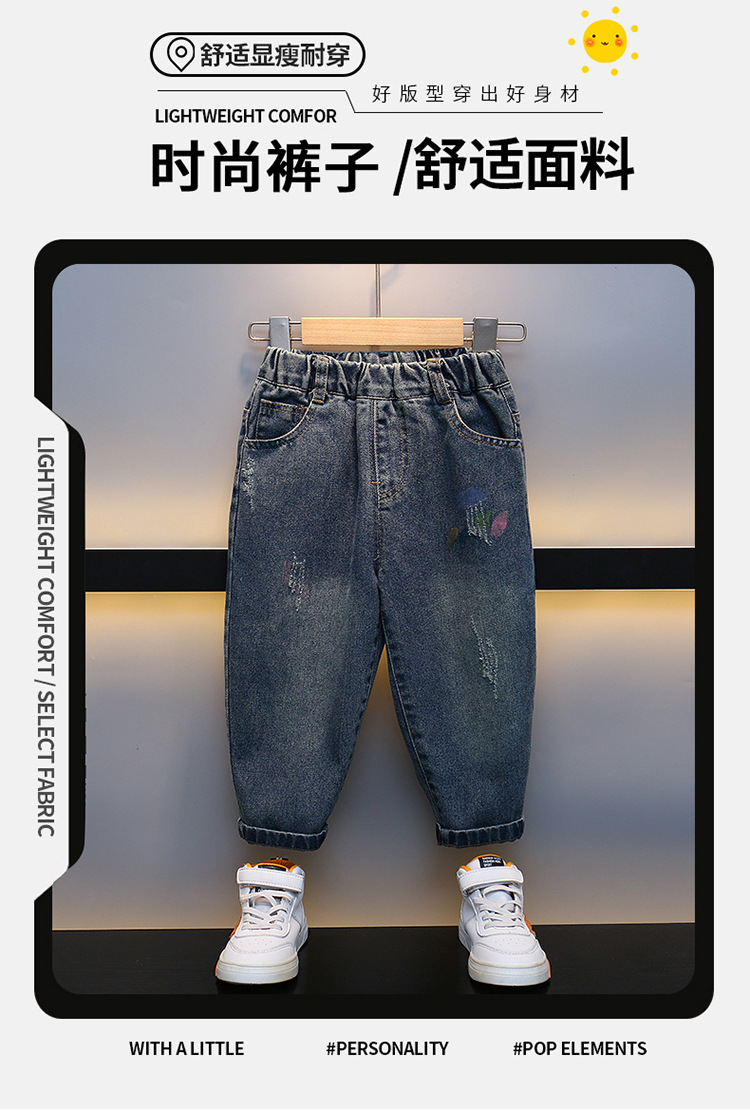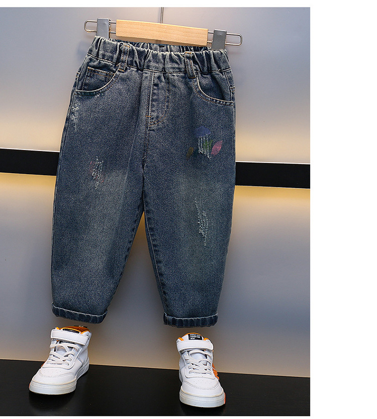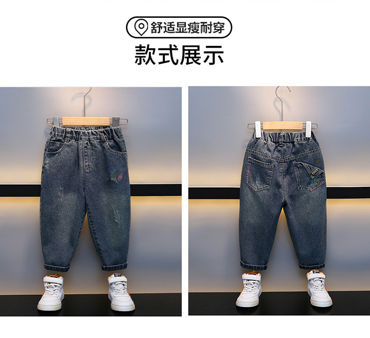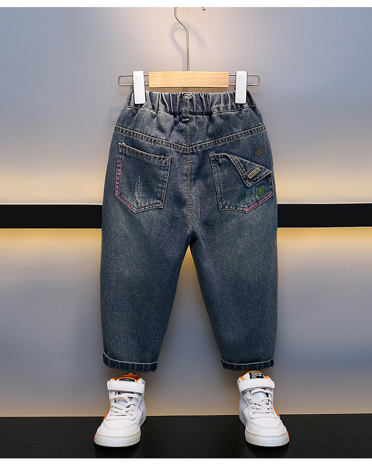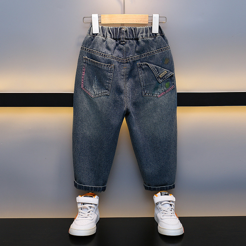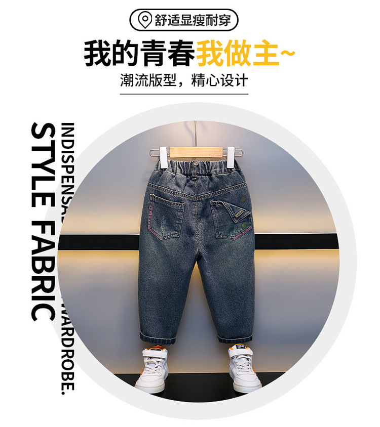 어린이 청바지 2023 년 봄 가을 새 소년 서양식 한국 스타일 가을 바지 잘 생긴 아기 캐주얼 바지스토어 가기