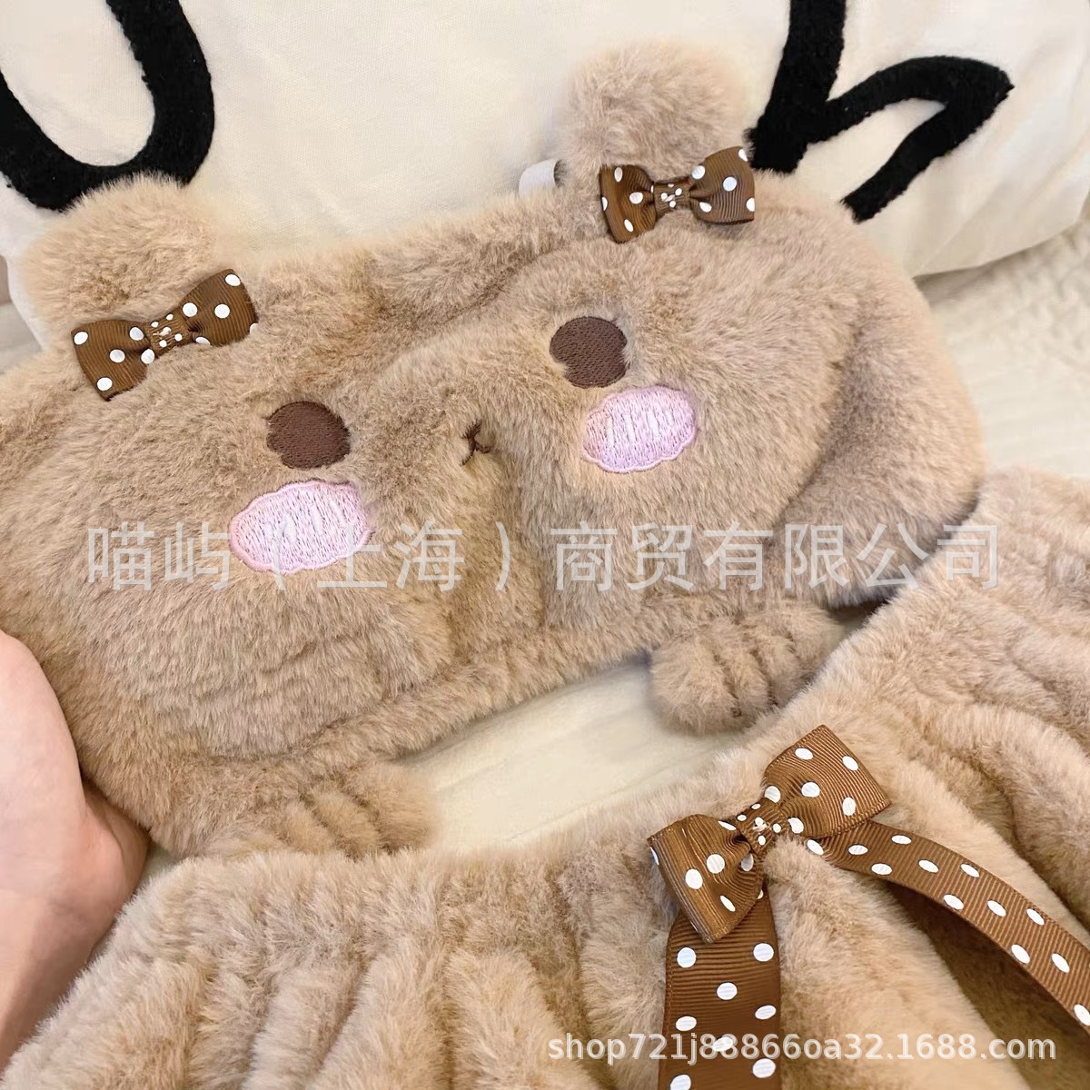 세대 머리 봉제 곰 따뜻한 브래지어 세트 소녀 부드러운 소녀 달콤한 귀여운 만화 호박 바지 강철 반지 속옷없이