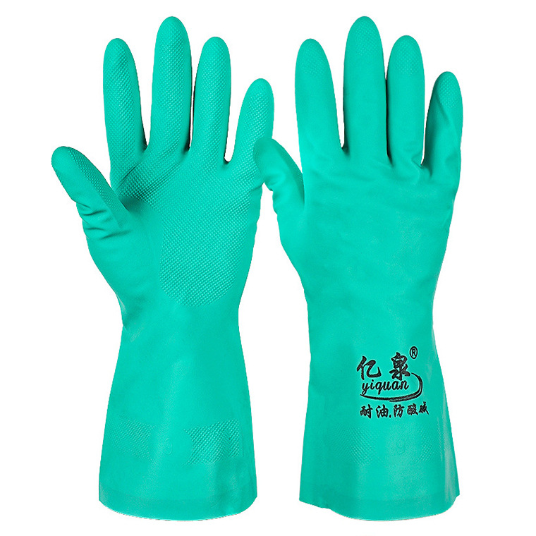 Yiquan 니트릴 몰려 드는 장갑 33cm 블루 그린 미끄럼 방지 오일 증거 방수 담근 산업 노동 보호 장갑스토어 가기