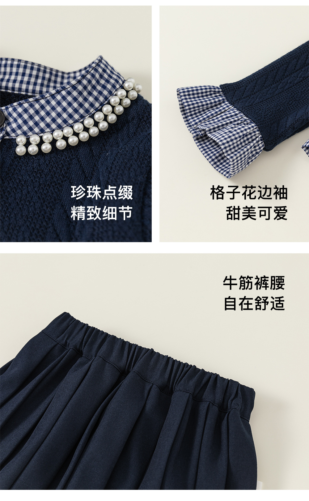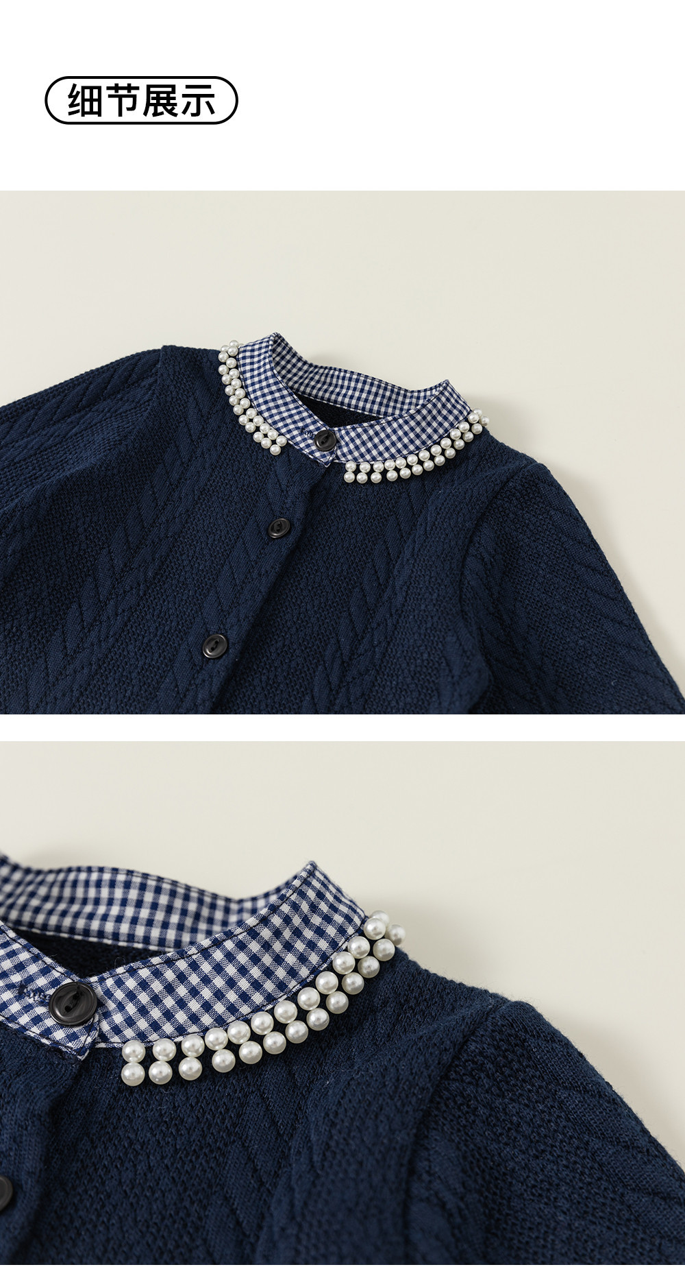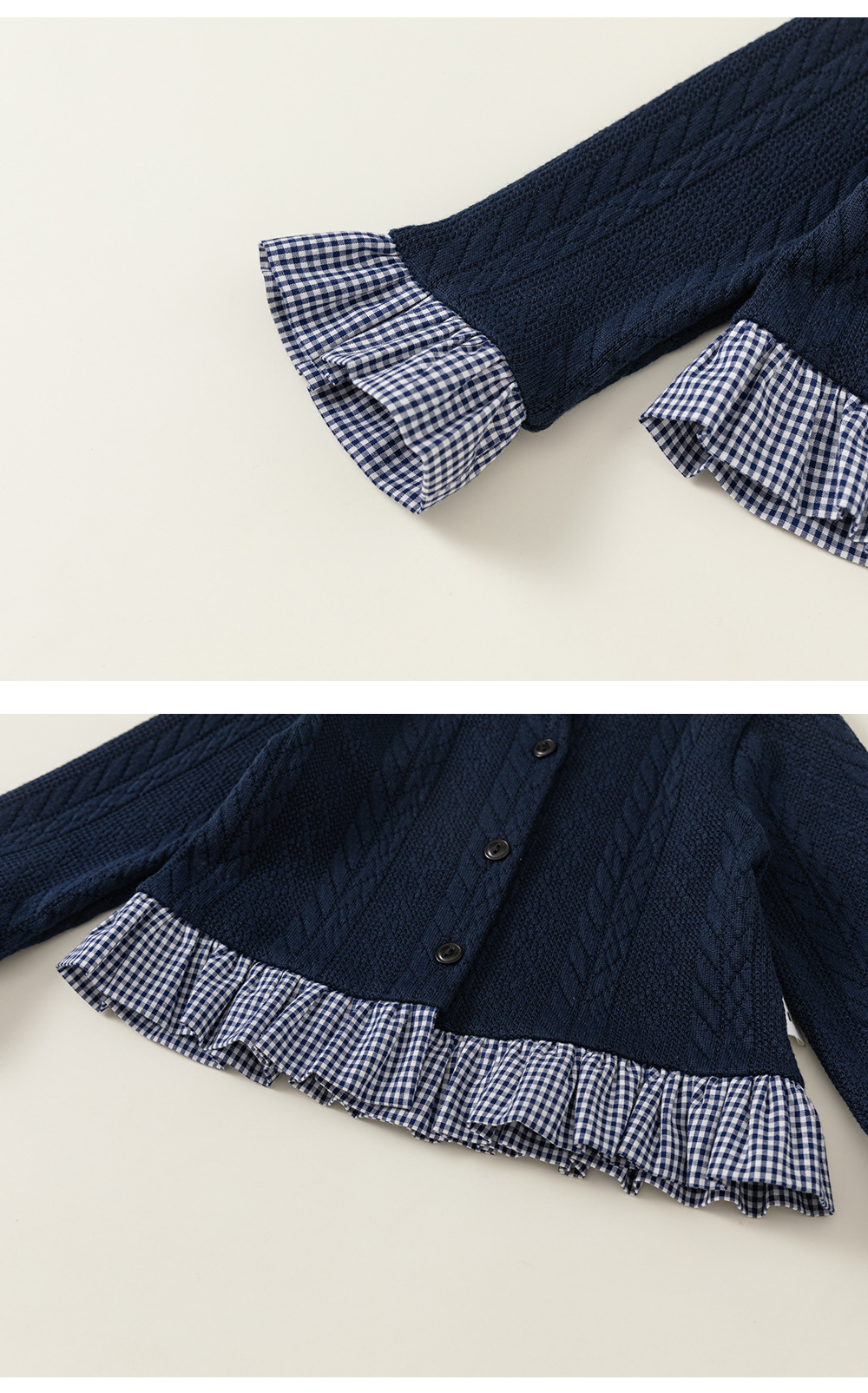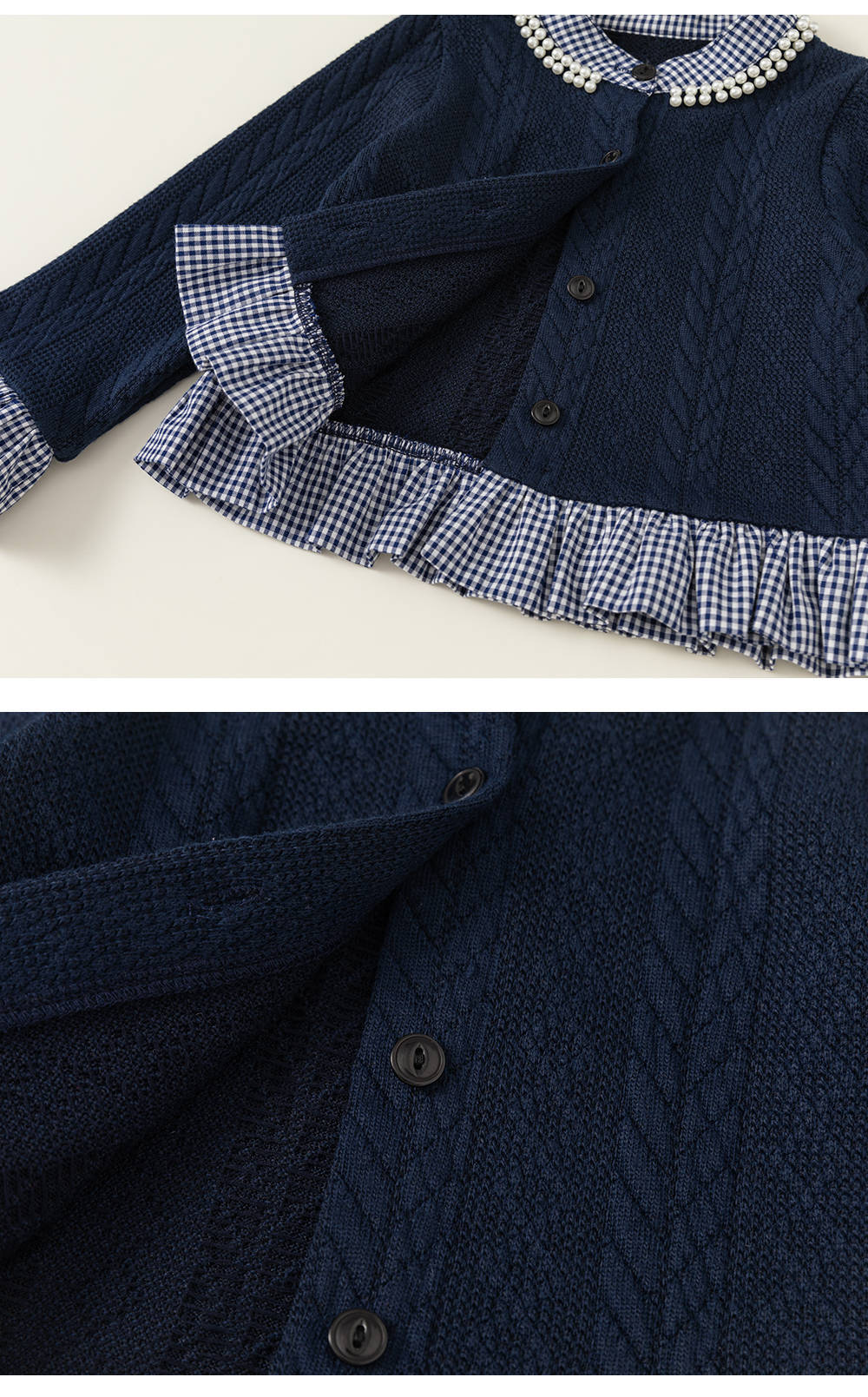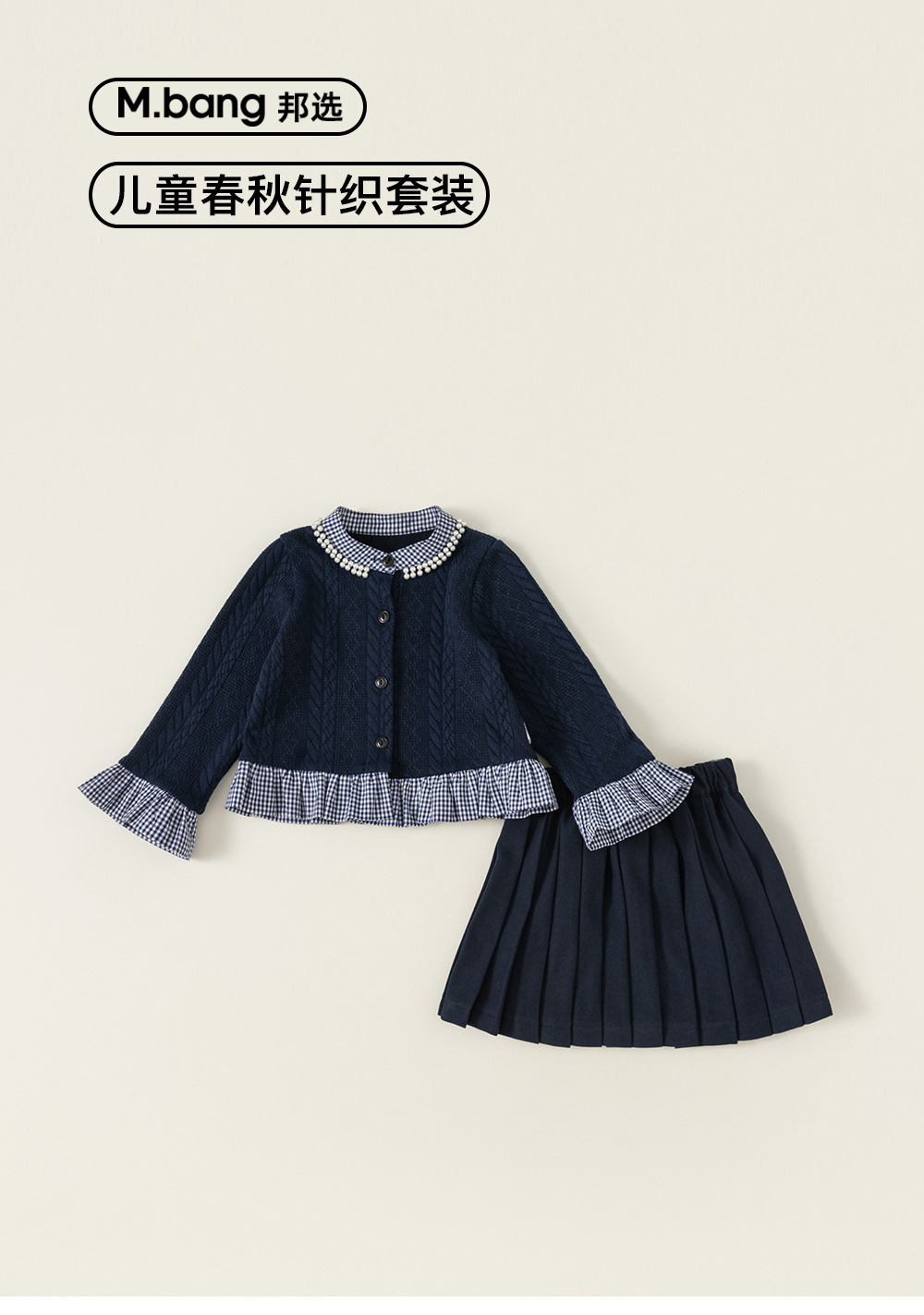 방선택 아동복 봄가을 여아복 세트, 컬리지 스타일 아동 러플 소매 니트 가디건 플리츠 스커트 투피스 세트