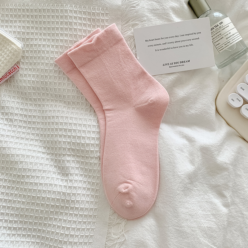 月子袜诸暨袜子女初秋冬韩系纯色棉袜糖果色绵绵袜松口中筒无骨袜