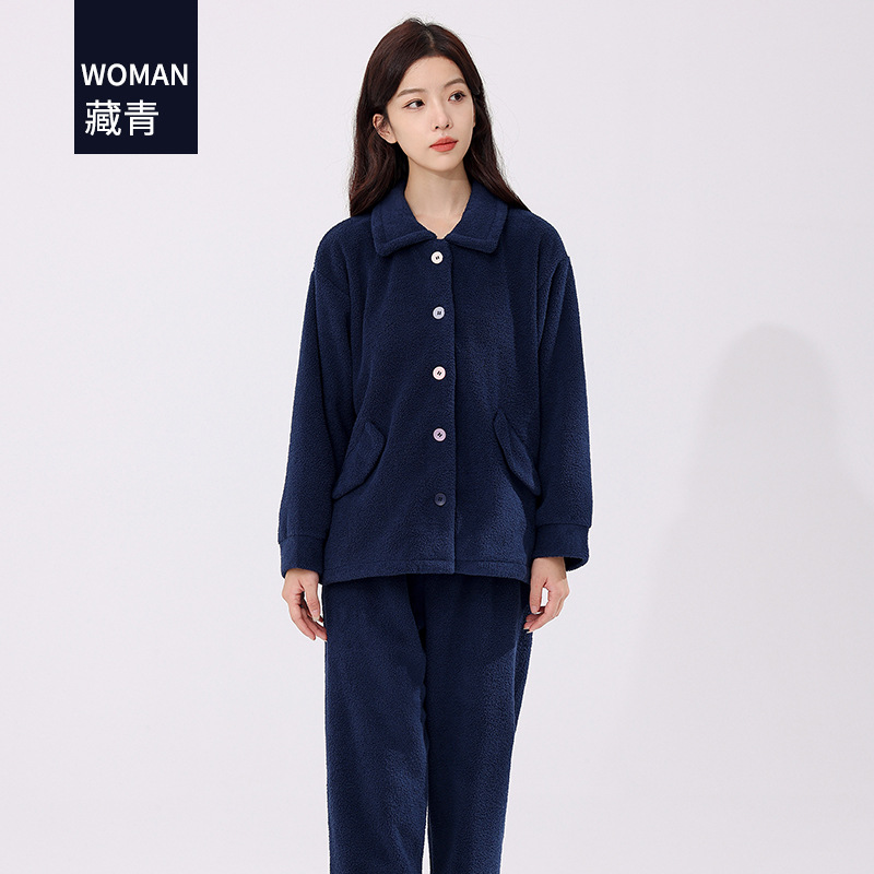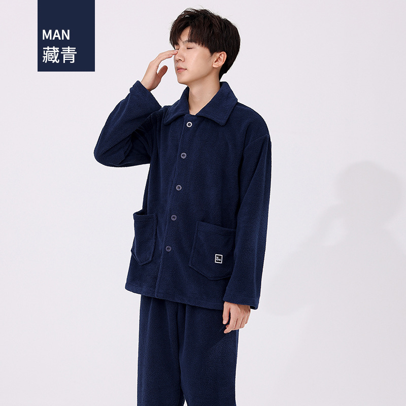 따뜻한 감각 산호 양털 커플의 옷깃 포켓 남자의 두꺼운 여자의 가정 옷 세트 가을과 겨울 따뜻한 잠옷 재고스토어 가기