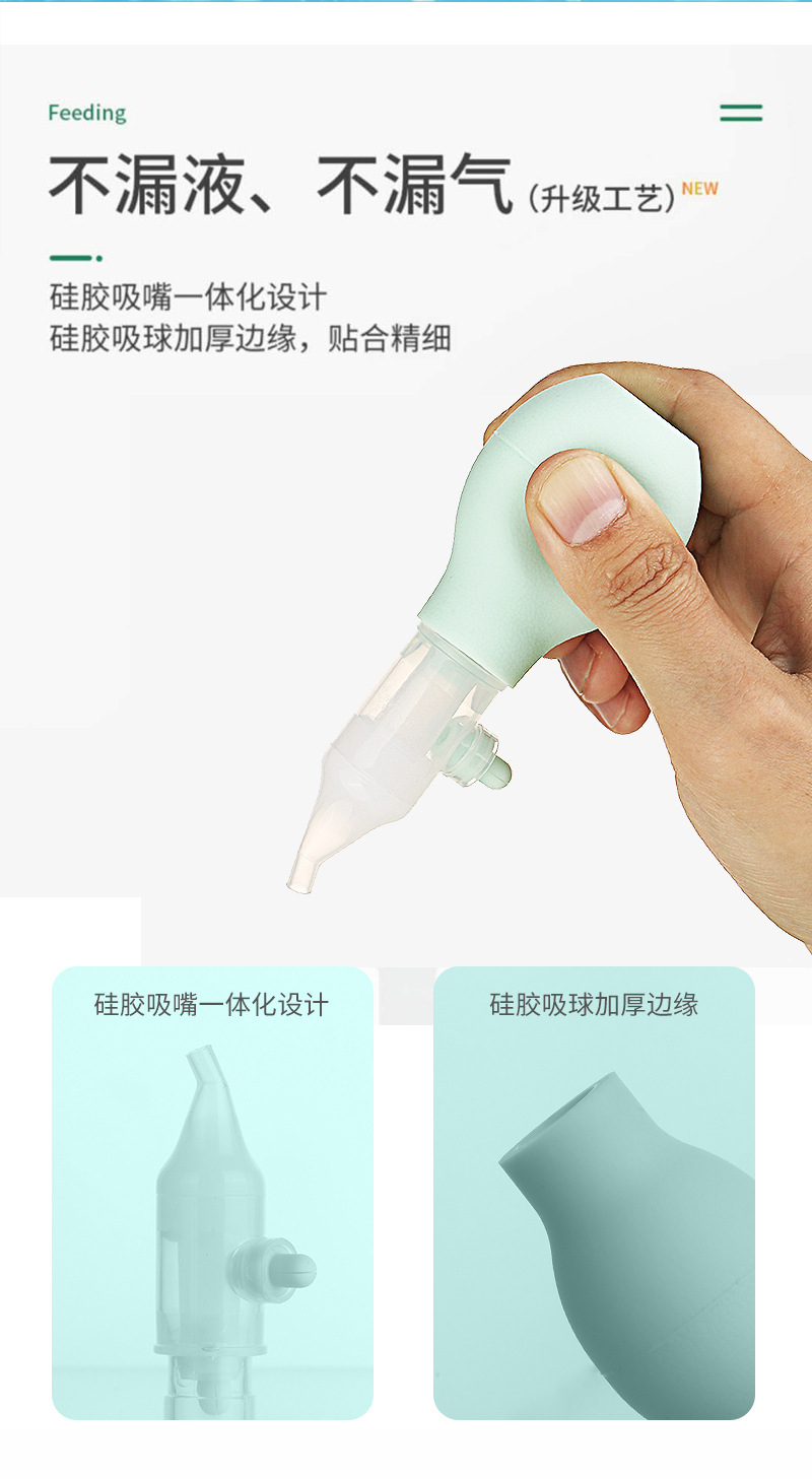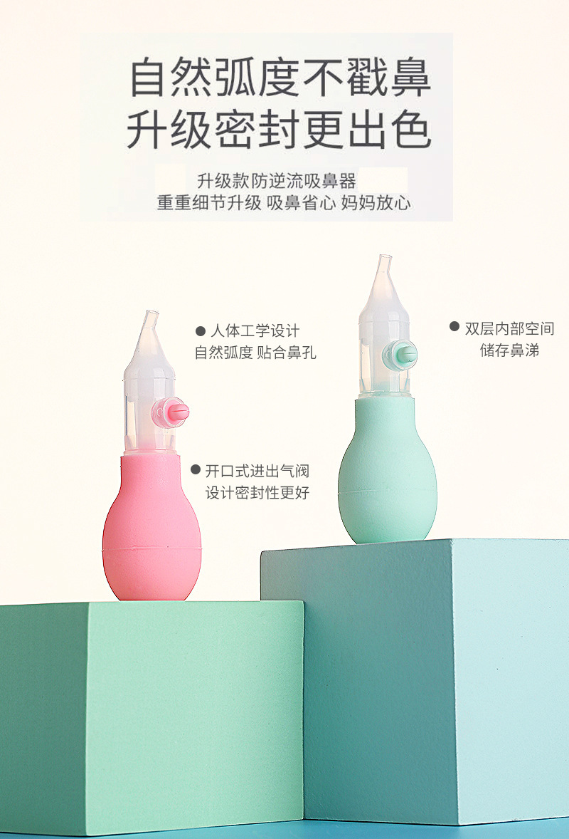 아기 비강 흡인기 실리콘 펌프 유형 안티 역류 업그레이드 비강 흡인기 15 도 곡선 비강 흡인기 재고 도매