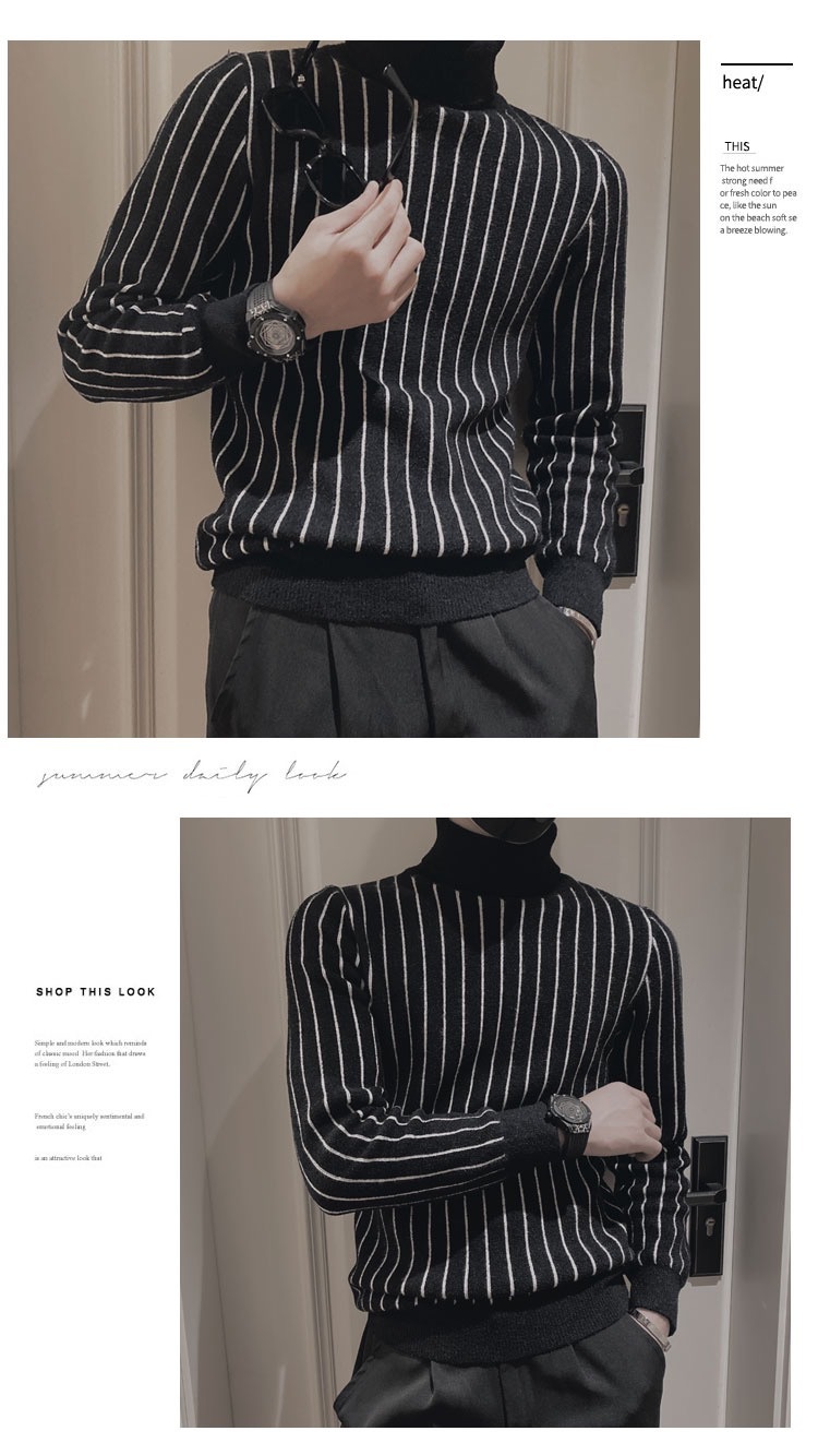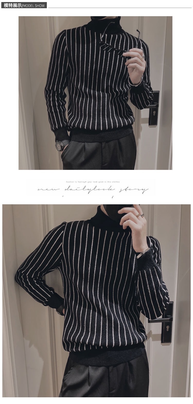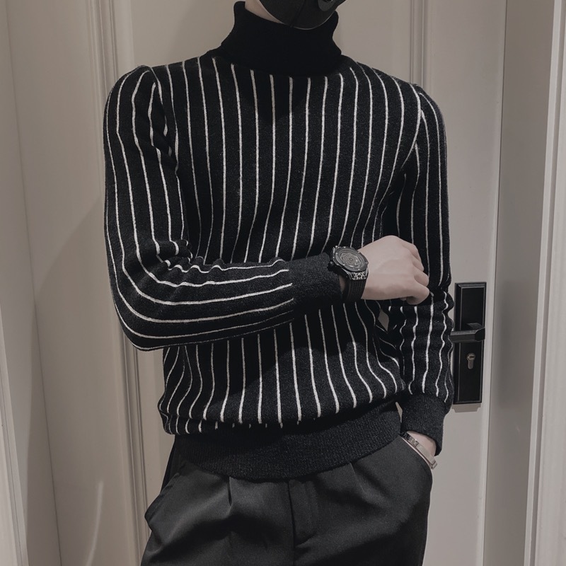 가을과 겨울 따뜻한 터틀넥 스웨터 남성 캐주얼 스트라이프 Ruffian 잘 생긴 슬림핏 스웨터 트렌디 브랜드 올매치 이너 탑스토어 가기