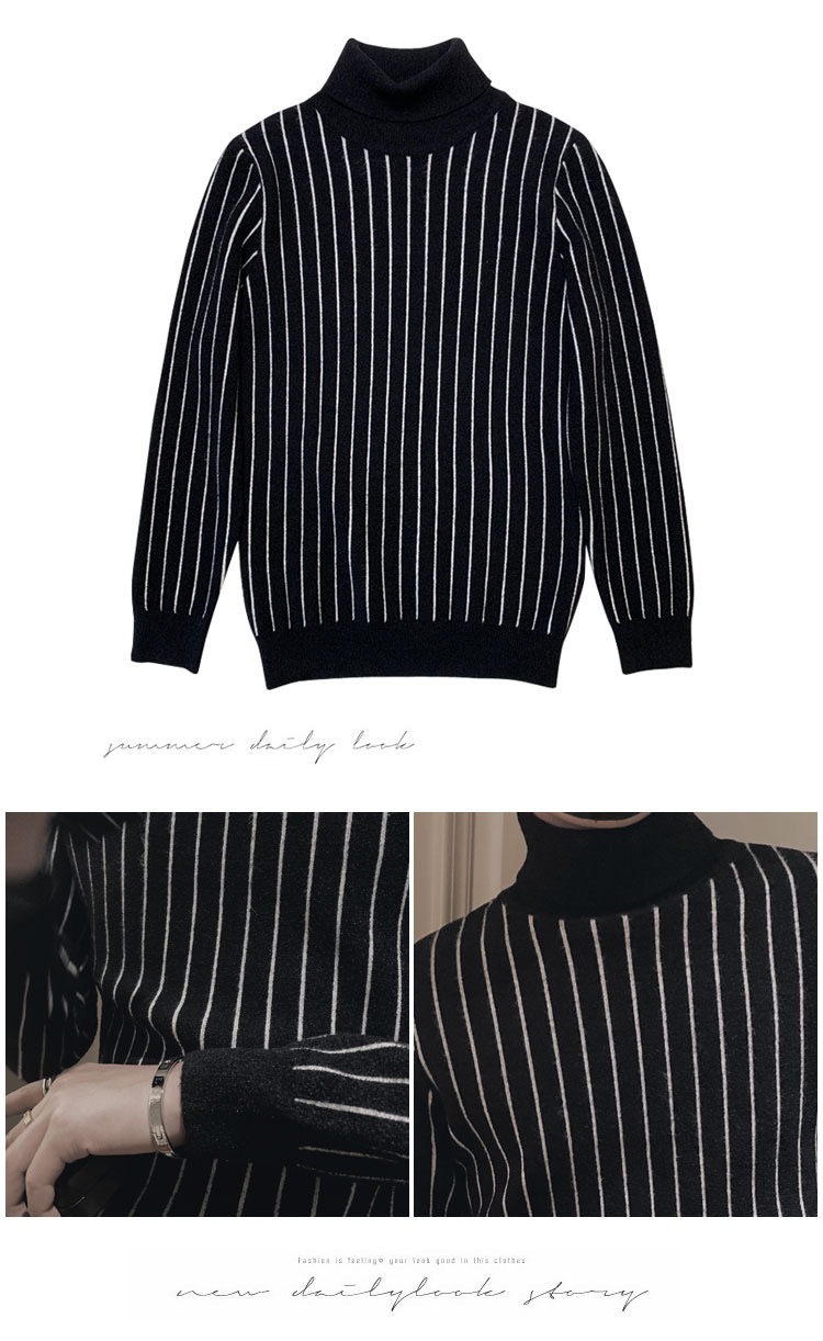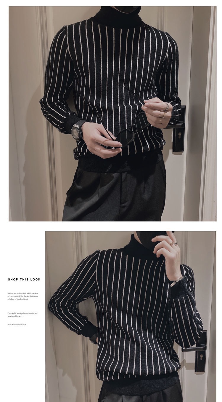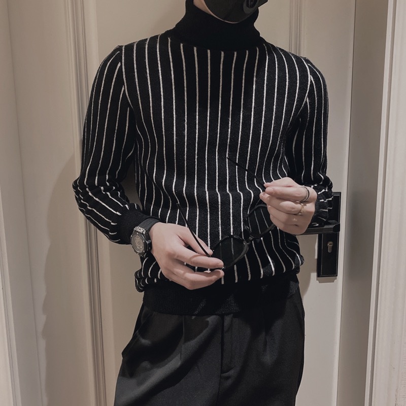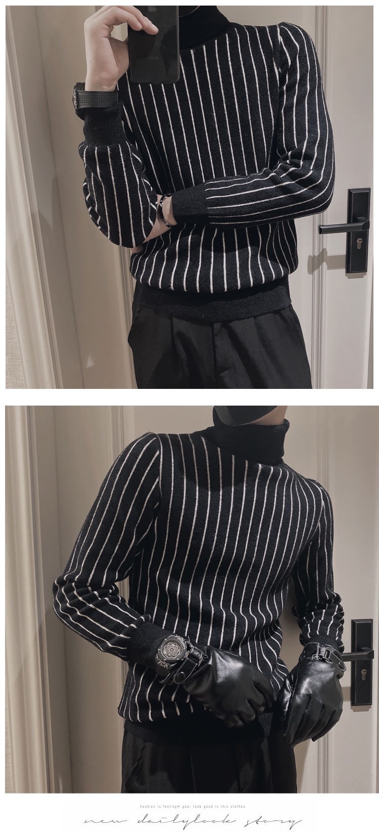 가을과 겨울 따뜻한 터틀넥 스웨터 남성 캐주얼 스트라이프 Ruffian 잘 생긴 슬림핏 스웨터 트렌디 브랜드 올매치 이너 탑스토어 가기
