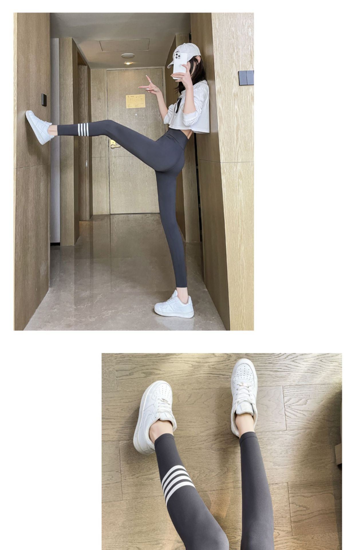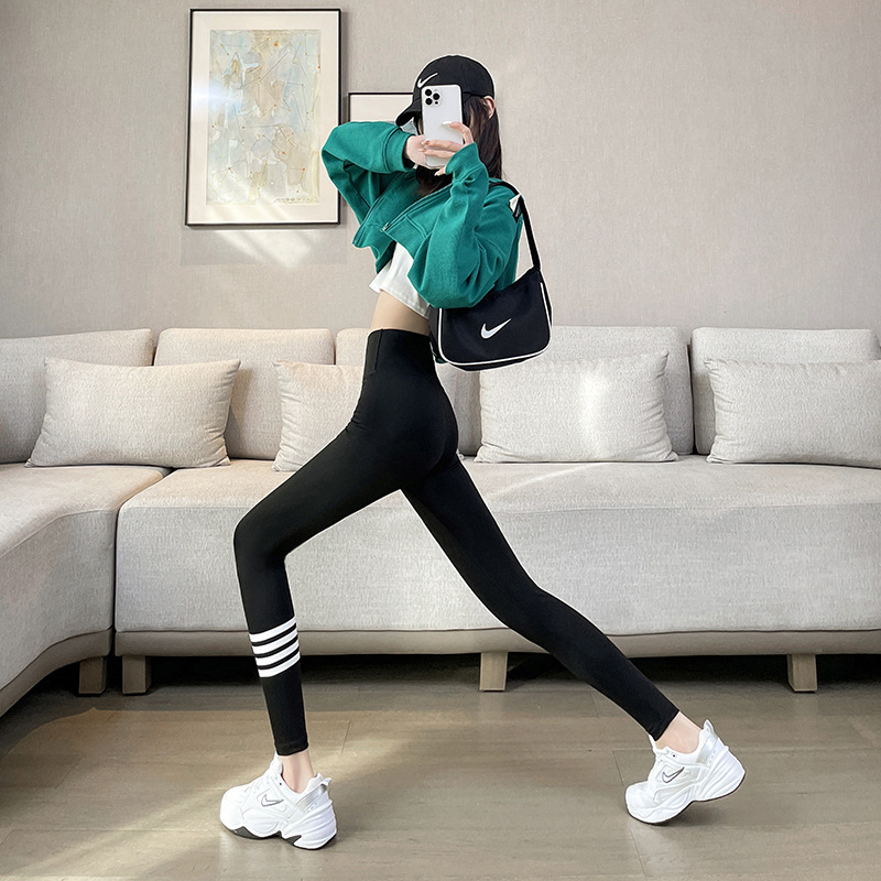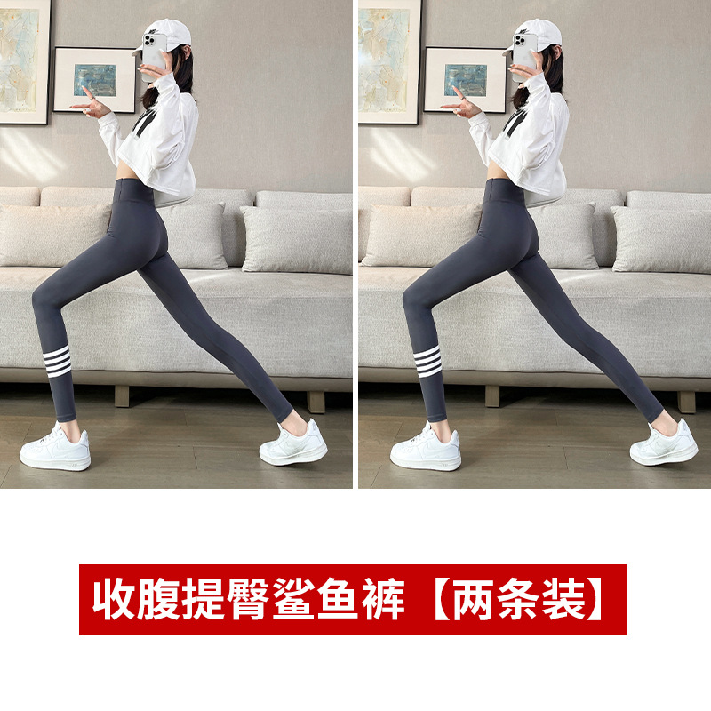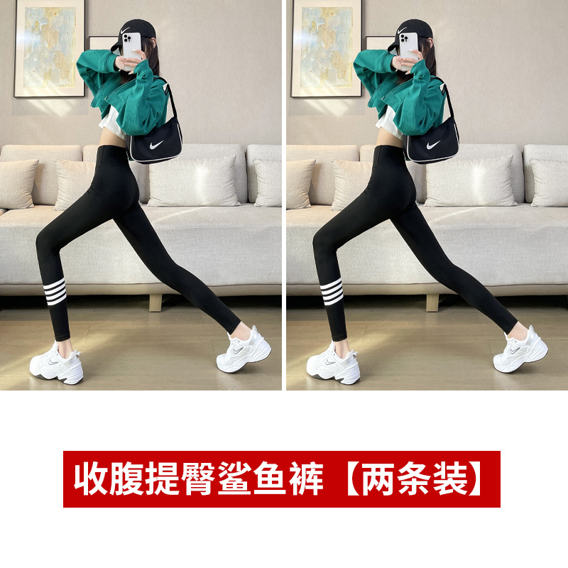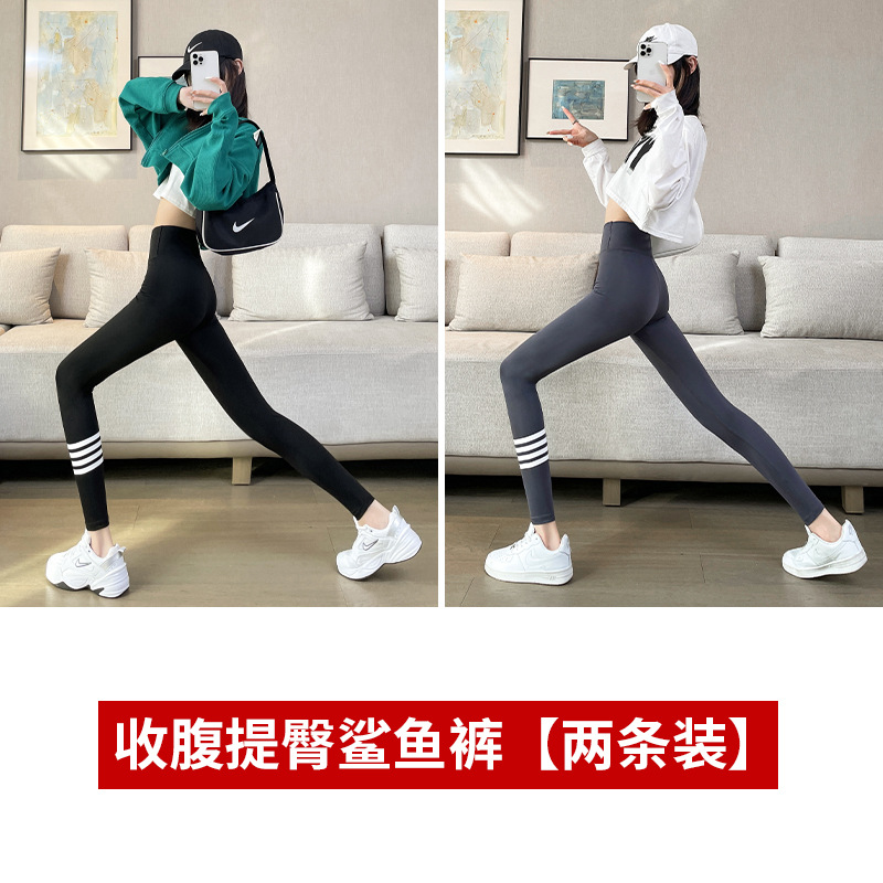 4 개의 백색 바 상어 바지 여자의 봄과 가을 여름 얇은 레깅스 하이 웨이스트 복부 엉덩이 리프팅 겉옷 탄성 요가 바지스토어 가기