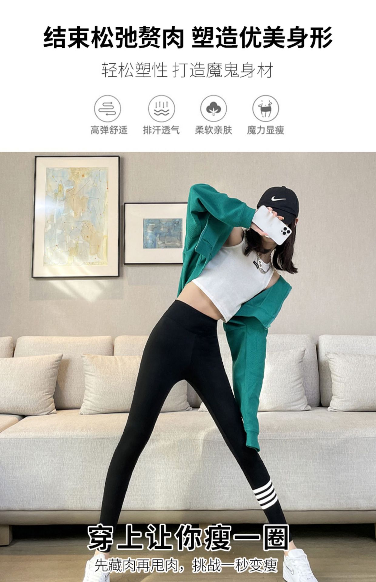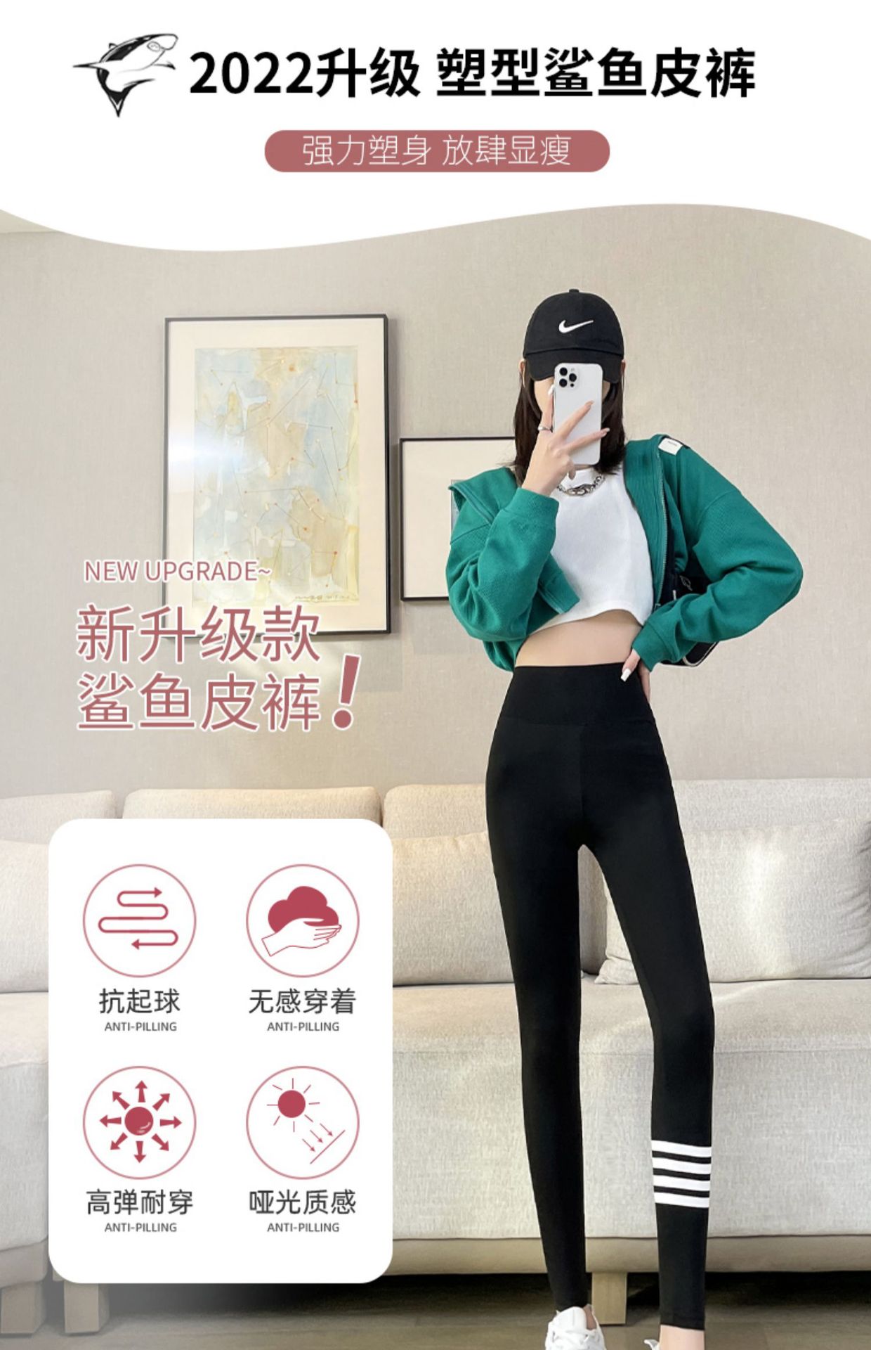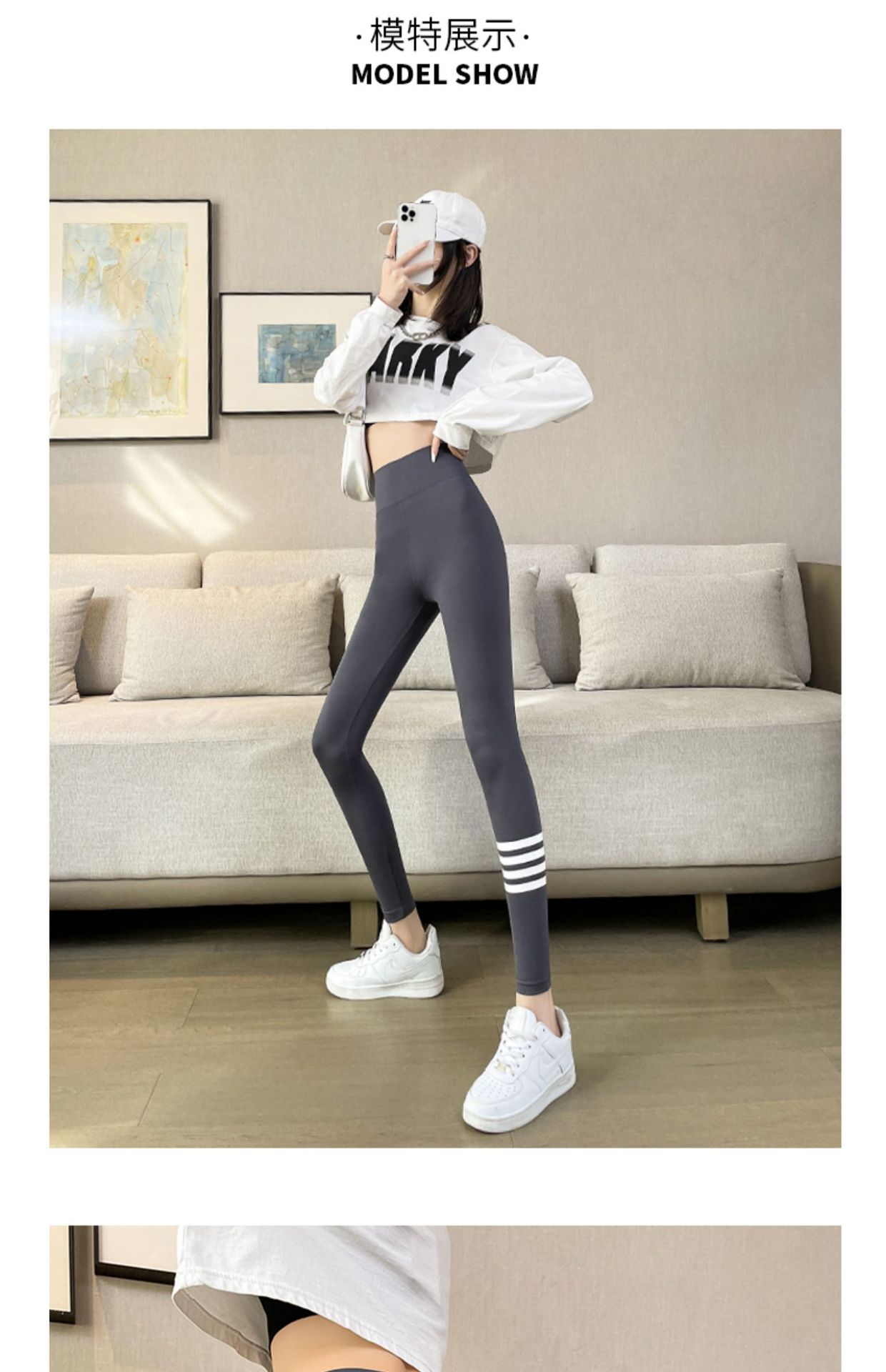 4 개의 백색 바 상어 바지 여자의 봄과 가을 여름 얇은 레깅스 하이 웨이스트 복부 엉덩이 리프팅 겉옷 탄성 요가 바지스토어 가기