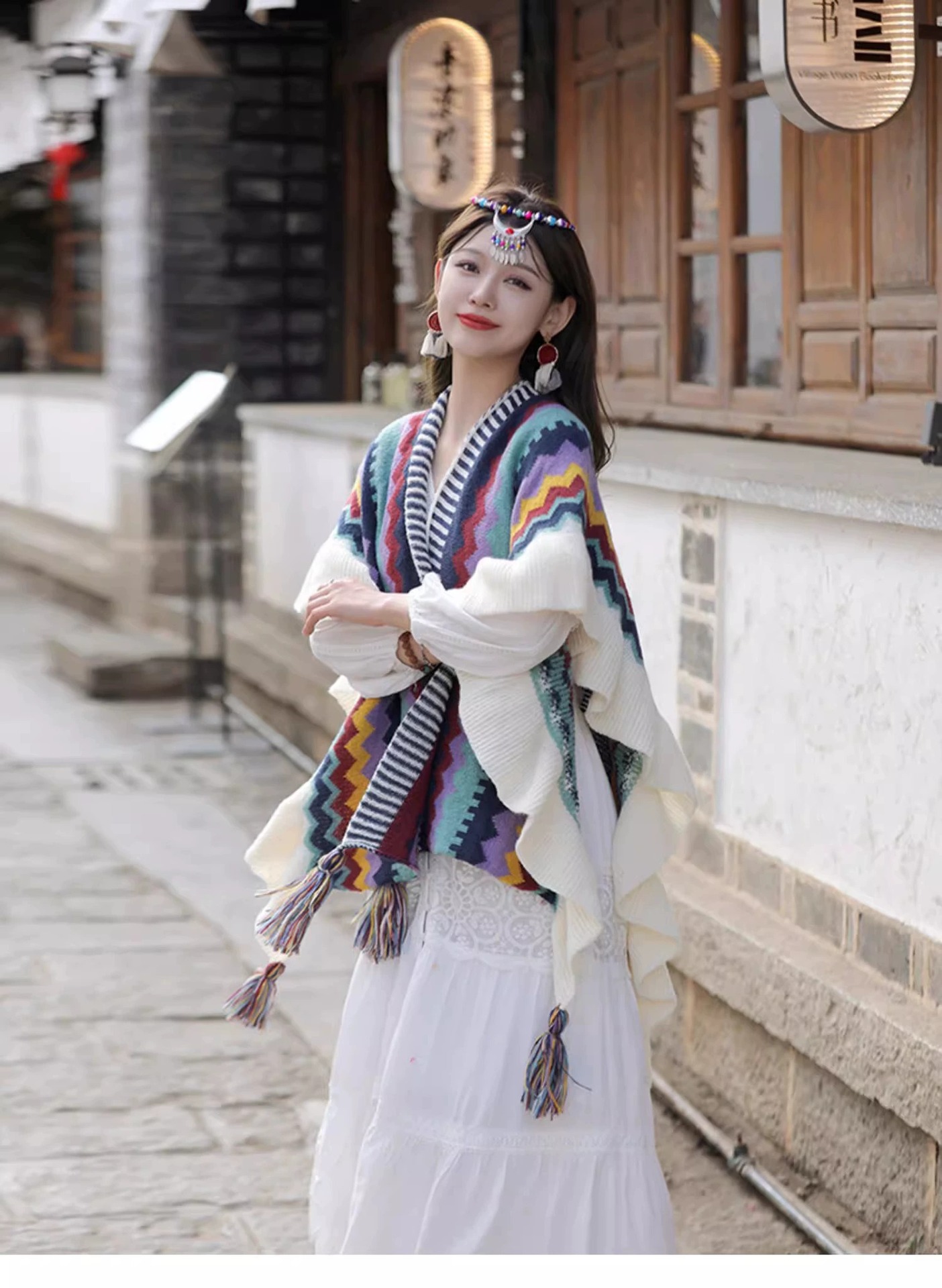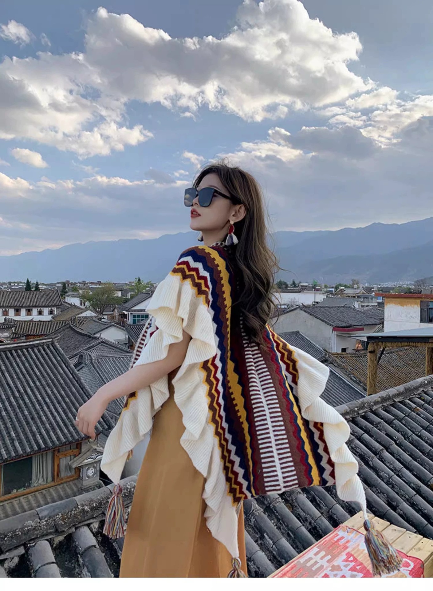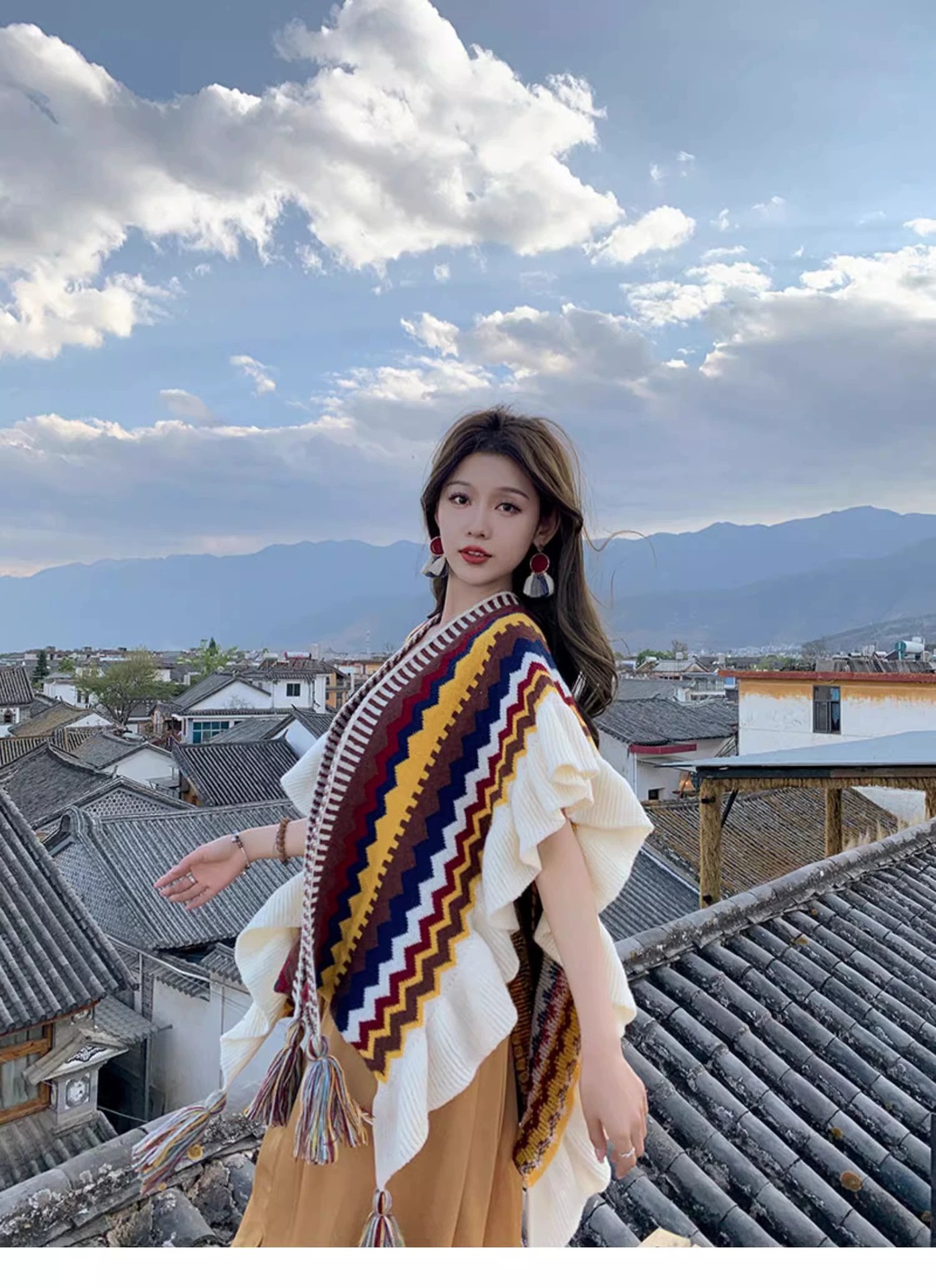 빈티지 에스닉 스타일 귀테 숄 여성용 윈난 리장 여행 망토 새로운 보헤미안 스타일 망토를 착용