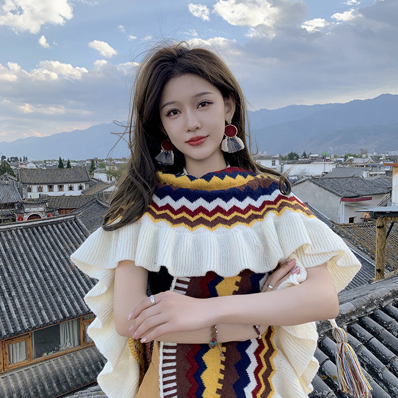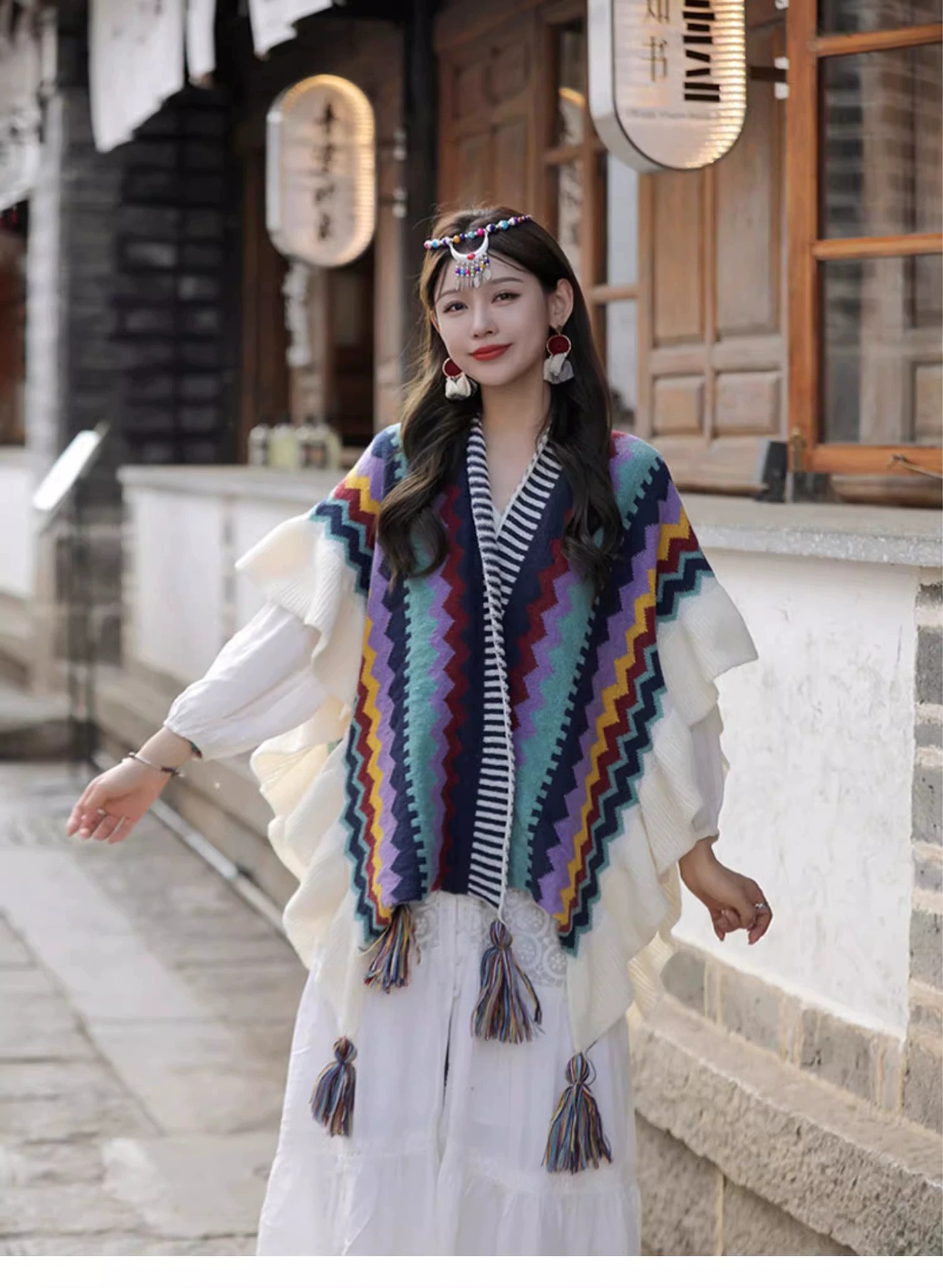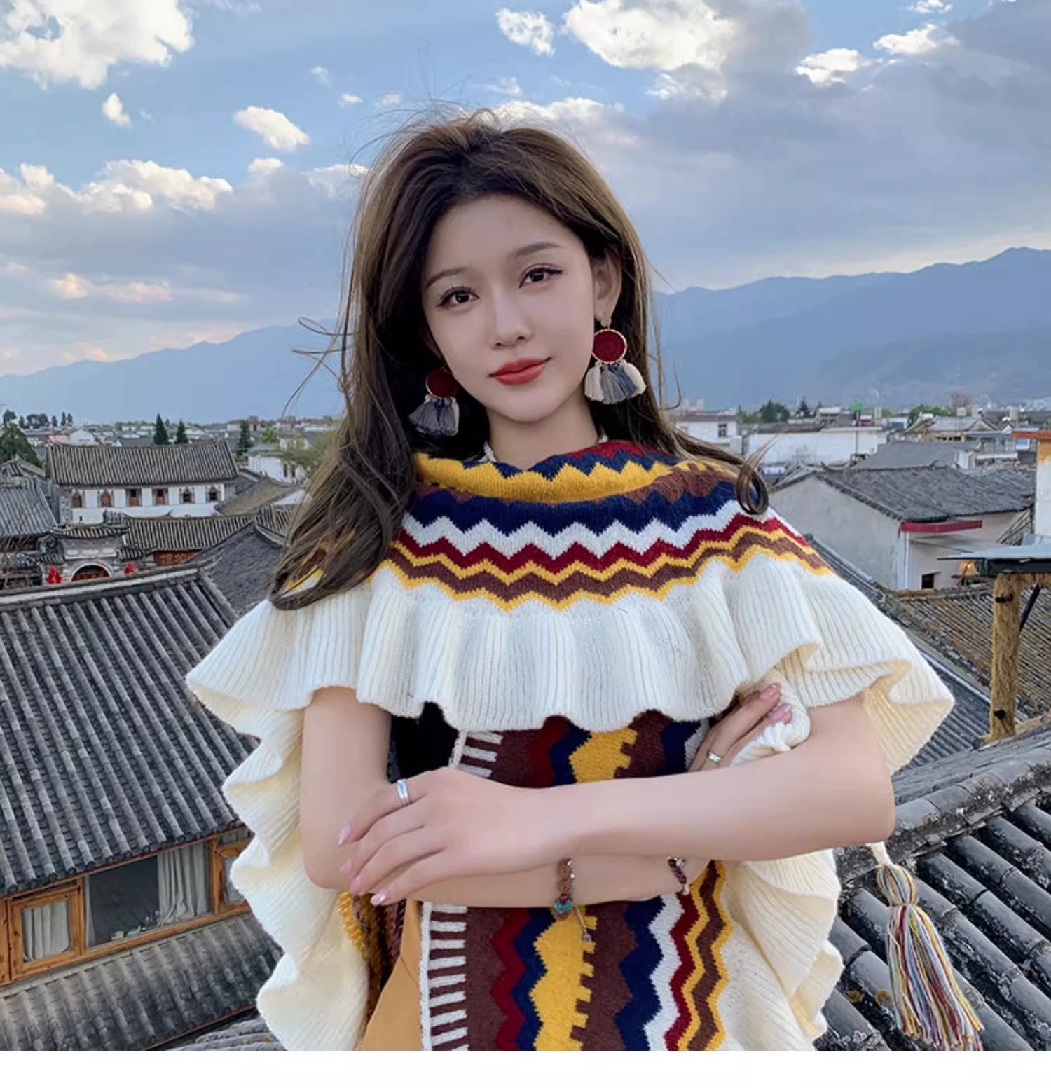 빈티지 에스닉 스타일 귀테 숄 여성용 윈난 리장 여행 망토 새로운 보헤미안 스타일 망토를 착용
