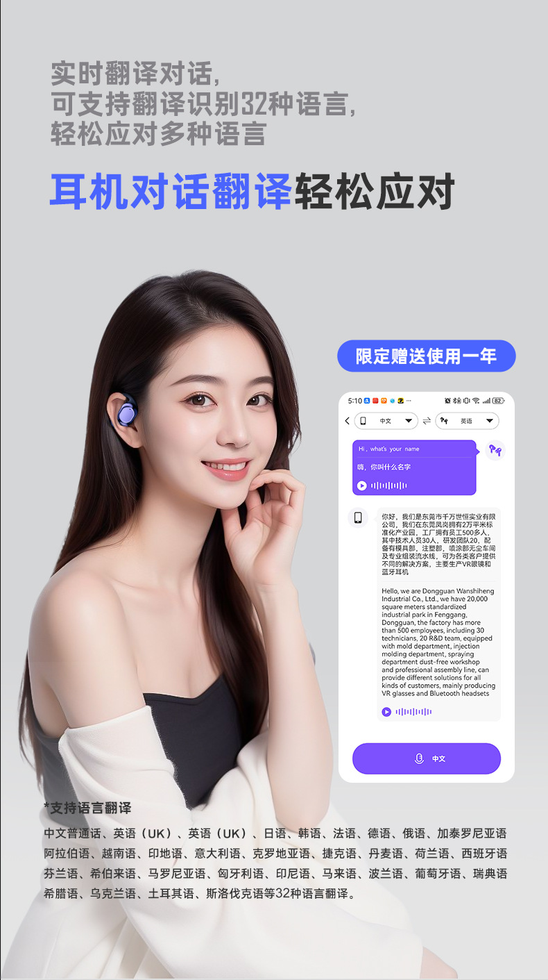 蓝牙耳机 AI翻译耳机 耳机 无线耳机 跨境专供