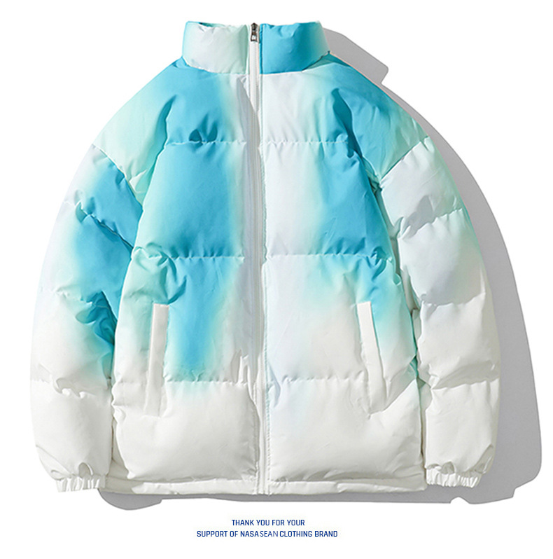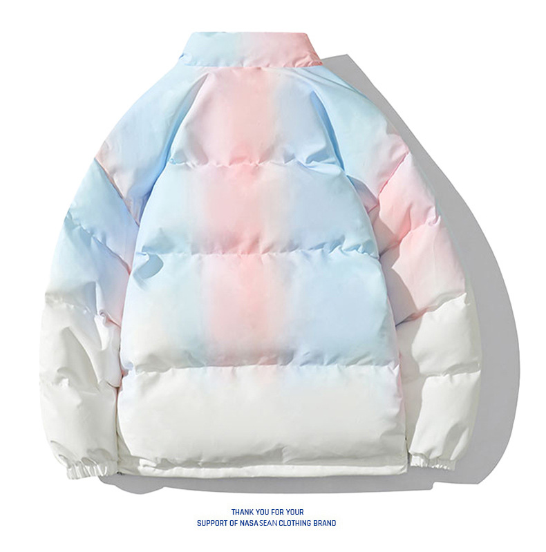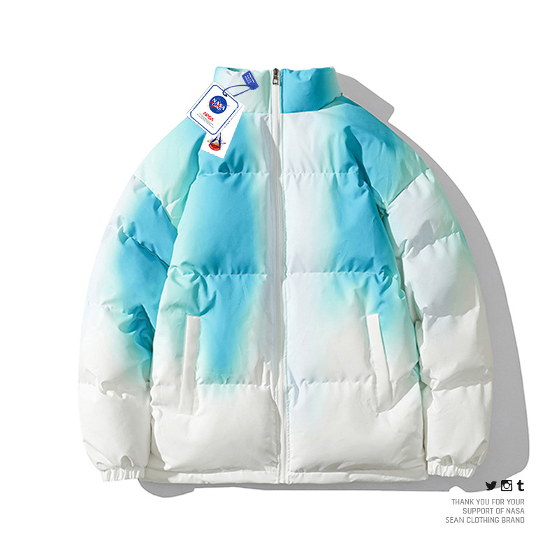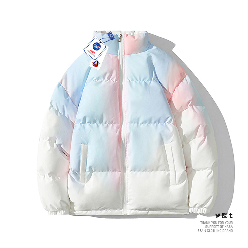 NASA 공동 브랜드 비수기 커플용 두꺼운 면 재킷 남녀 공용 겨울 트렌디 브랜드 짧은 스타일 스탠드 칼라 그라데이션 재킷