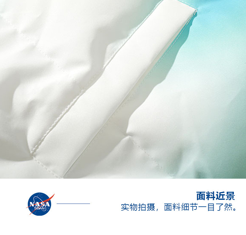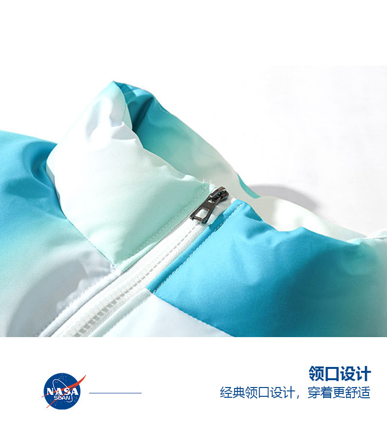 NASA 공동 브랜드 비수기 커플용 두꺼운 면 재킷 남녀 공용 겨울 트렌디 브랜드 짧은 스타일 스탠드 칼라 그라데이션 재킷스토어 가기