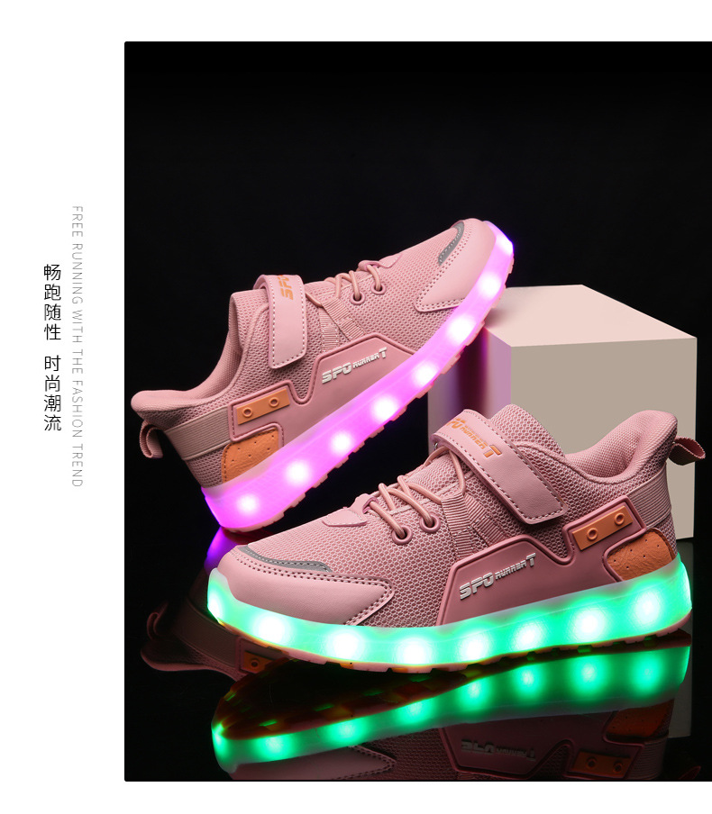 어린이 신발 2023 새로운 가을과 겨울 발광 신발 크로스 보더 조수 시원한 LED 조명 충전 캐주얼 운동화 남성과 여성의 어린이 신발