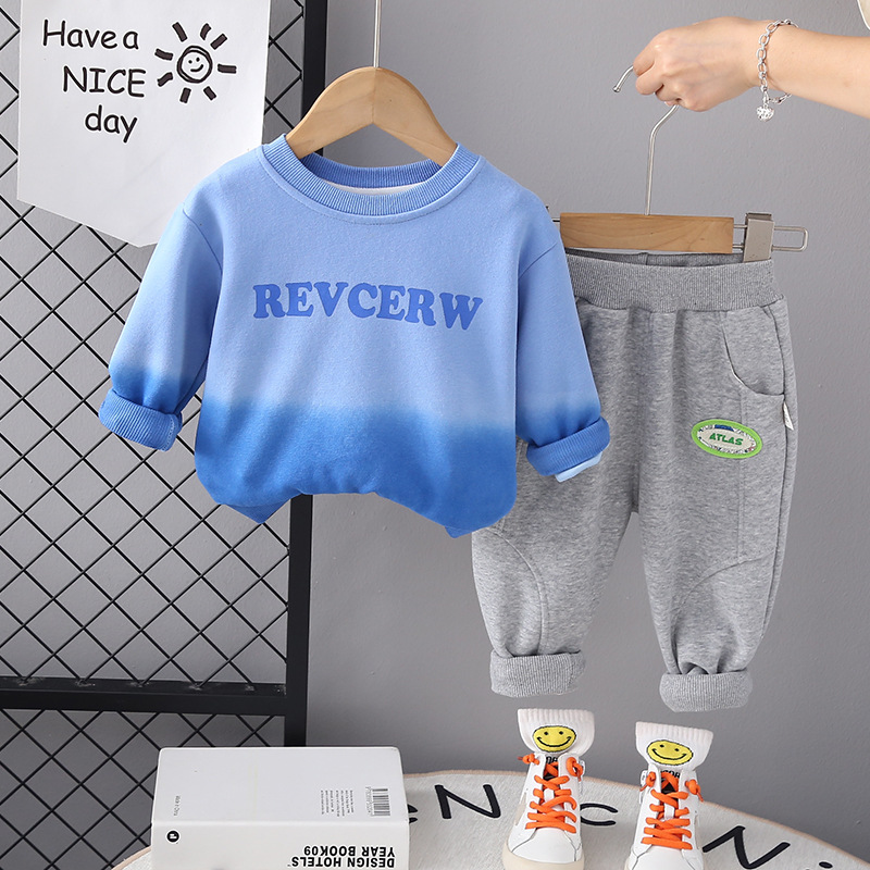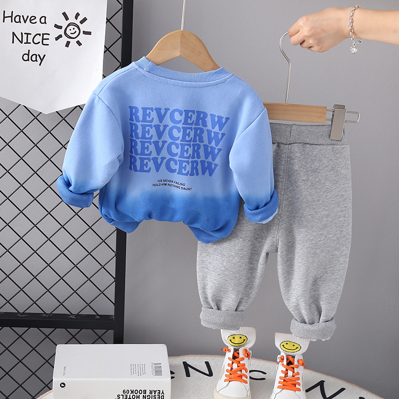 소년 세트 새로운 아기 새로운 색상 매칭 긴 소매 스웨터 바지 투피스 아기 가을 아동 의류 도매스토어 가기