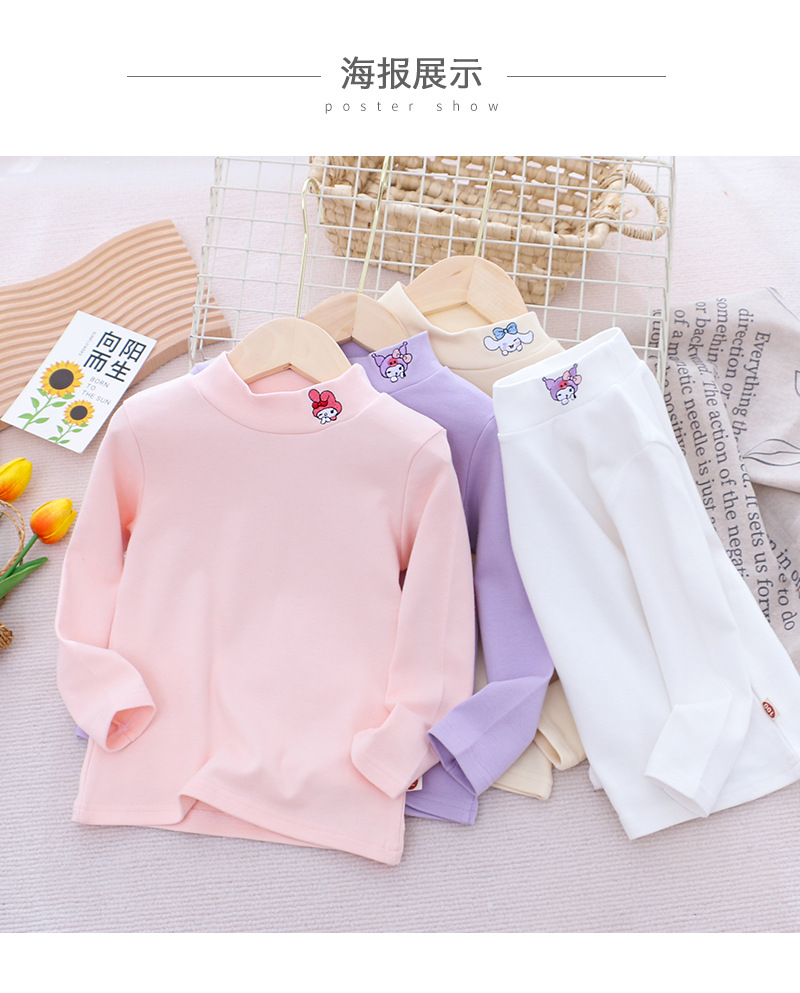2025 아동복 가을 신상 여아 중간 칼라 이너웨어 가을 셔츠 베이스 레이어 쿠로미 긴팔 티셔츠 도매스토어 가기