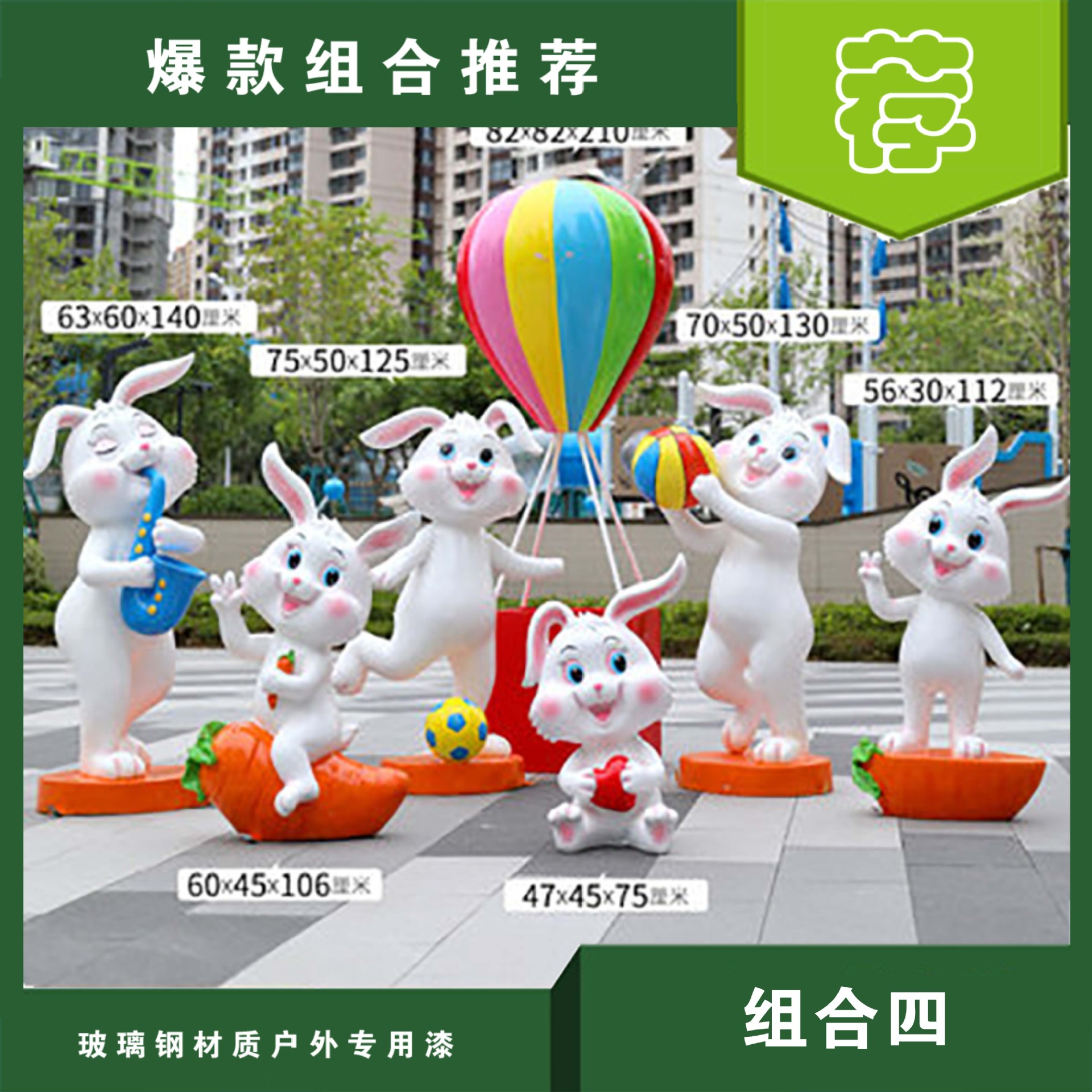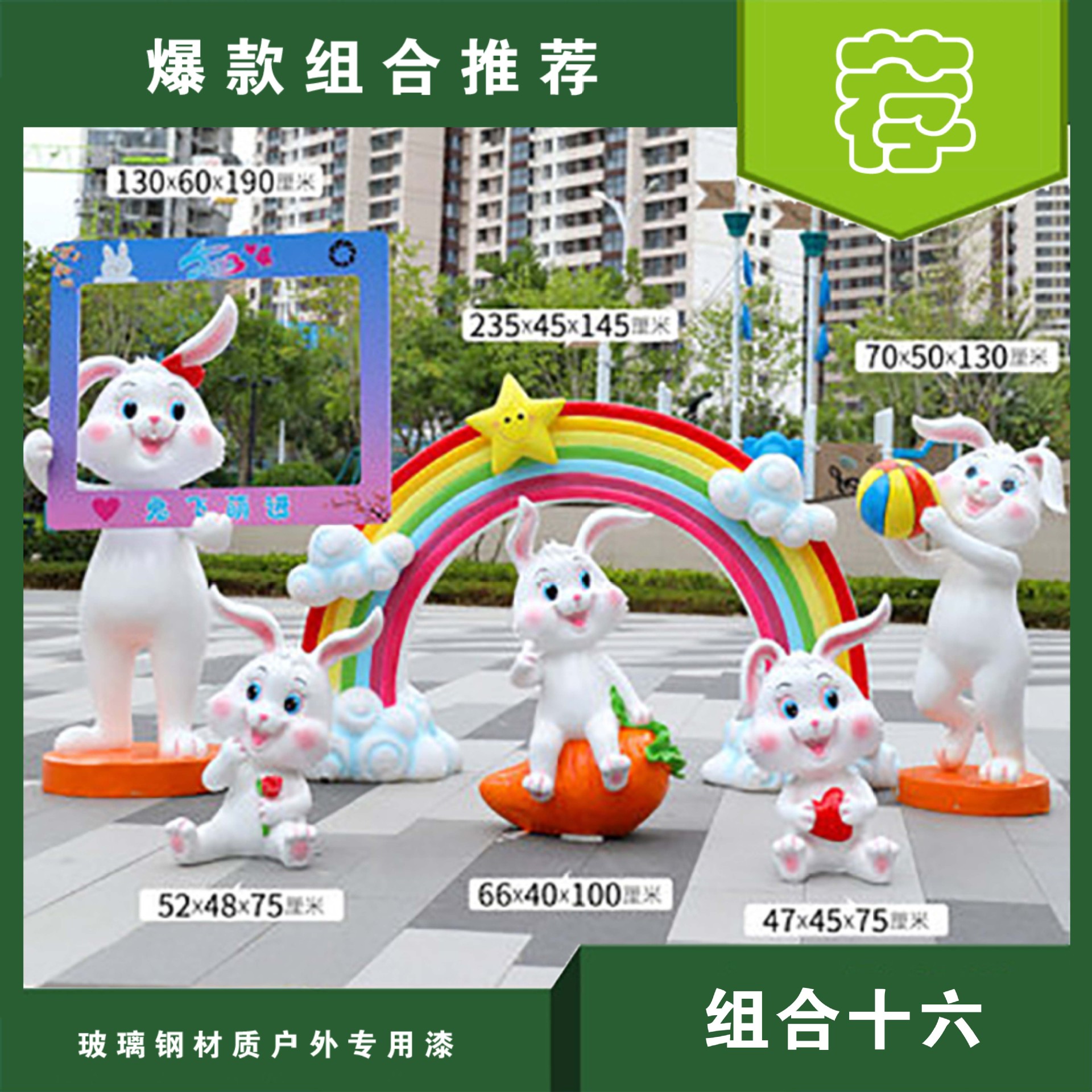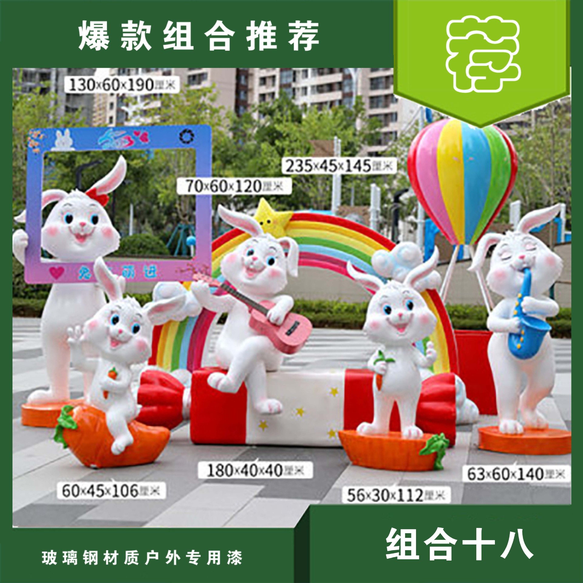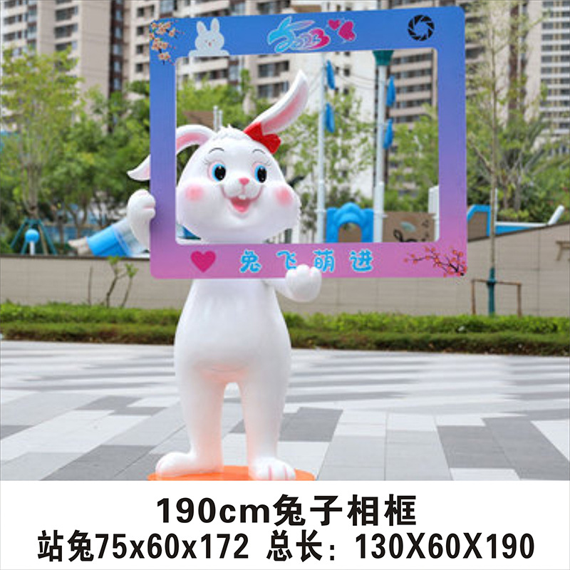 야외 만화 토끼 유리 섬유 강화 플라스틱 조각 그물 빨간 펀치 카드 사진 동물 유치원 쇼핑몰 아름다움 첸 장식 장식품