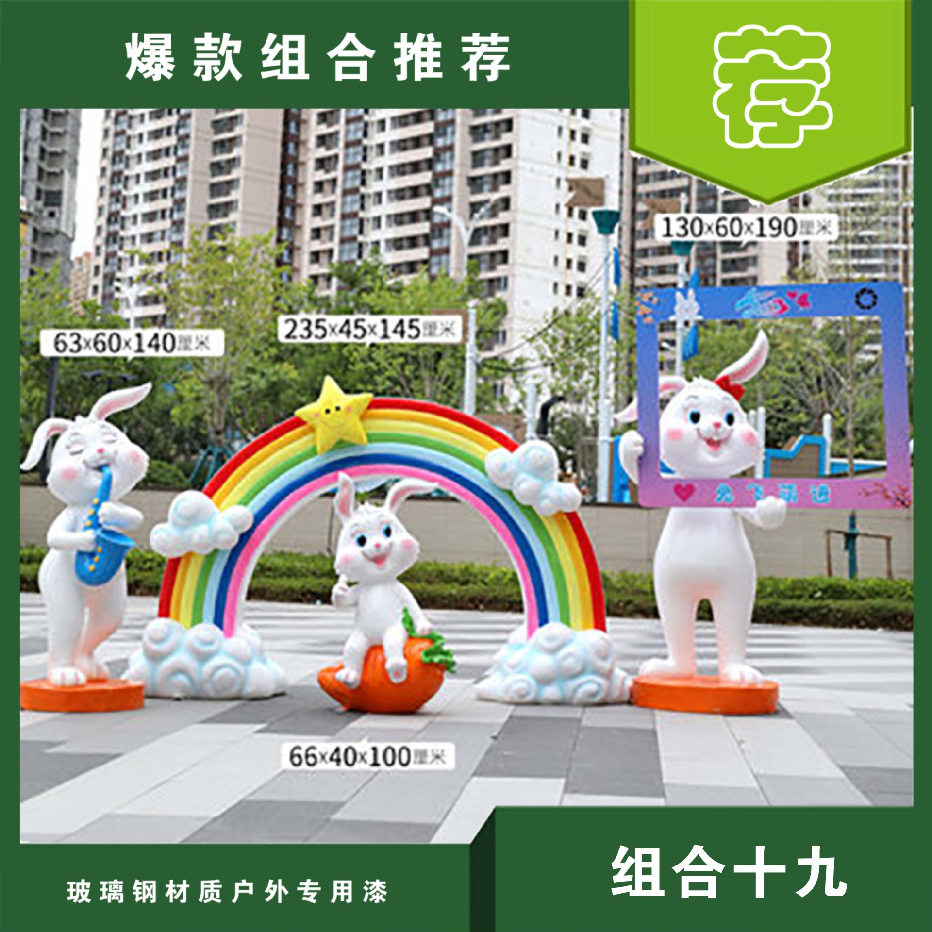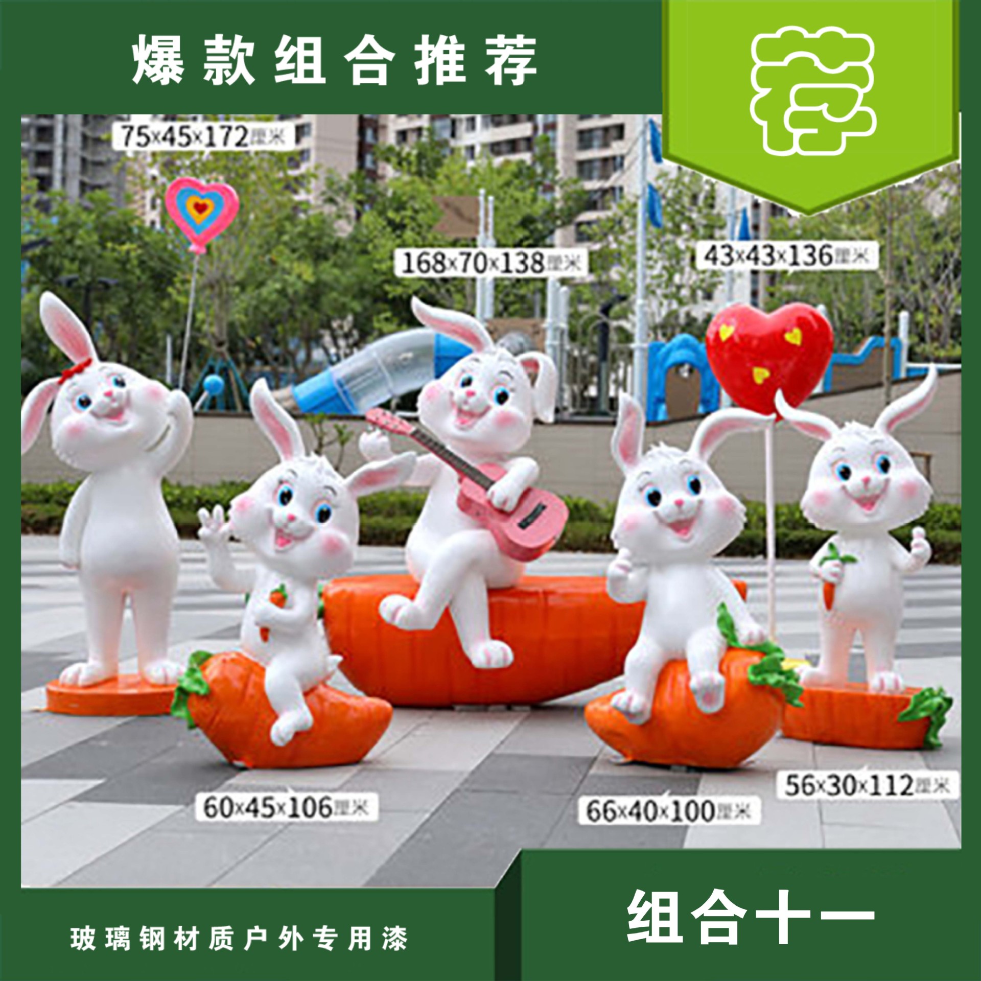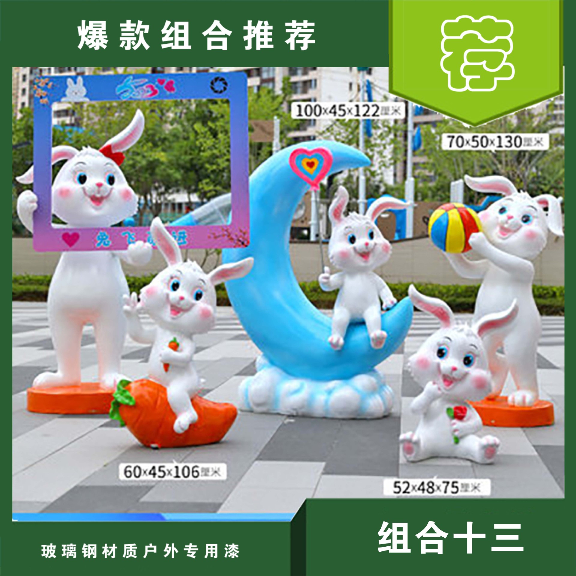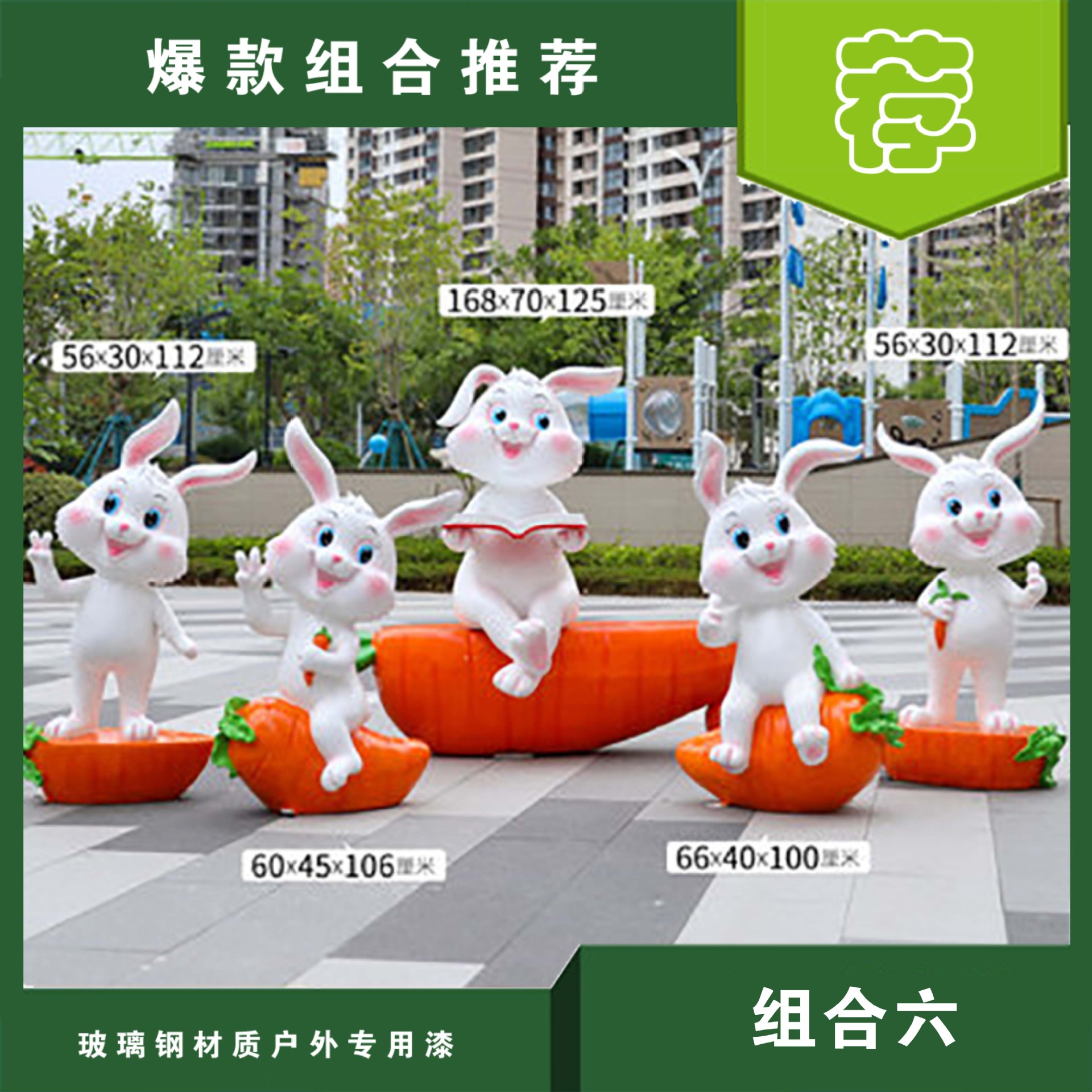 야외 만화 토끼 유리 섬유 강화 플라스틱 조각 그물 빨간 펀치 카드 사진 동물 유치원 쇼핑몰 아름다움 첸 장식 장식품