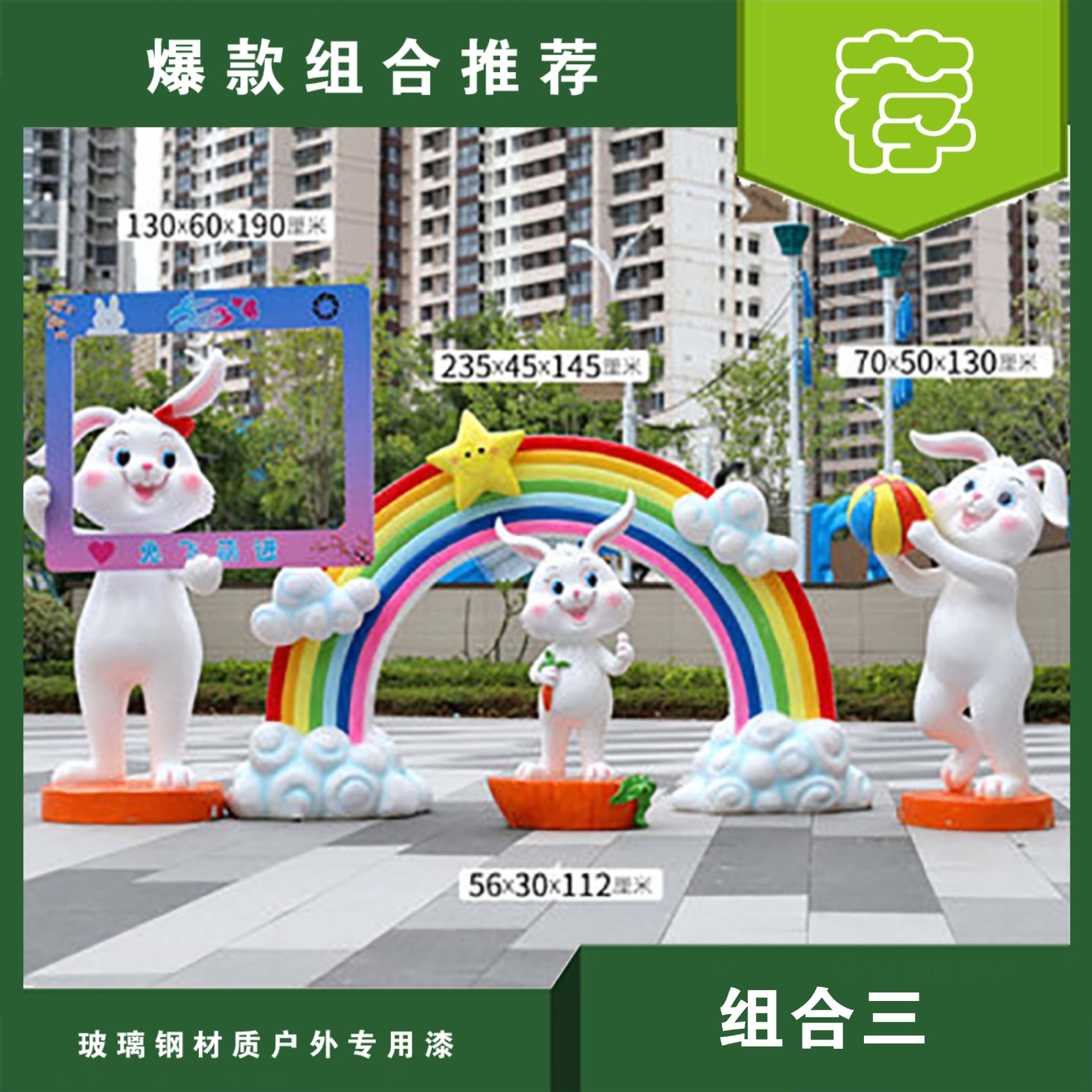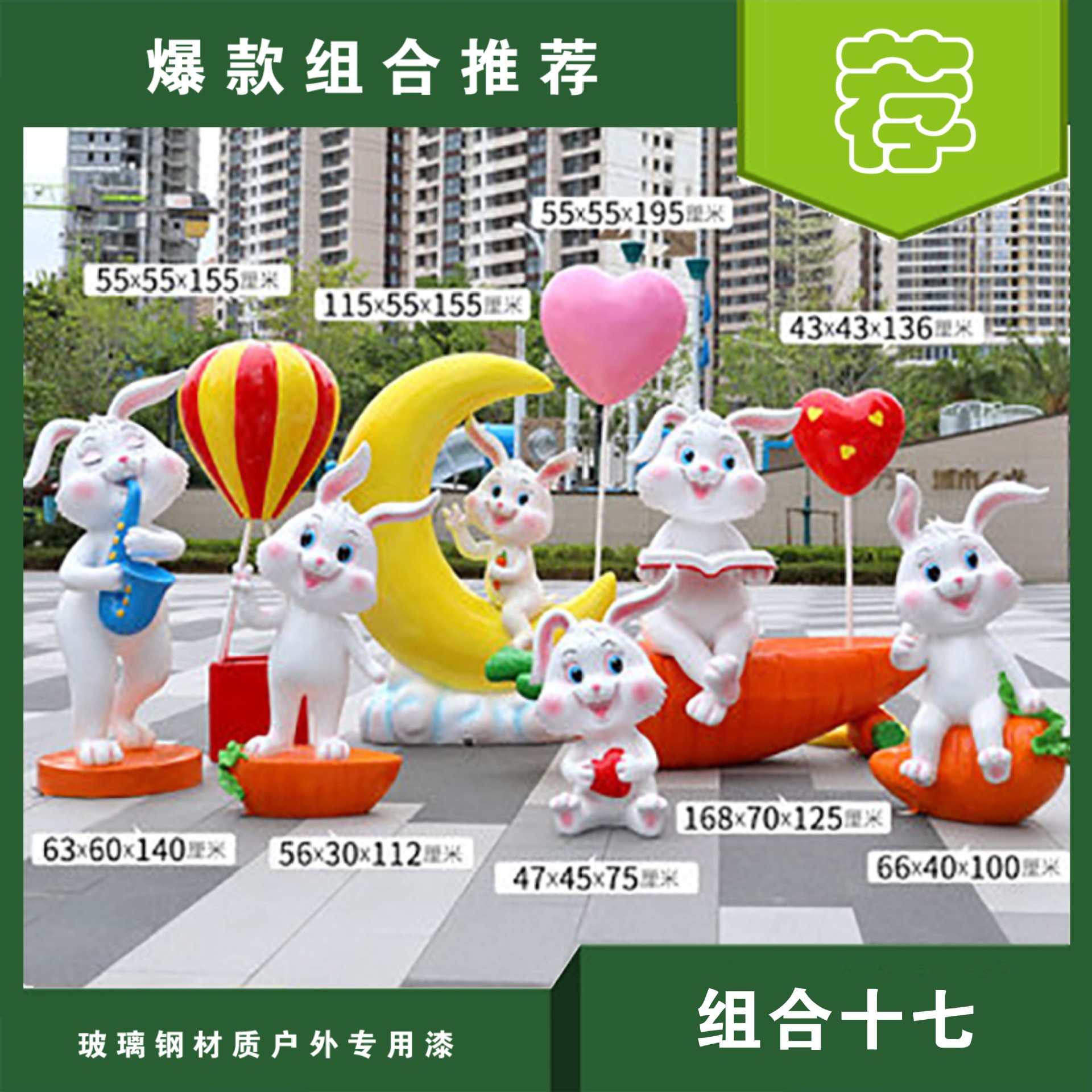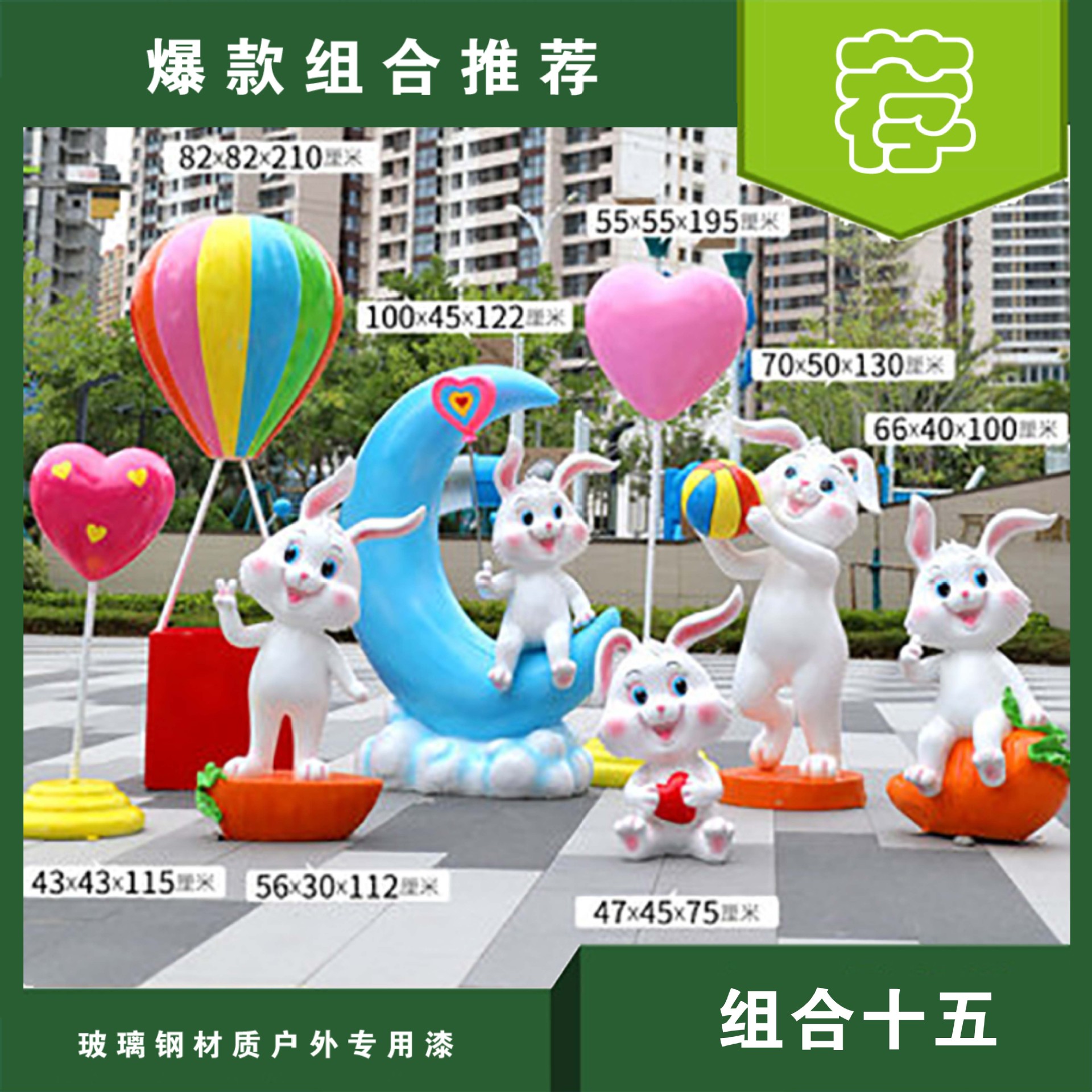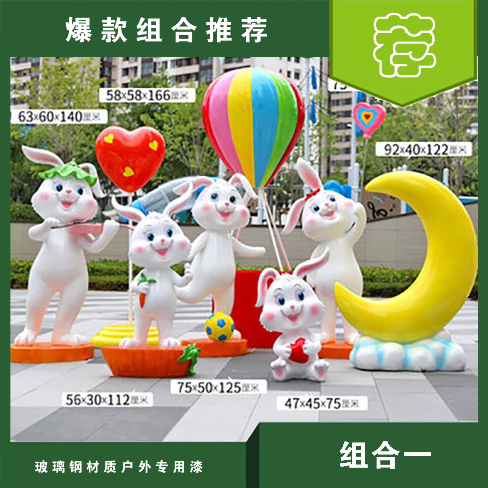 야외 만화 토끼 유리 섬유 강화 플라스틱 조각 그물 빨간 펀치 카드 사진 동물 유치원 쇼핑몰 아름다움 첸 장식 장식품