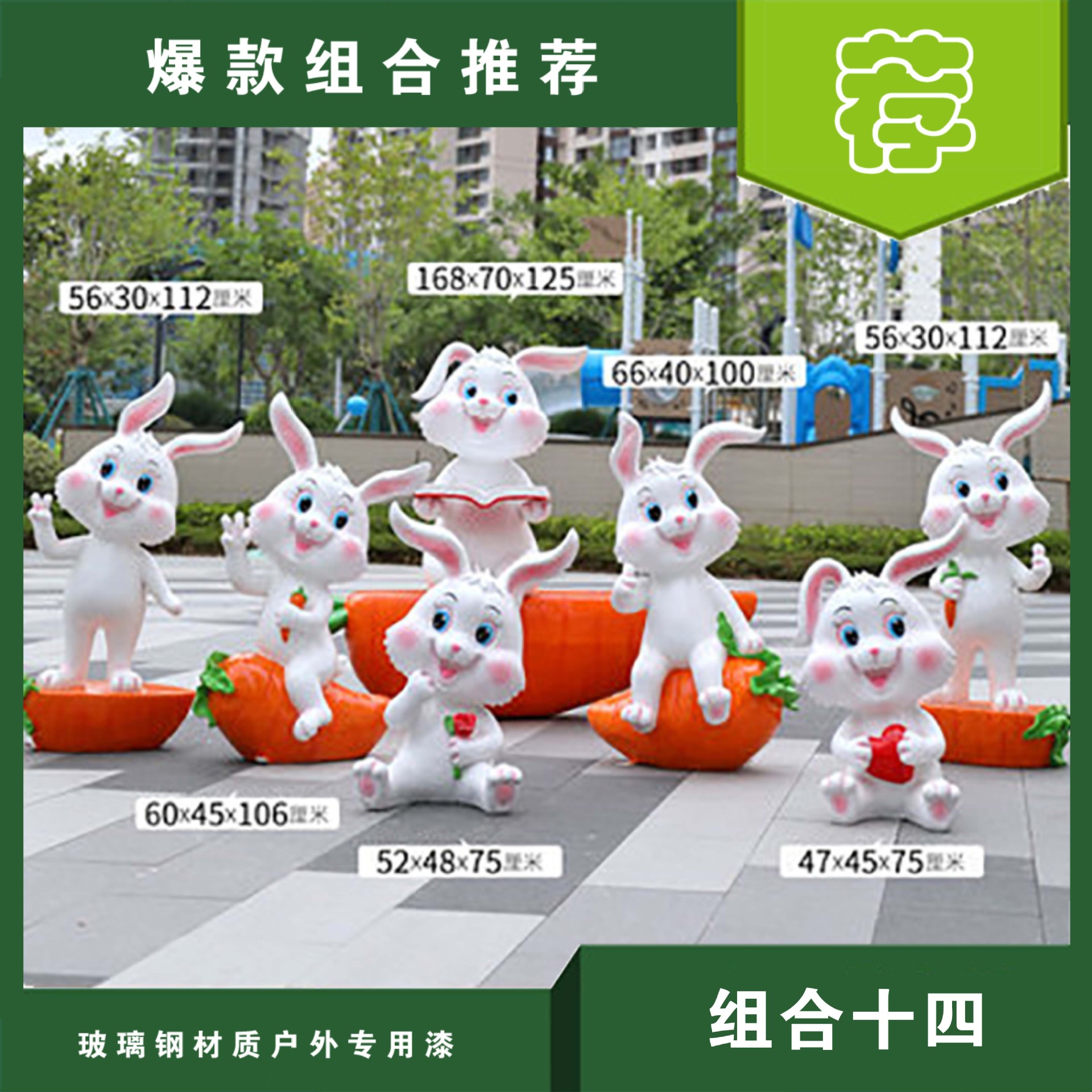 야외 만화 토끼 유리 섬유 강화 플라스틱 조각 그물 빨간 펀치 카드 사진 동물 유치원 쇼핑몰 아름다움 첸 장식 장식품스토어 가기