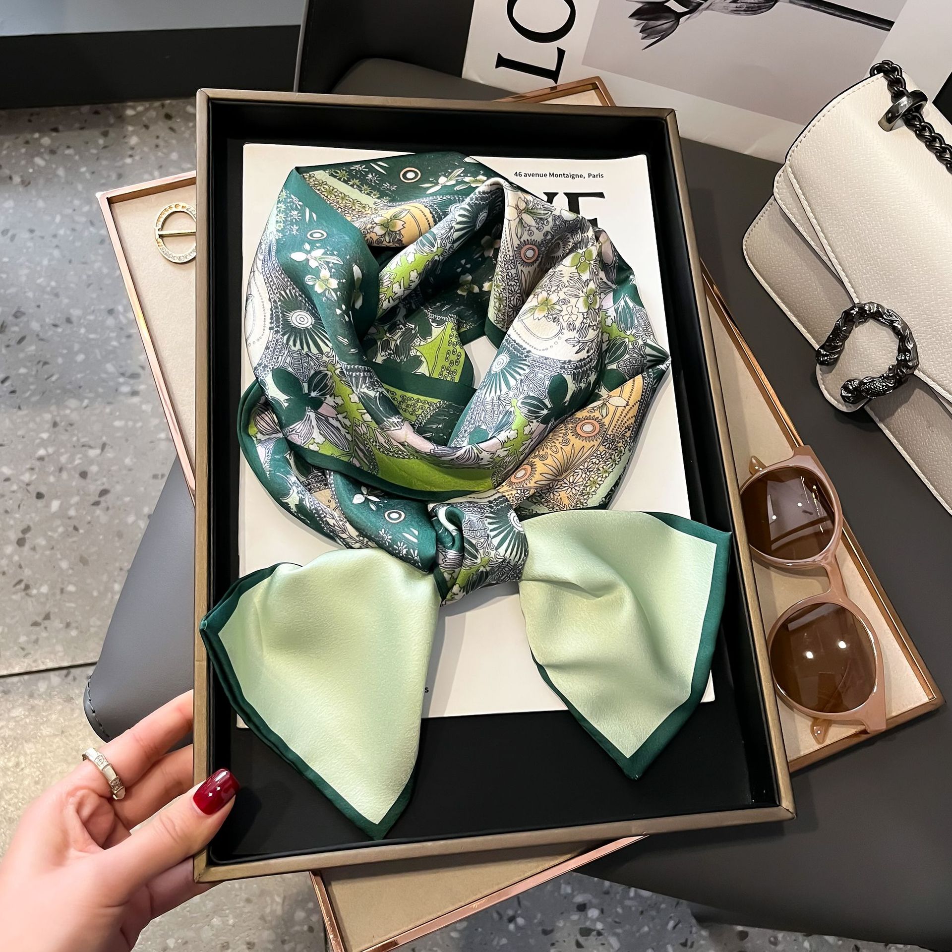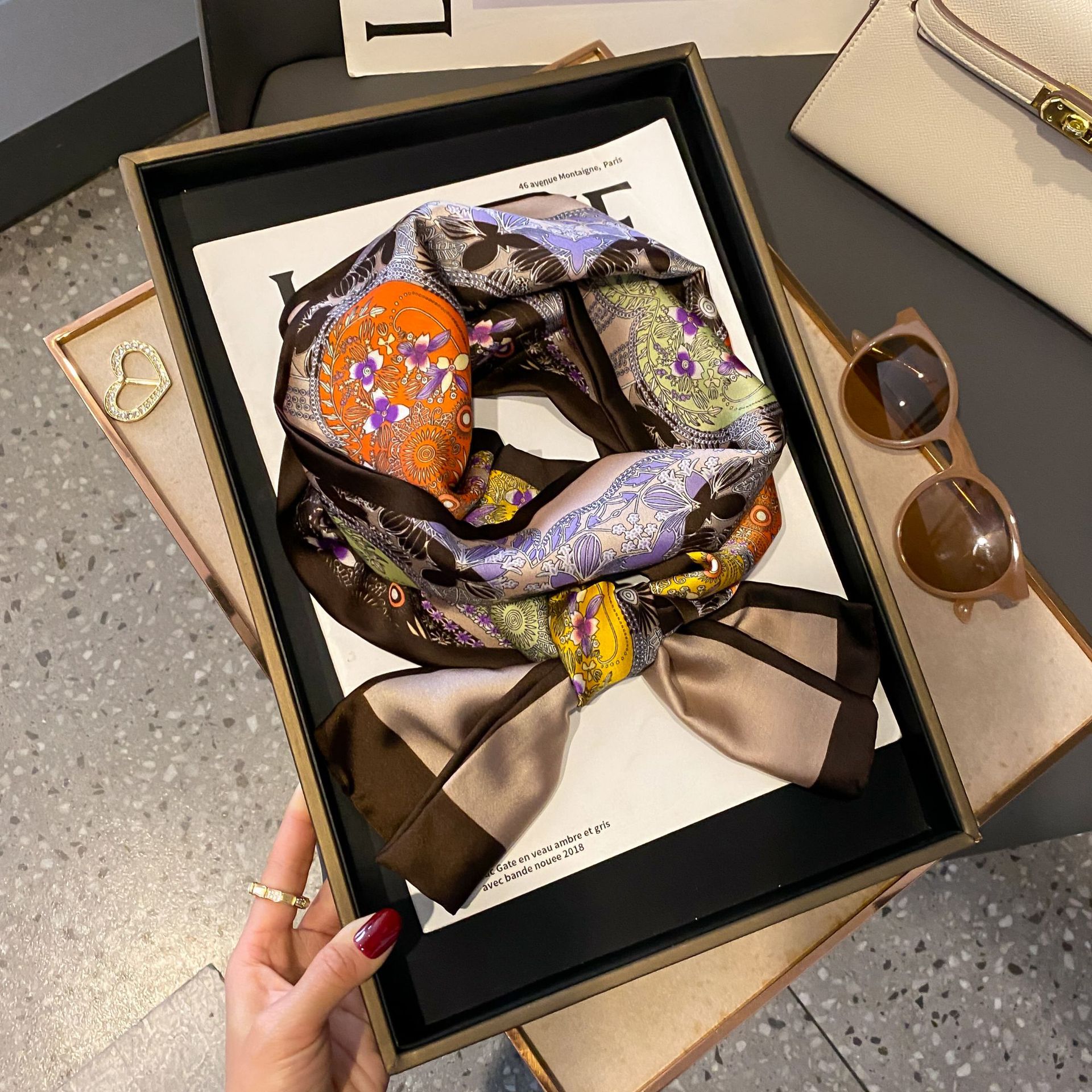 좁은 실크 스카프 스타 여성용 리본 헤어 액세서리 바인딩 백 작은 스카프 인쇄 헤어 밴드 실크 롱 스카프 도매스토어 가기
