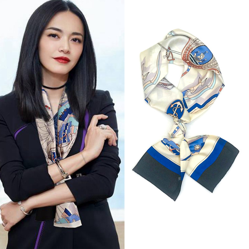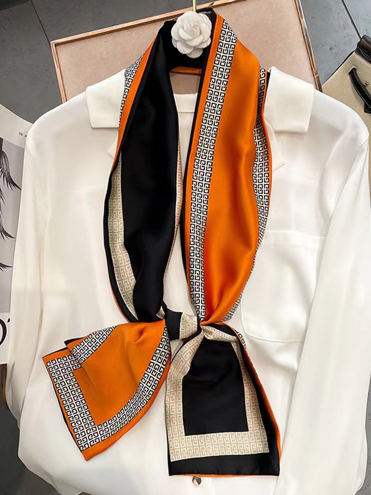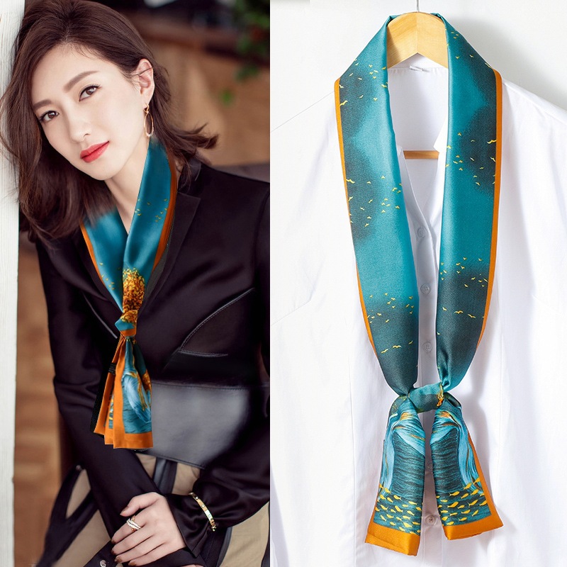 좁은 실크 스카프 스타 여성용 리본 헤어 액세서리 바인딩 백 작은 스카프 인쇄 헤어 밴드 실크 롱 스카프 도매
