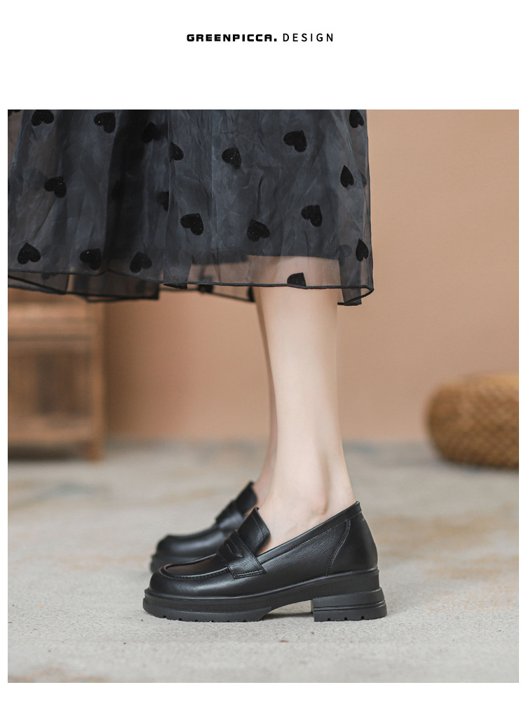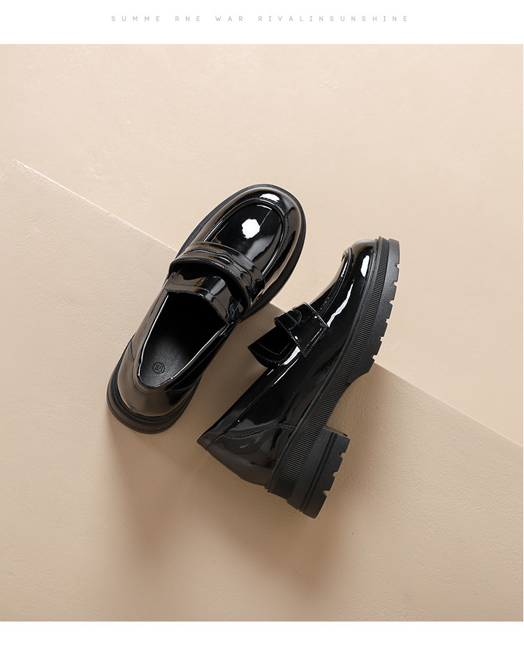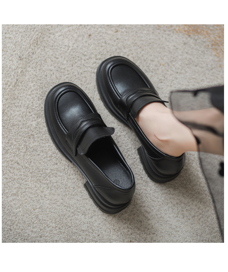 내부 높이 증가 작은 가죽 신발 여자의 2023 가을 새로운 블랙 기모 라운드 발가락 영국 스타일 모든 일치 로퍼 여자의 싱글 레이어 신발스토어 가기