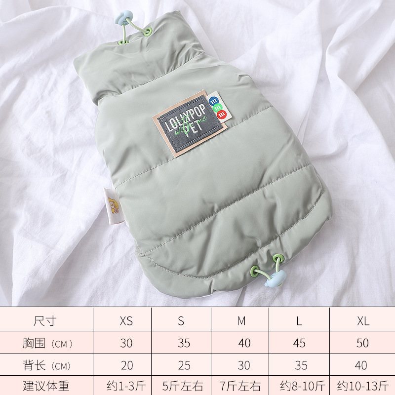 2023 겨울 애완 동물 야외 산책 개 방풍 따뜻한 스냅 버클 두 다리 민소매 두꺼운 곰 개 코트 면 패딩 재킷