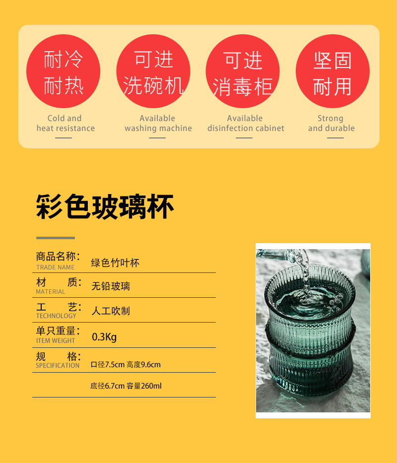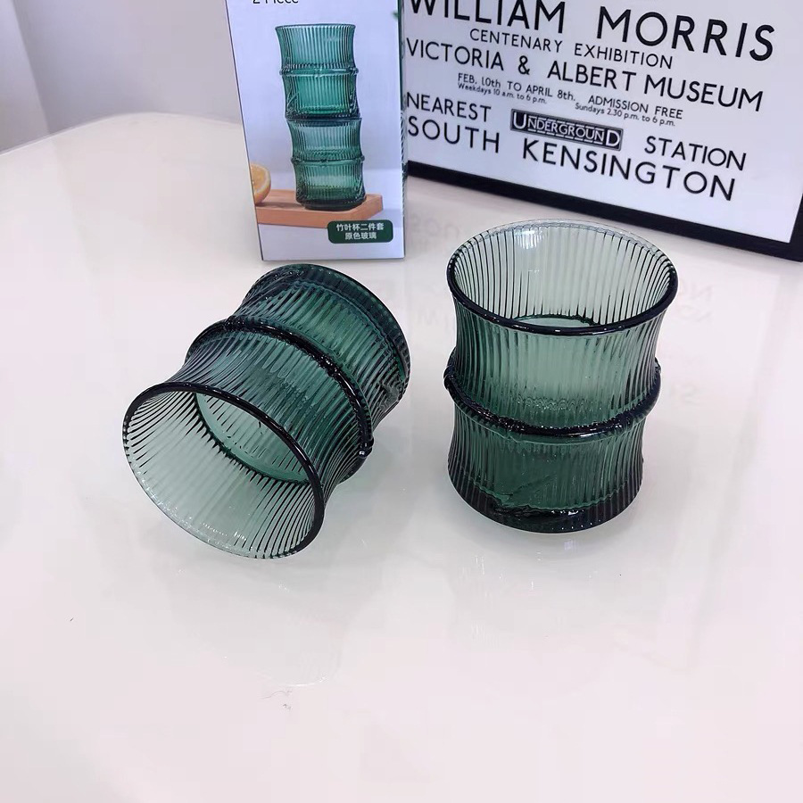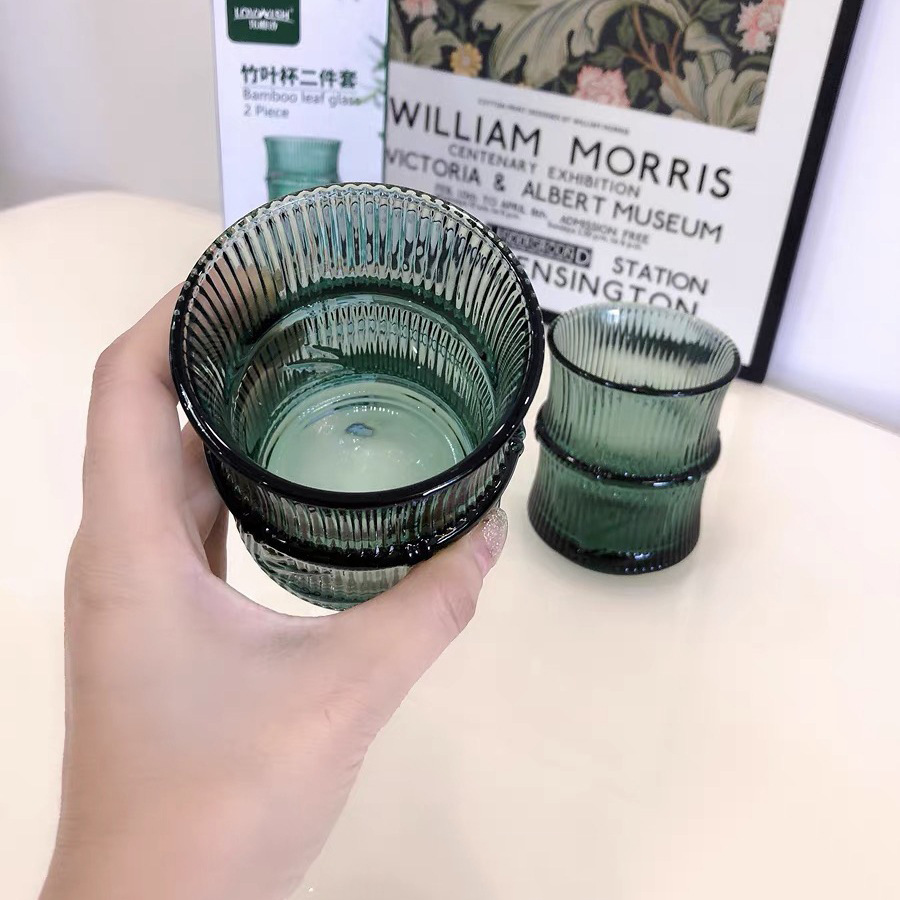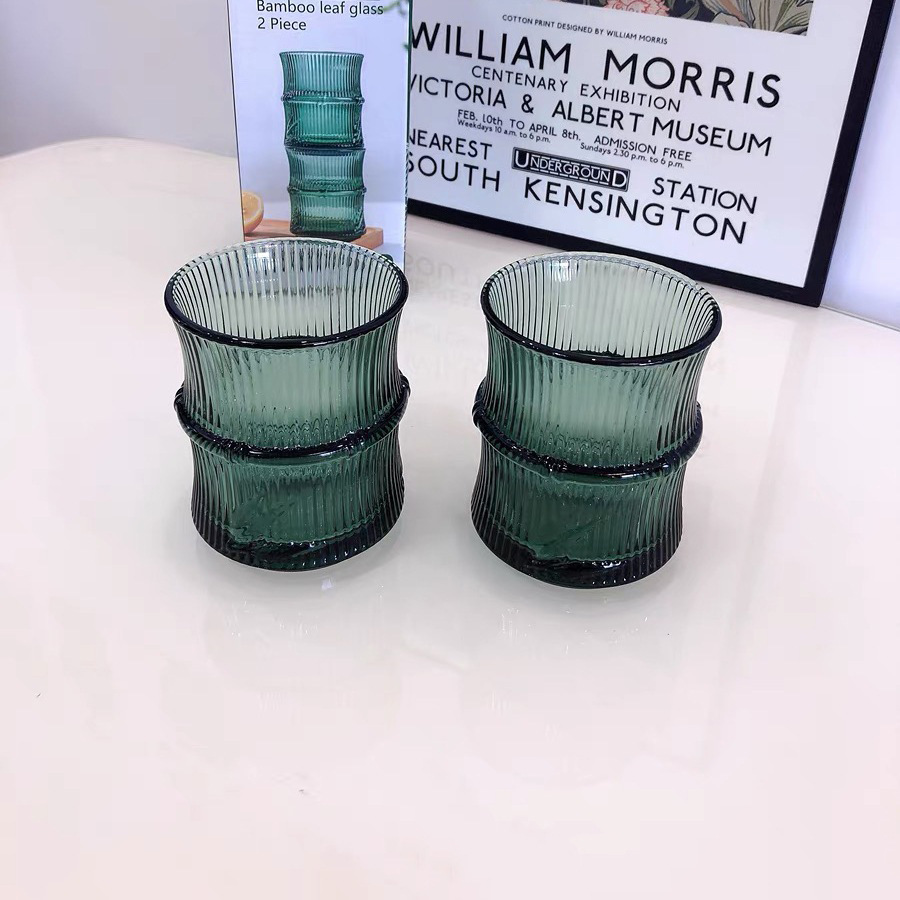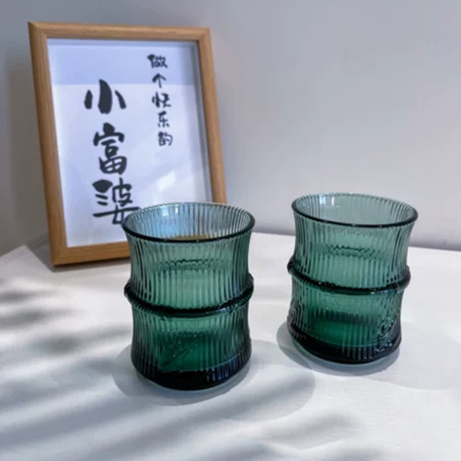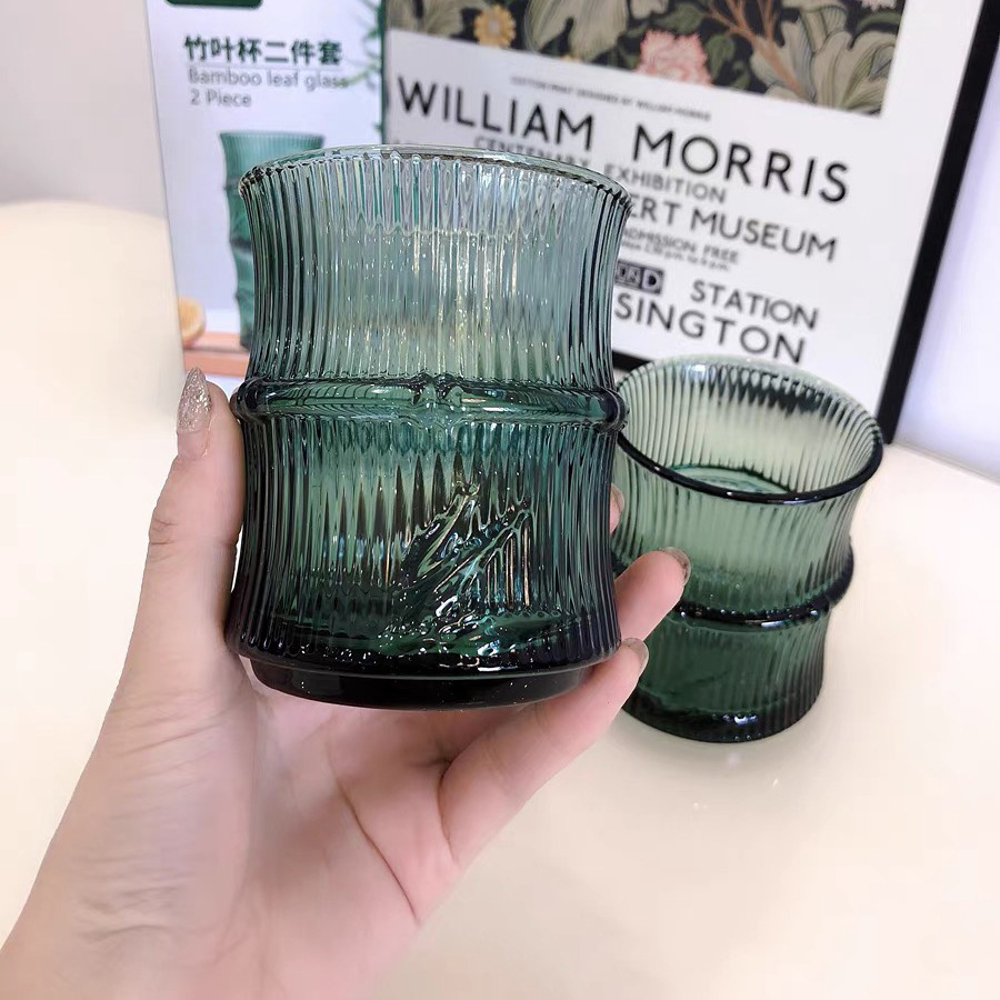 높은 상승 대나무 잎 양각 유리 컵 고온 방지 물 컵 중국어 녹색 컵 쌓을 수있는 차 컵 칫솔질 컵스토어 가기