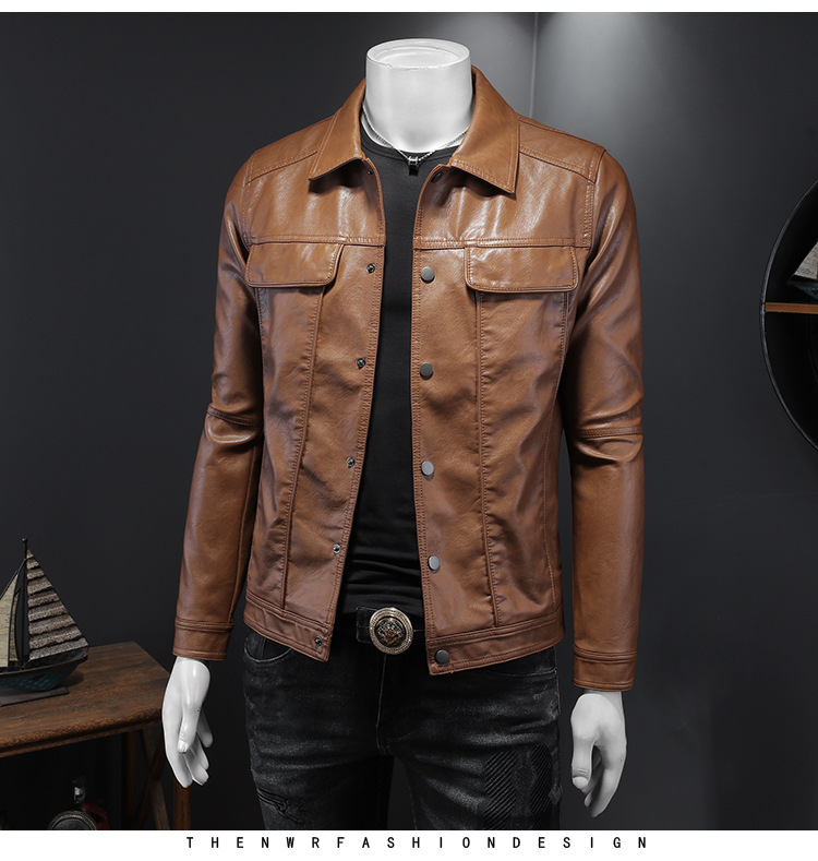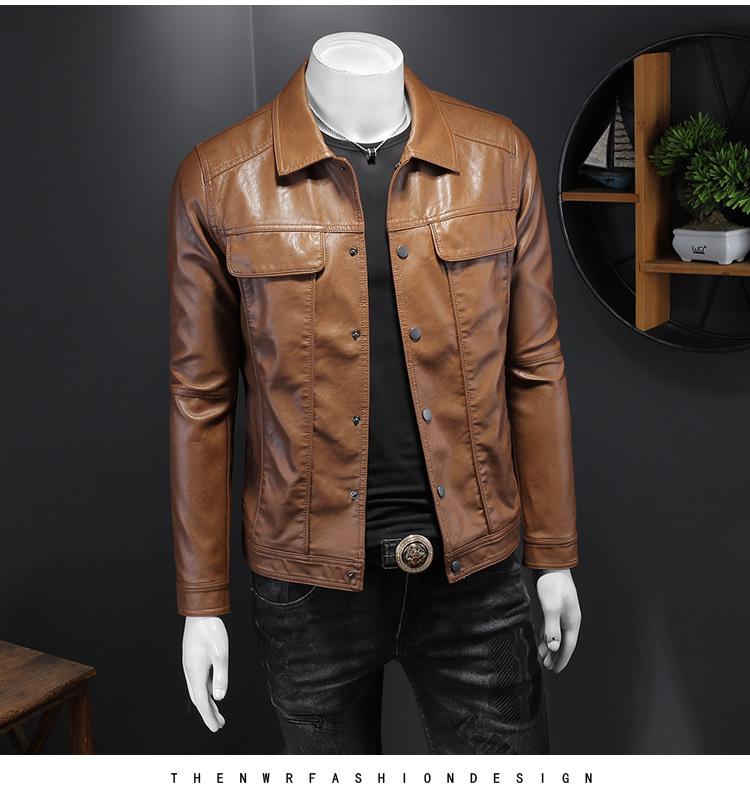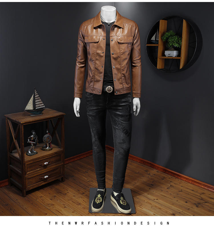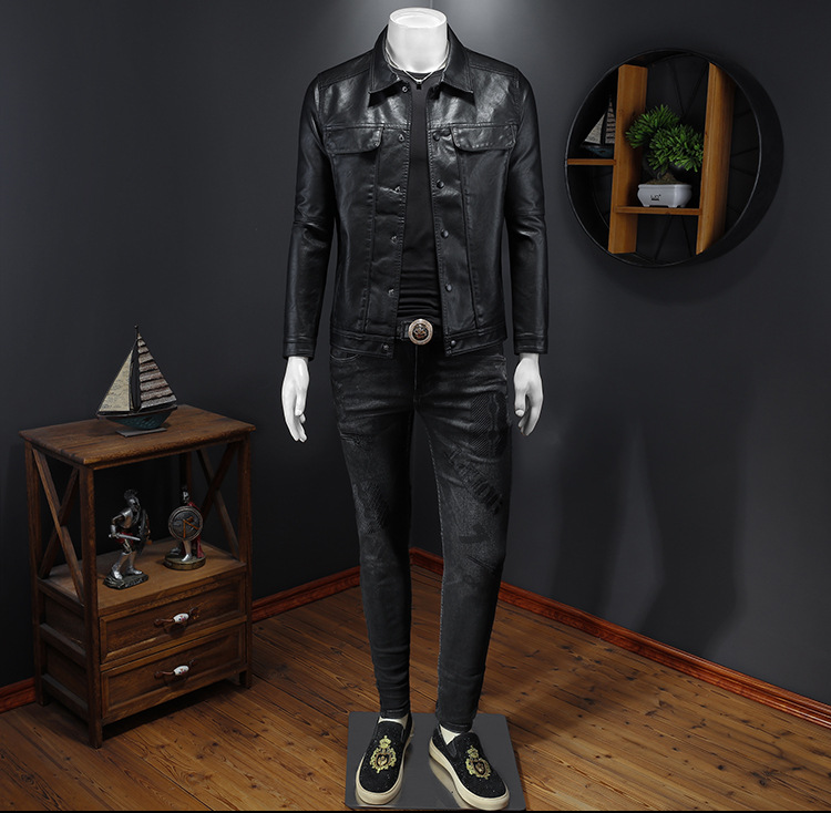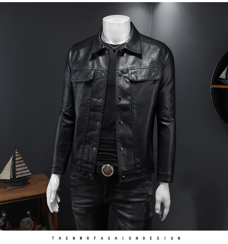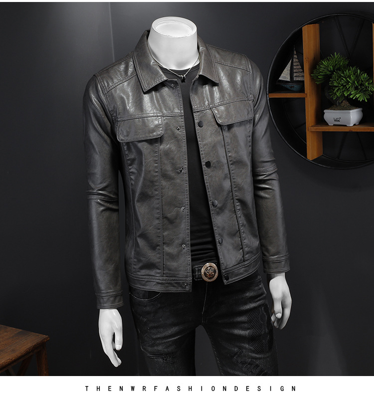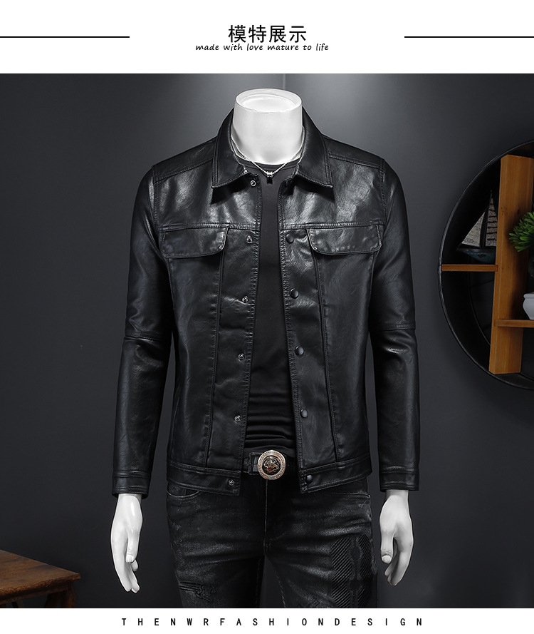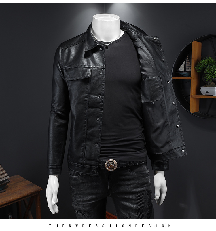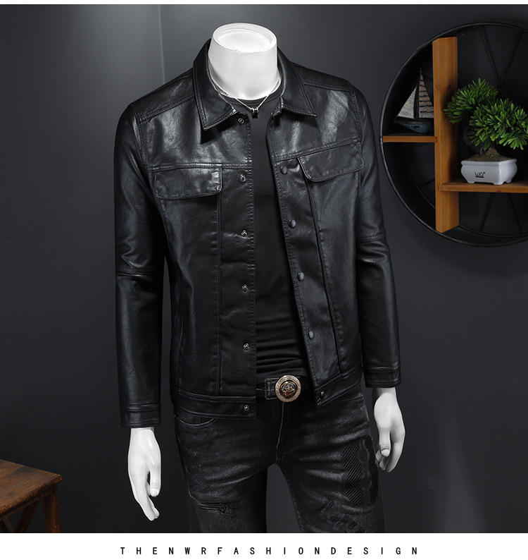 2026 봄 신상 남성 긴팔 라펠 바이커 스타일 가죽 자켓 슬림핏 트렌디 남성 개성 가죽 자켓스토어 가기
