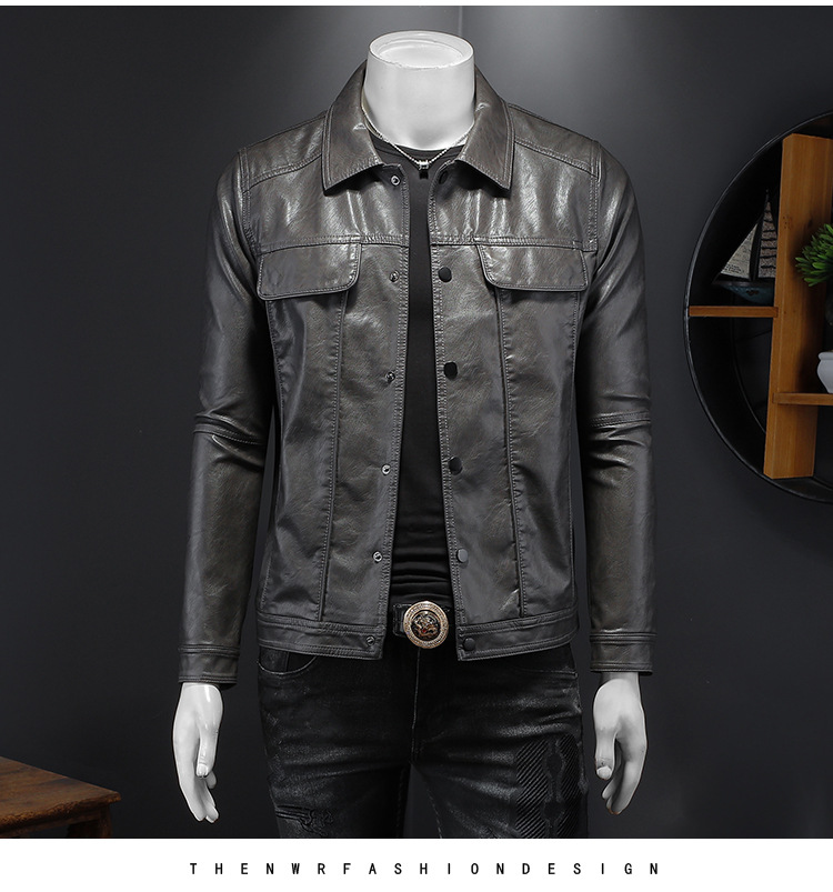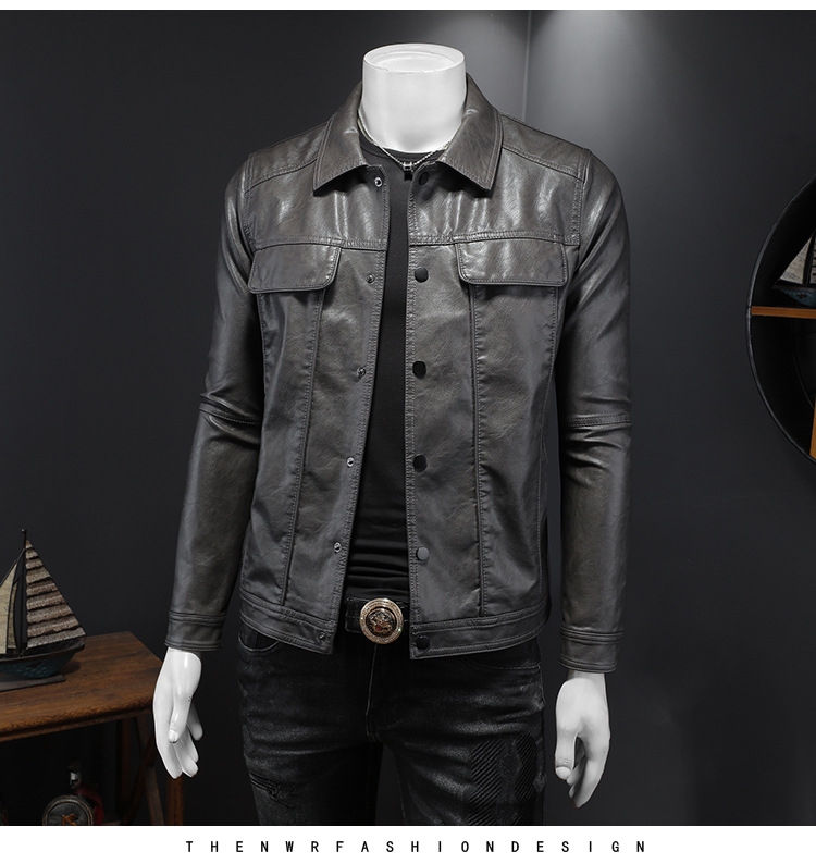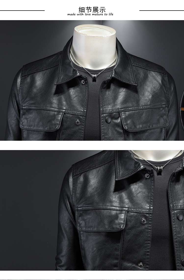 2026 봄 신상 남성 긴팔 라펠 바이커 스타일 가죽 자켓 슬림핏 트렌디 남성 개성 가죽 자켓