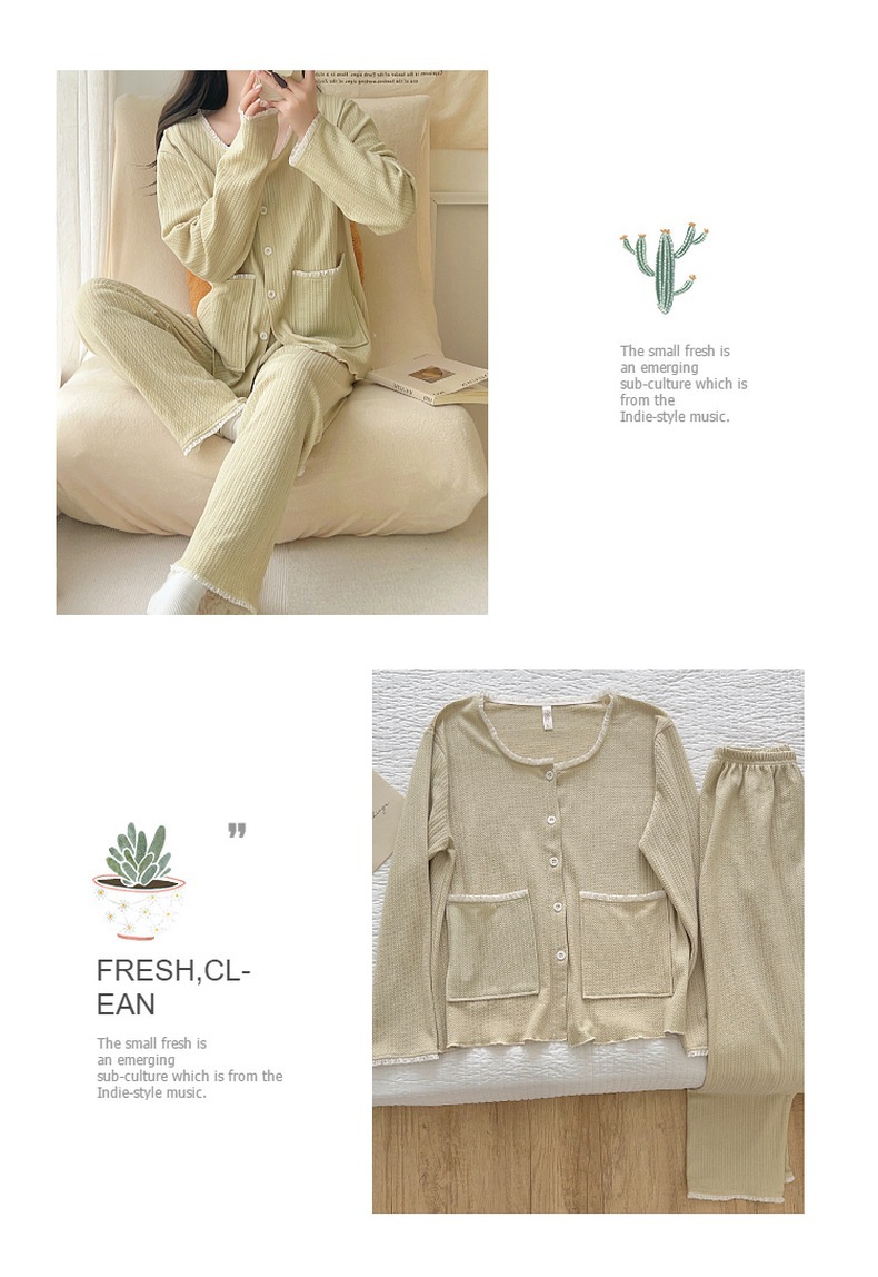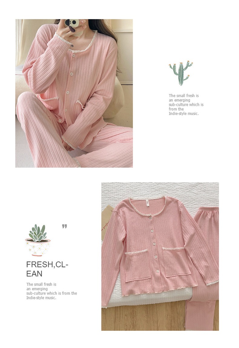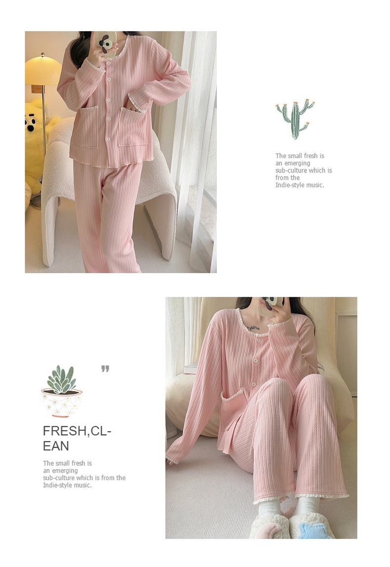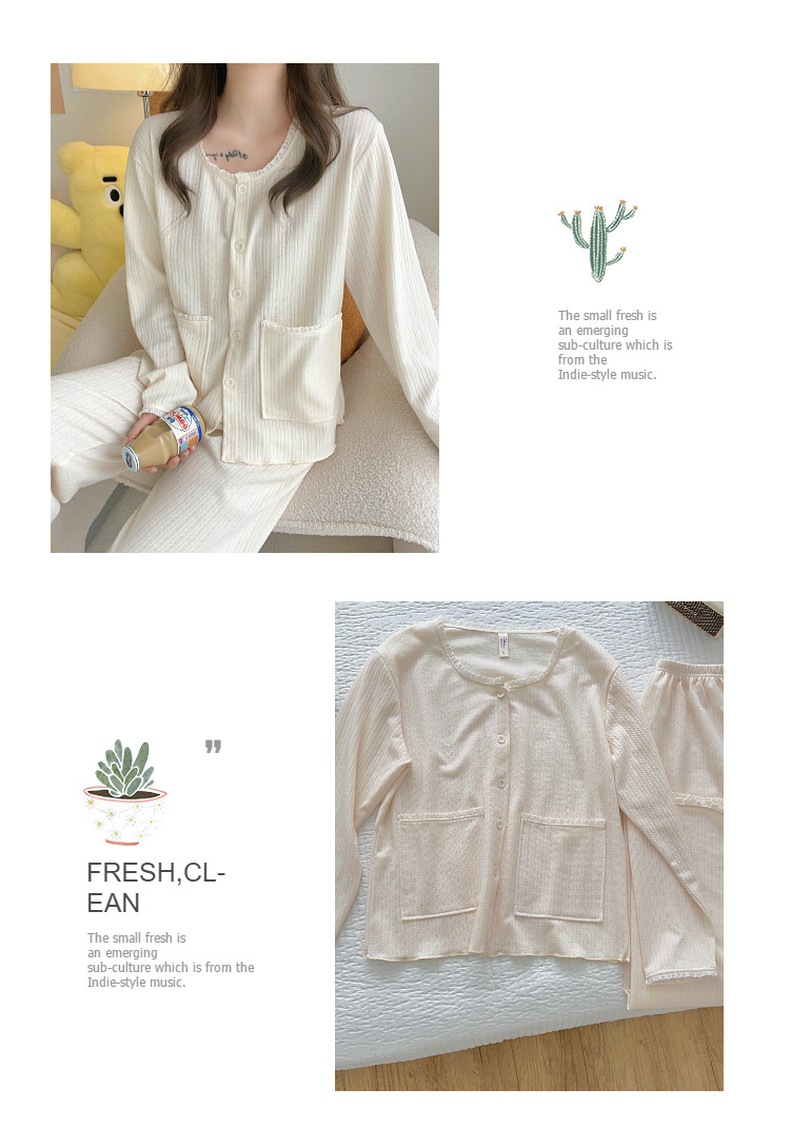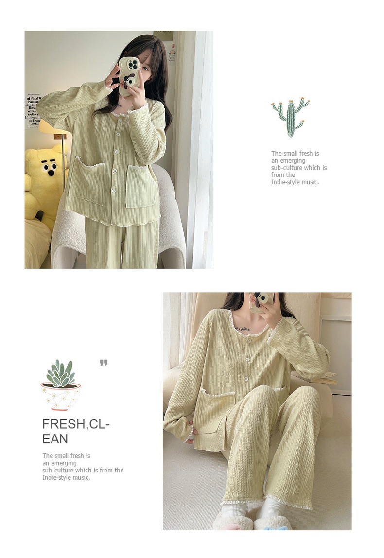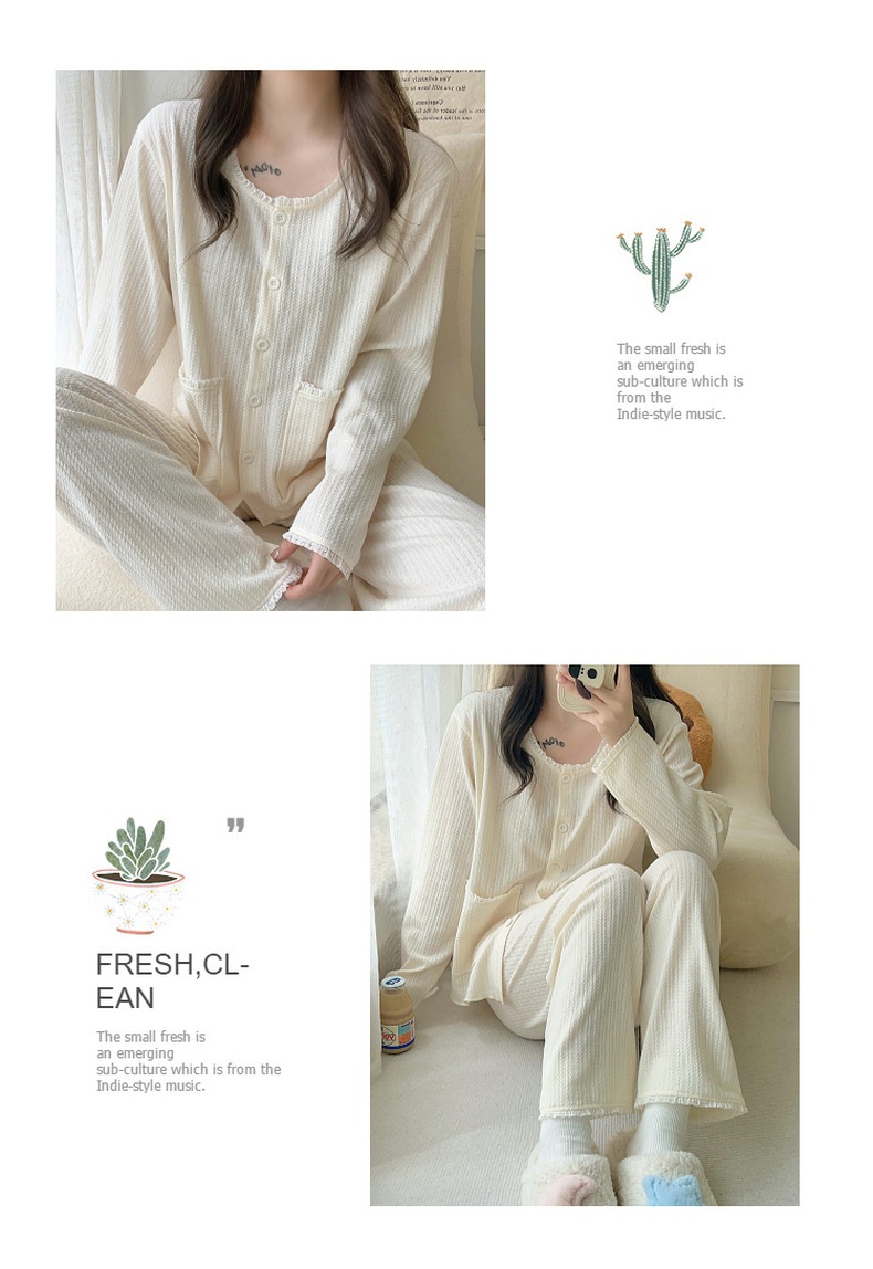 Isn 스타일 잠옷 여자의 봄과 가을 긴 소매 얇은 면 2023 새로운 사이버 연예인 달콤한 가디건 가정복 투피스 세트스토어 가기