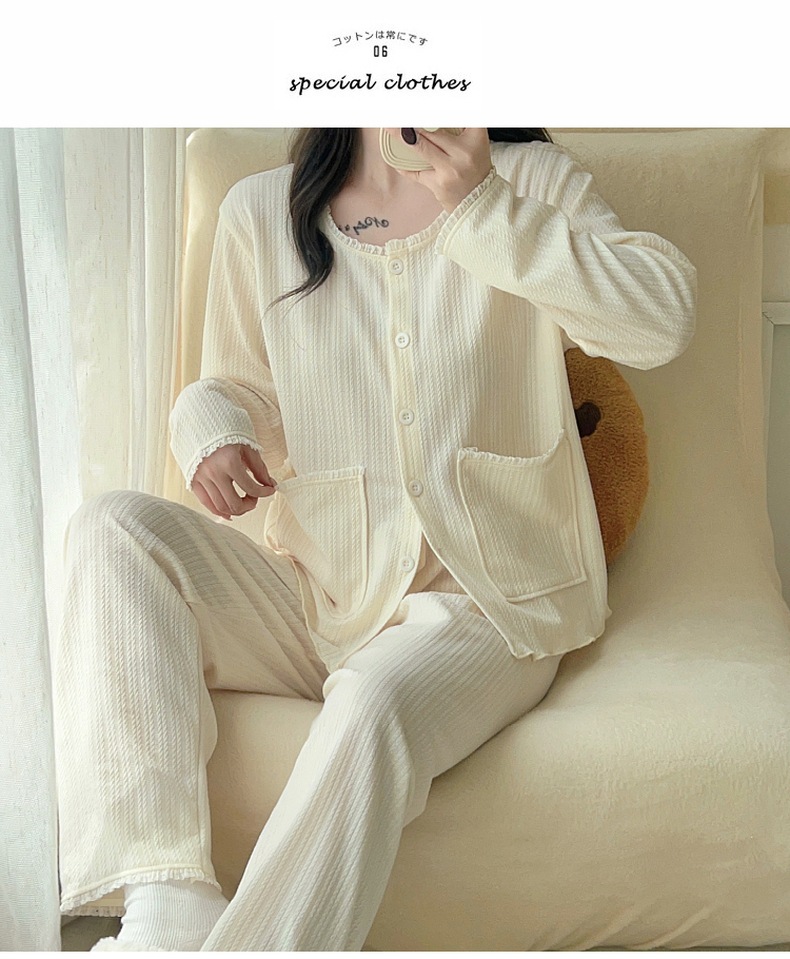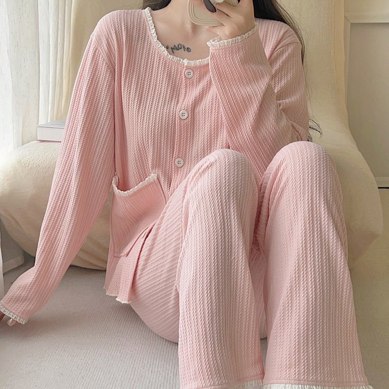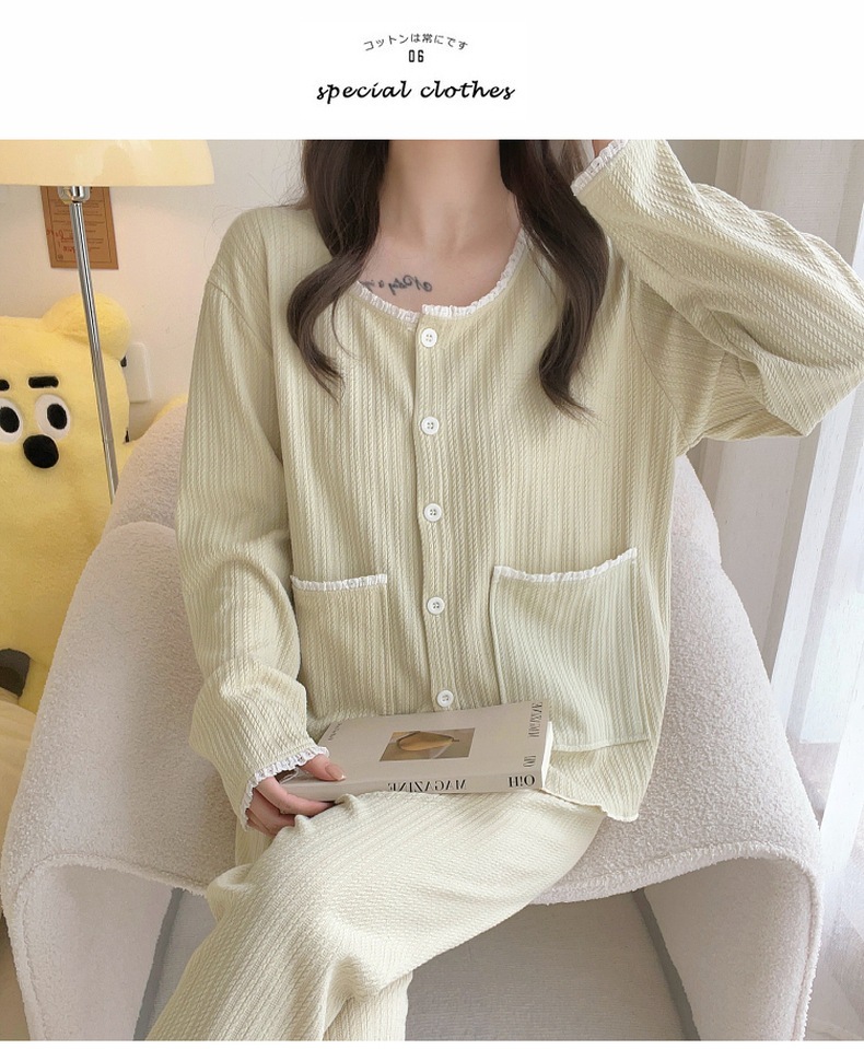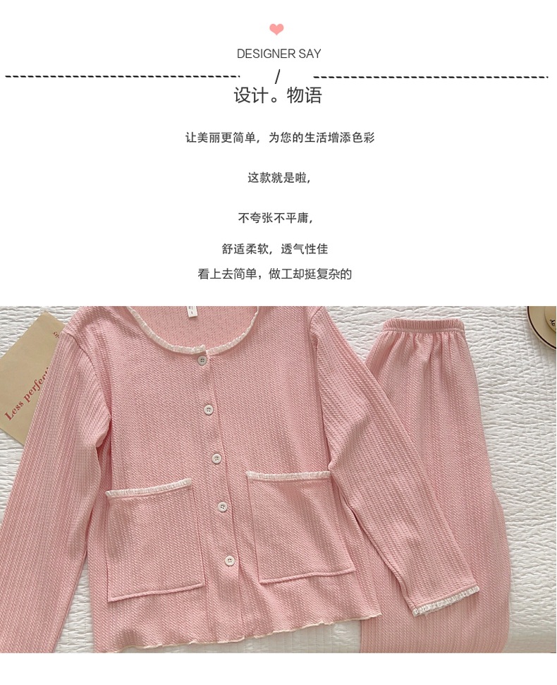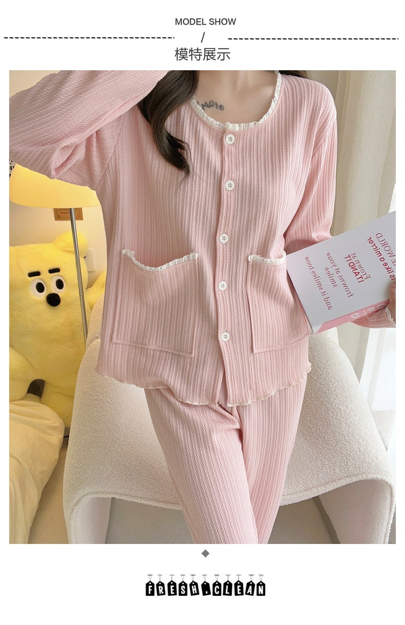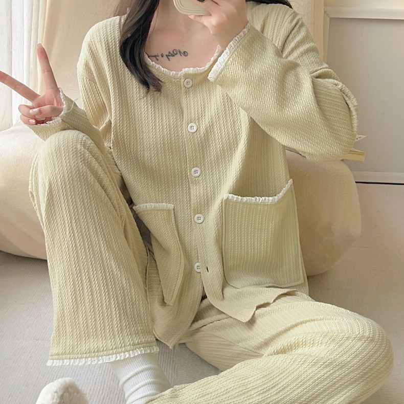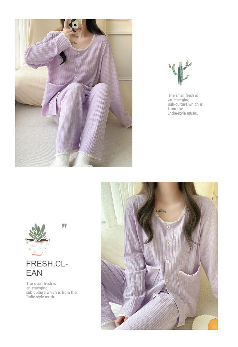 Isn 스타일 잠옷 여자의 봄과 가을 긴 소매 얇은 면 2023 새로운 사이버 연예인 달콤한 가디건 가정복 투피스 세트스토어 가기
