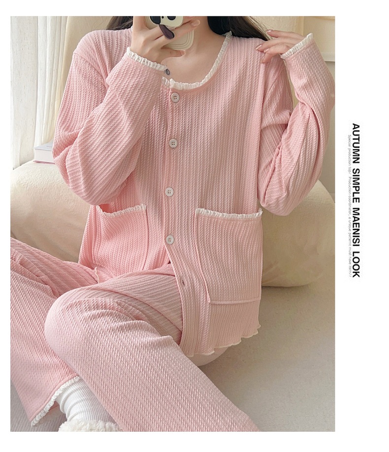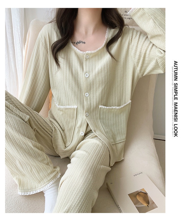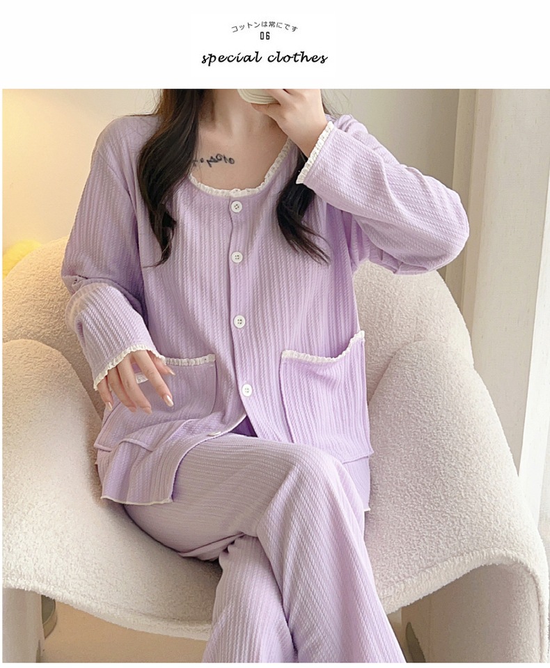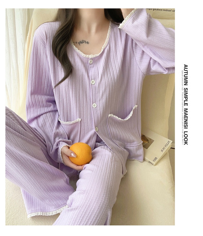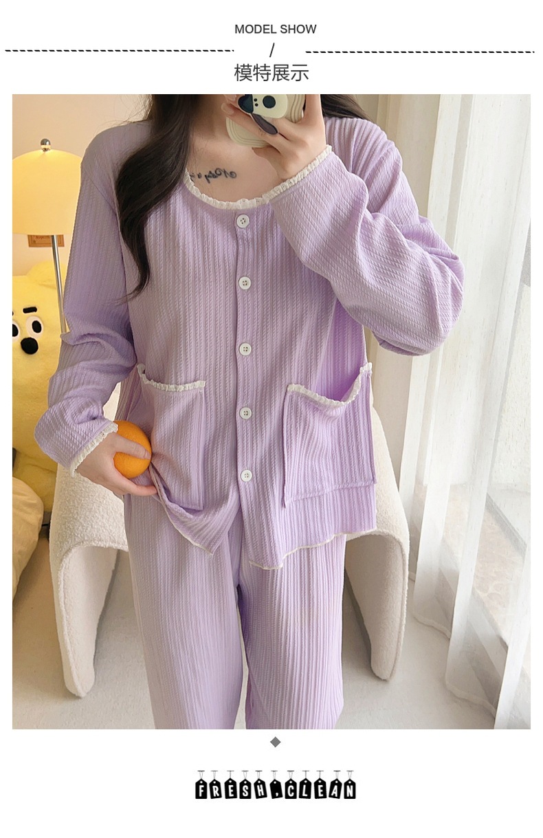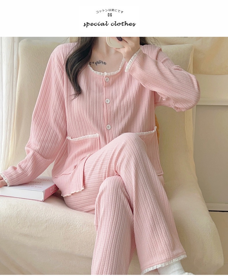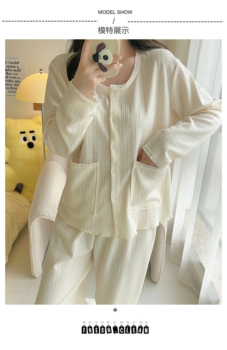 Isn 스타일 잠옷 여자의 봄과 가을 긴 소매 얇은 면 2023 새로운 사이버 연예인 달콤한 가디건 가정복 투피스 세트스토어 가기